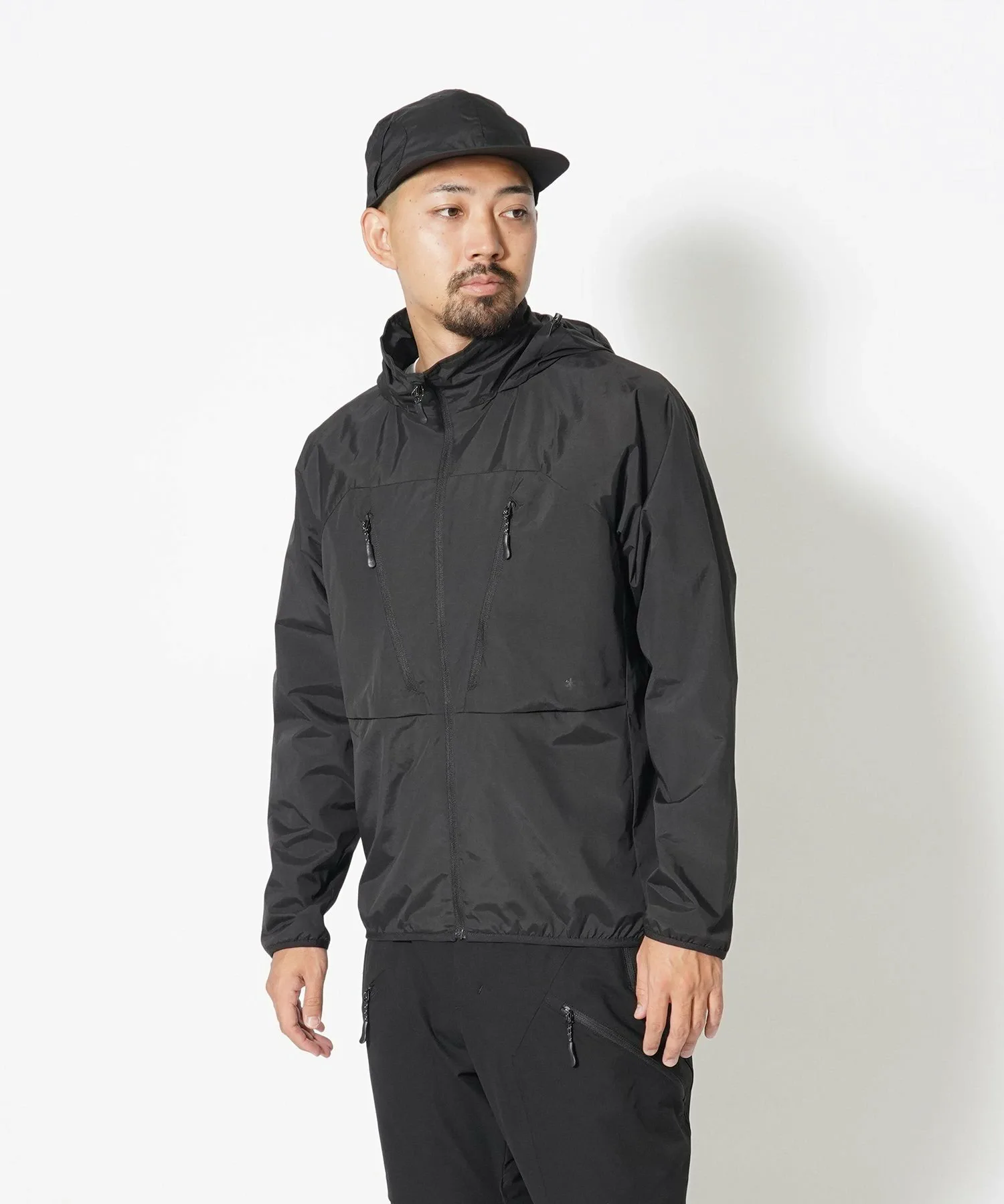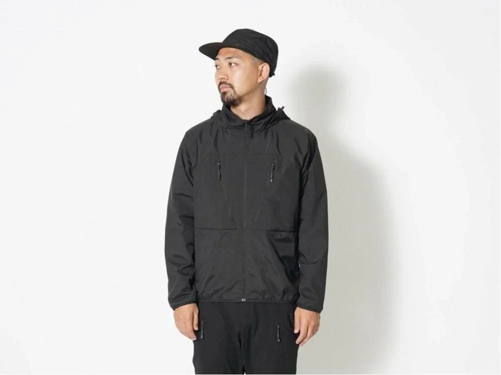 Основной материал — оригинальная ткань бренда "Reclosed" с покрытием. Помимо водоотталкивающих свойств, эта куртка также снижает риск травм от острых предметов. Умеренная водоотталкивающая способность делает ее подходящей для использования в небольшой дождь. Капюшон и воротник сзади оснащены вентиляционными системами, обеспечивающими циркуляцию воздуха внутри изделия. Капюшон можно убрать в воротник, когда он не используется. Нагрудный карман достаточно большой, чтобы вместить ящик для рыболовных принадлежностей. На воротнике сзади прикреплено D-образное кольцо.