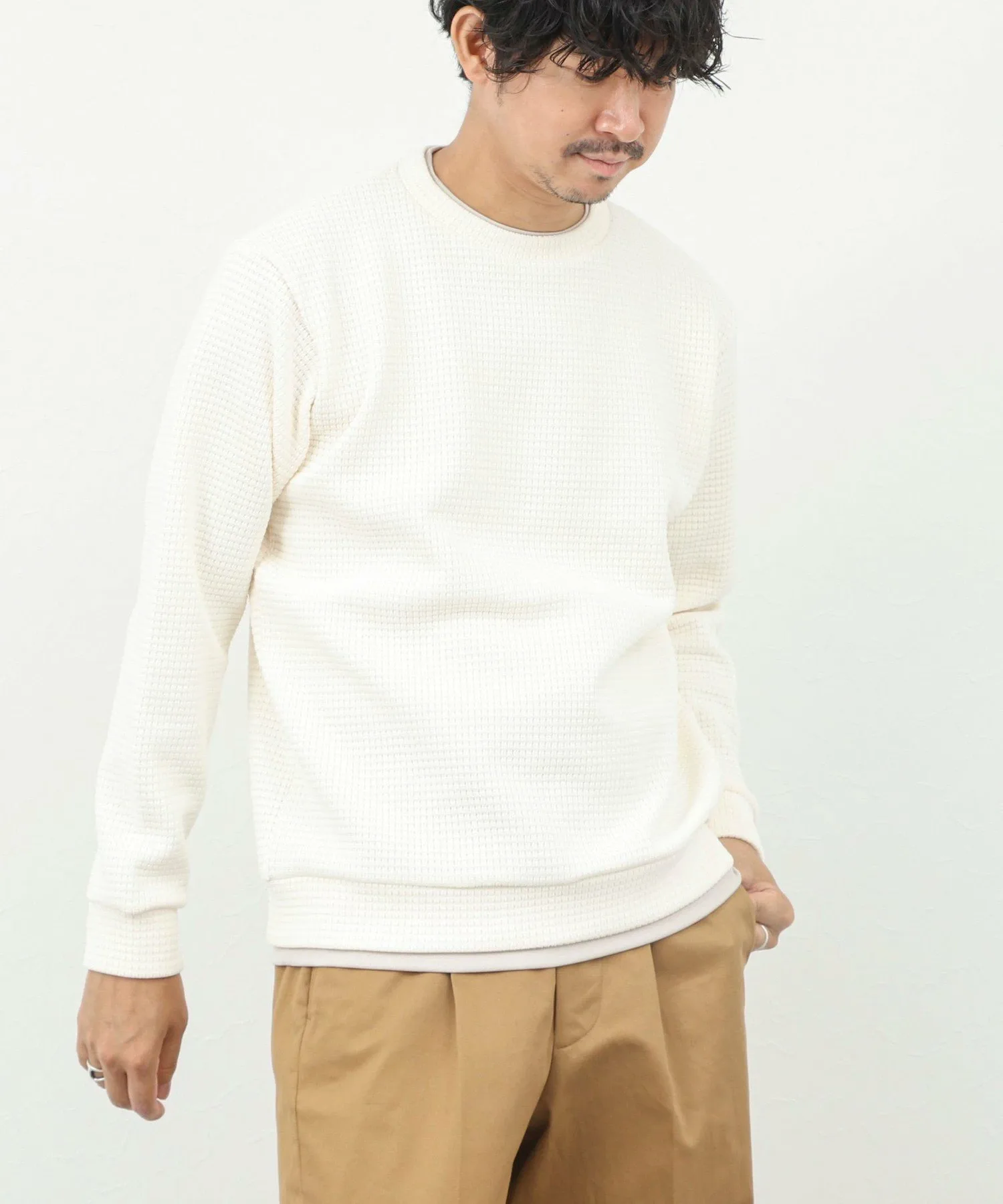 - Ткань с вафельным рисунком, четные стороны с низкой плотностью спереди и высокой плотностью сзади.