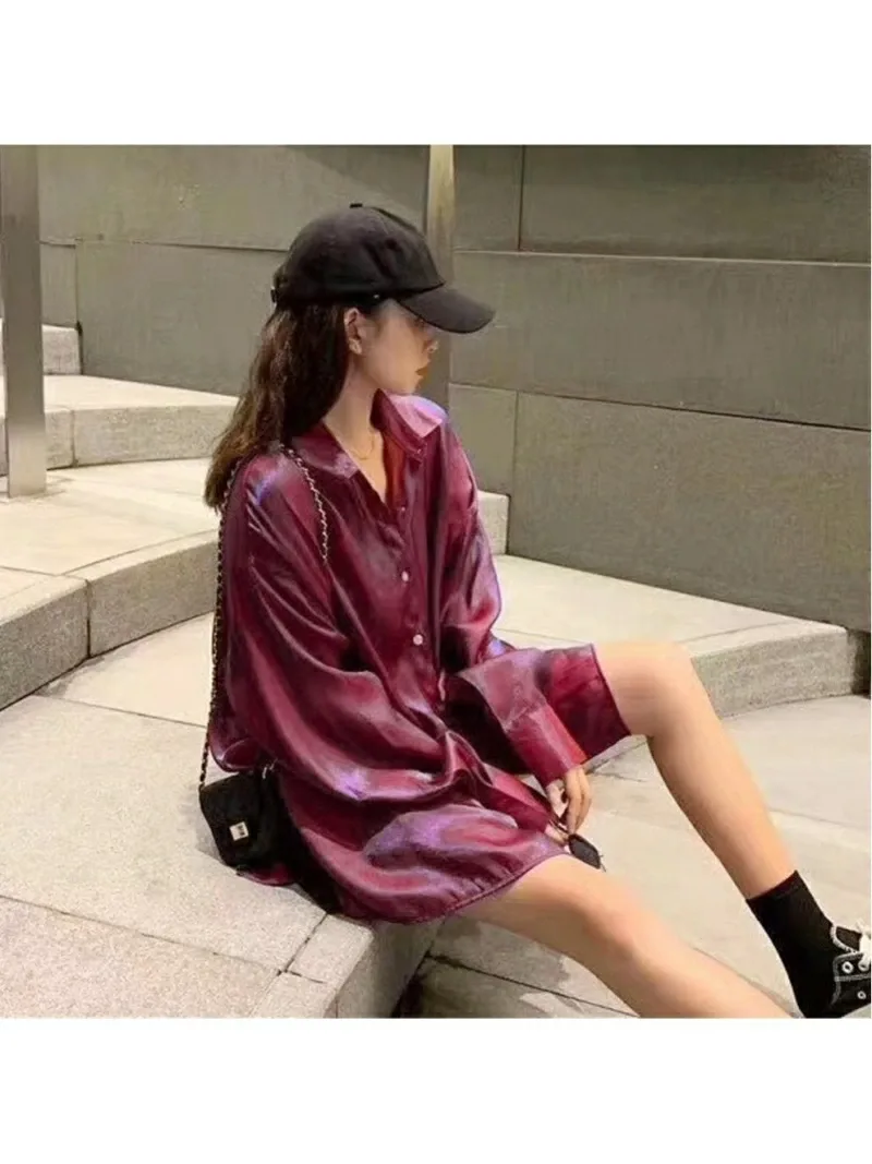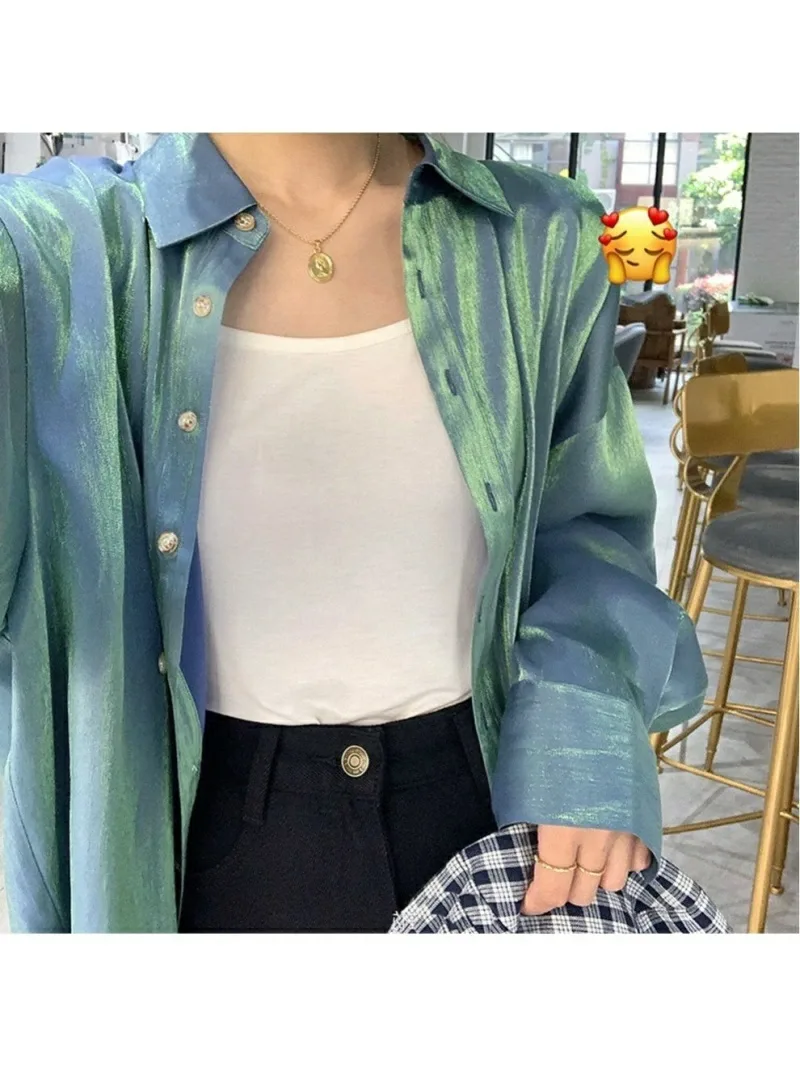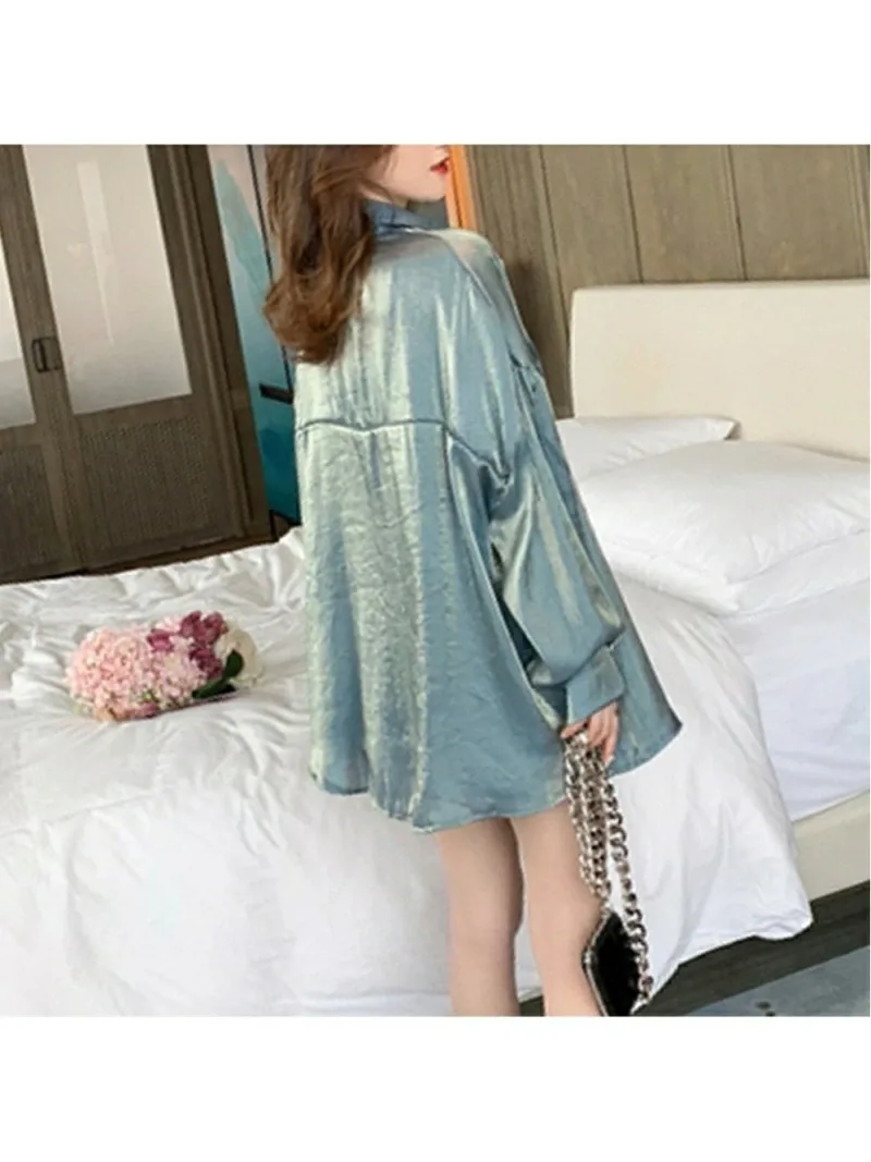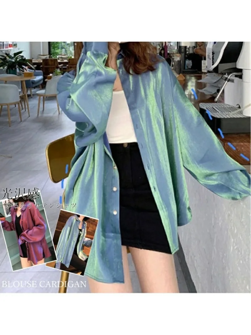 Этот кардиган-блузка из атласа имеет блестящую и мягкую текстуру.