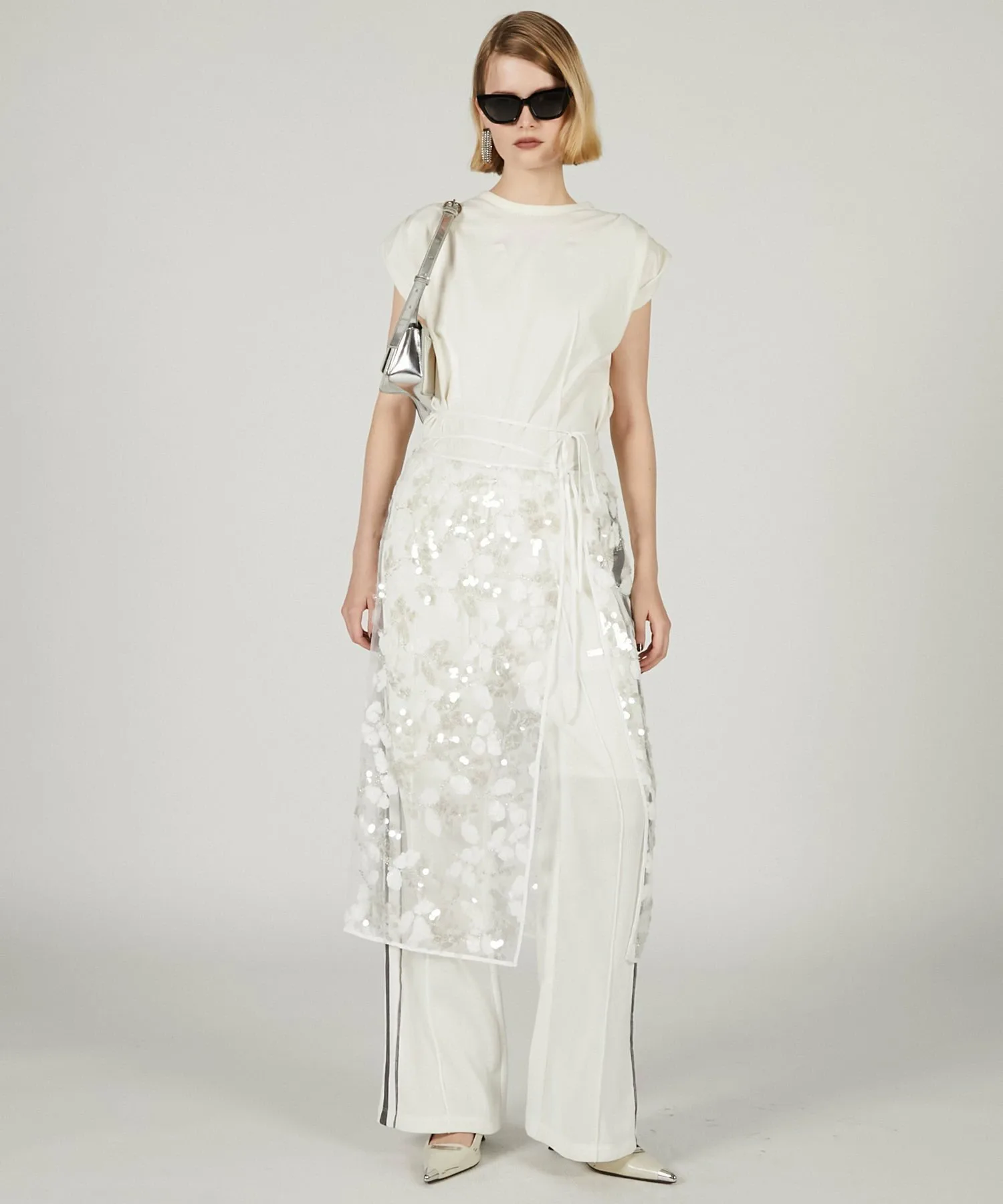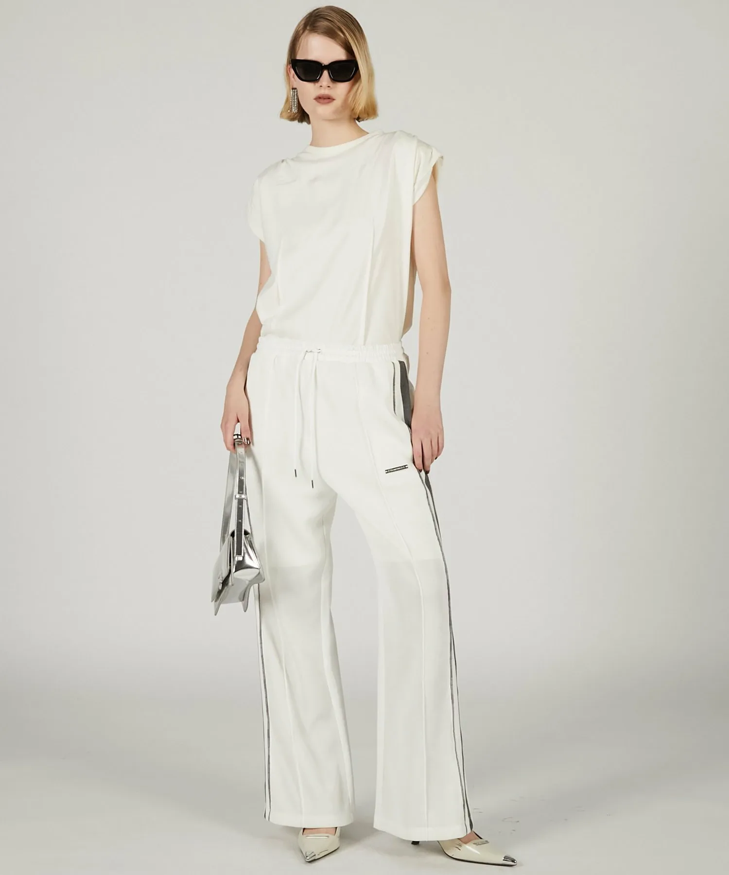 Брюки с боковыми вставками, сочетающие разные материалы спереди и сзади.