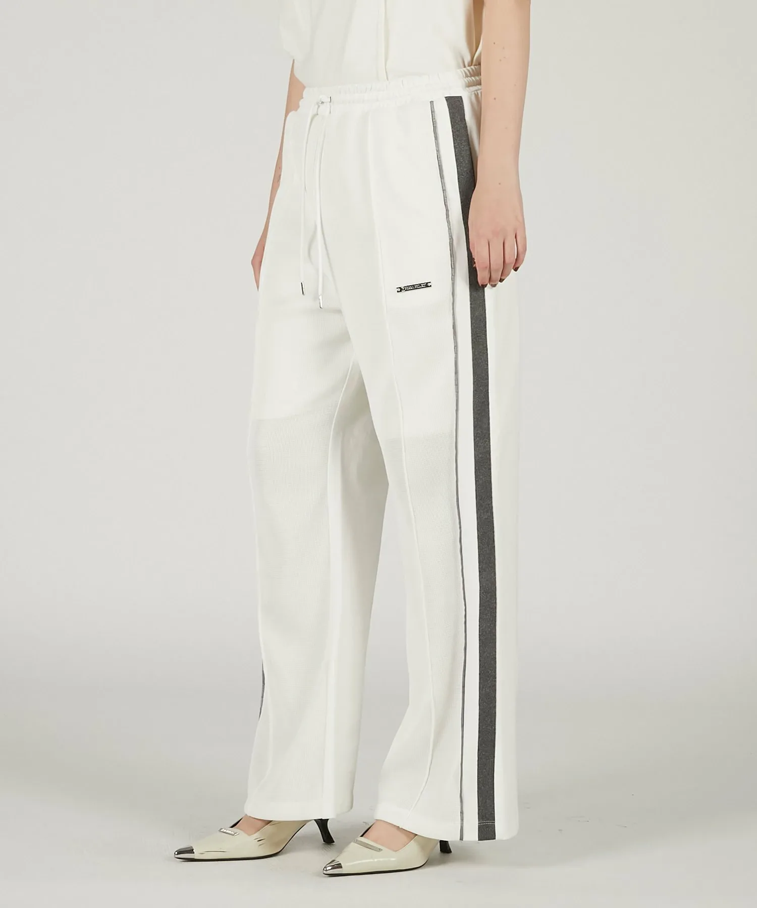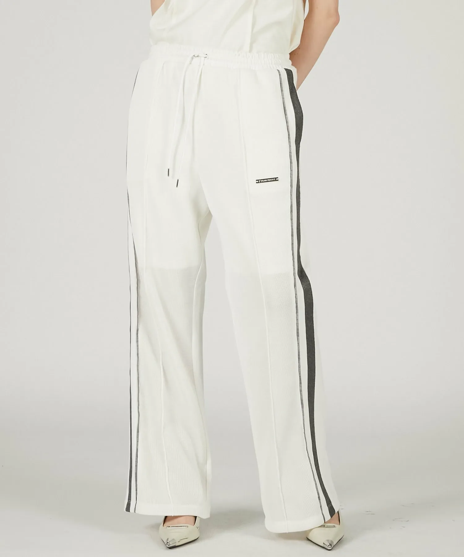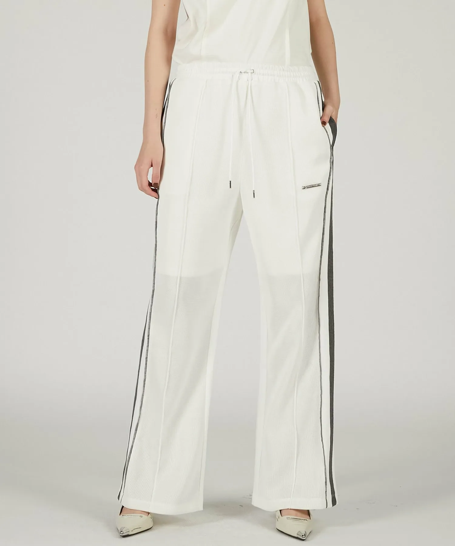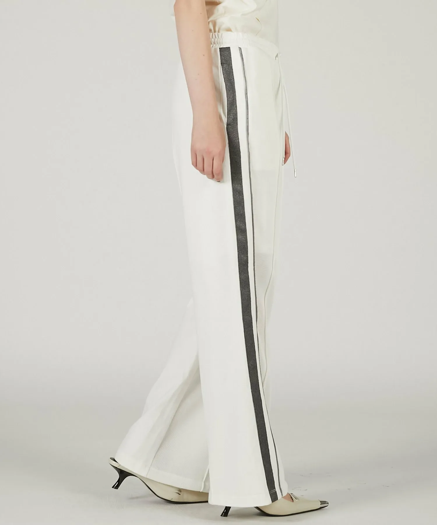 Крупные трикотажные линии и жаккардовые боковые линии с логотипом добавляют акцент.