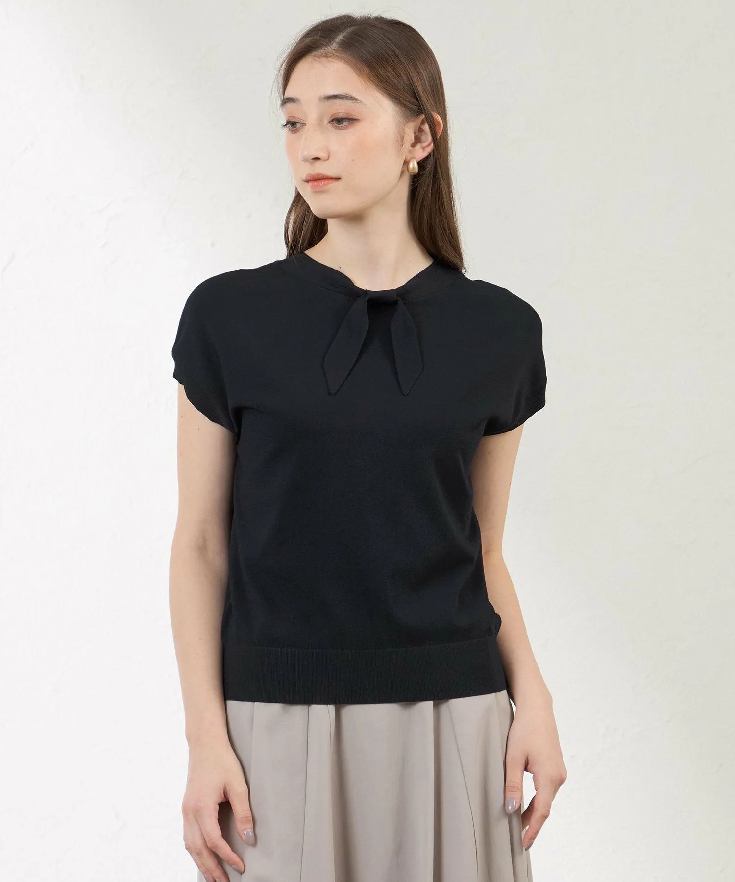 Этот пуловер с французскими рукавами украшен завязкой из ленты.