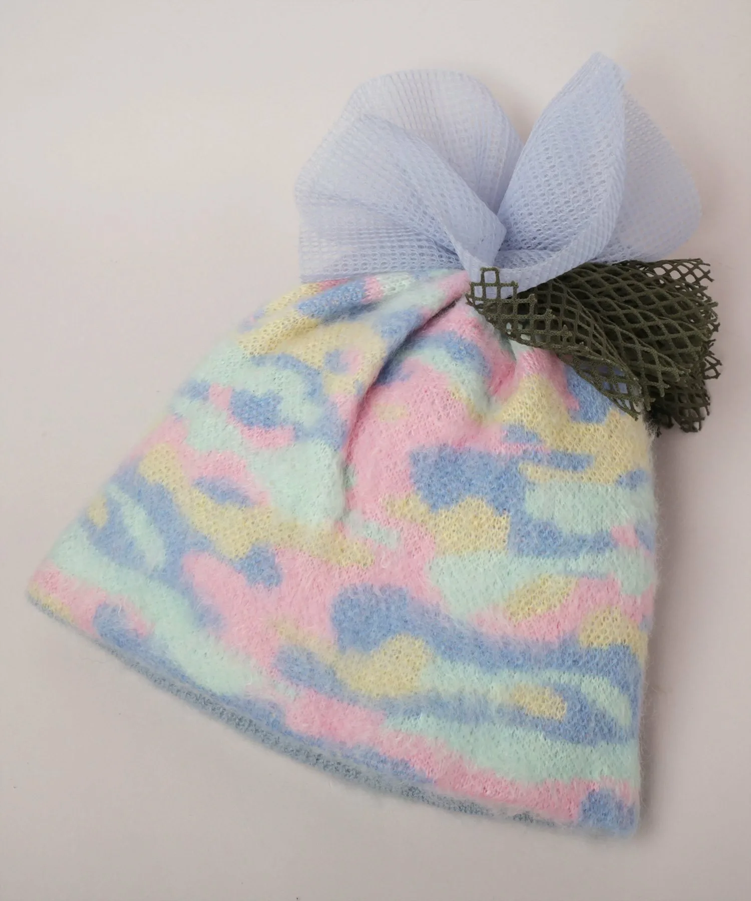 Камуфляжный трикотаж с помпонами.