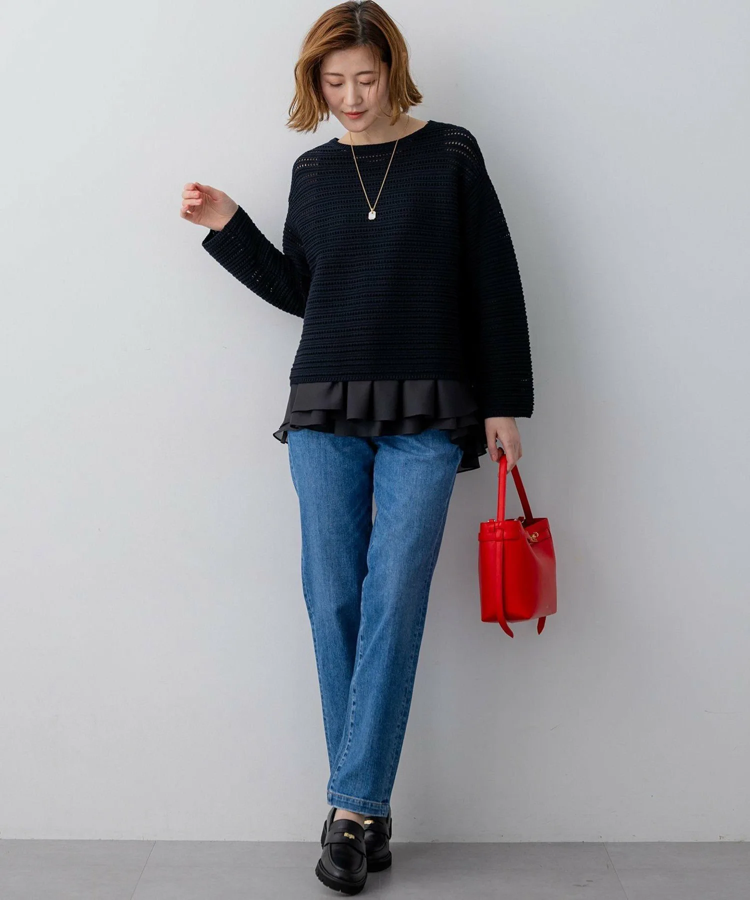 Этот трикотажный свитер с вырезом-лодочкой имеет легкий трикотажный узор, подчеркнутый ажурными элементами и естественным блеском. Изысканный крой обеспечивает достаточно свободы движений для создания обтекаемого силуэта, формируя утонченный, элегантный повседневный стиль. Носите его отдельно или сочетайте с рубашкой или топом для создания изысканного, утонченного образа. Доступен в четырех цветах: чистый белый (#001), элегантный и комфортный бежевый (#033), изысканный темно-синий (#075) и светло-желтый (#042) для более яркого образа.