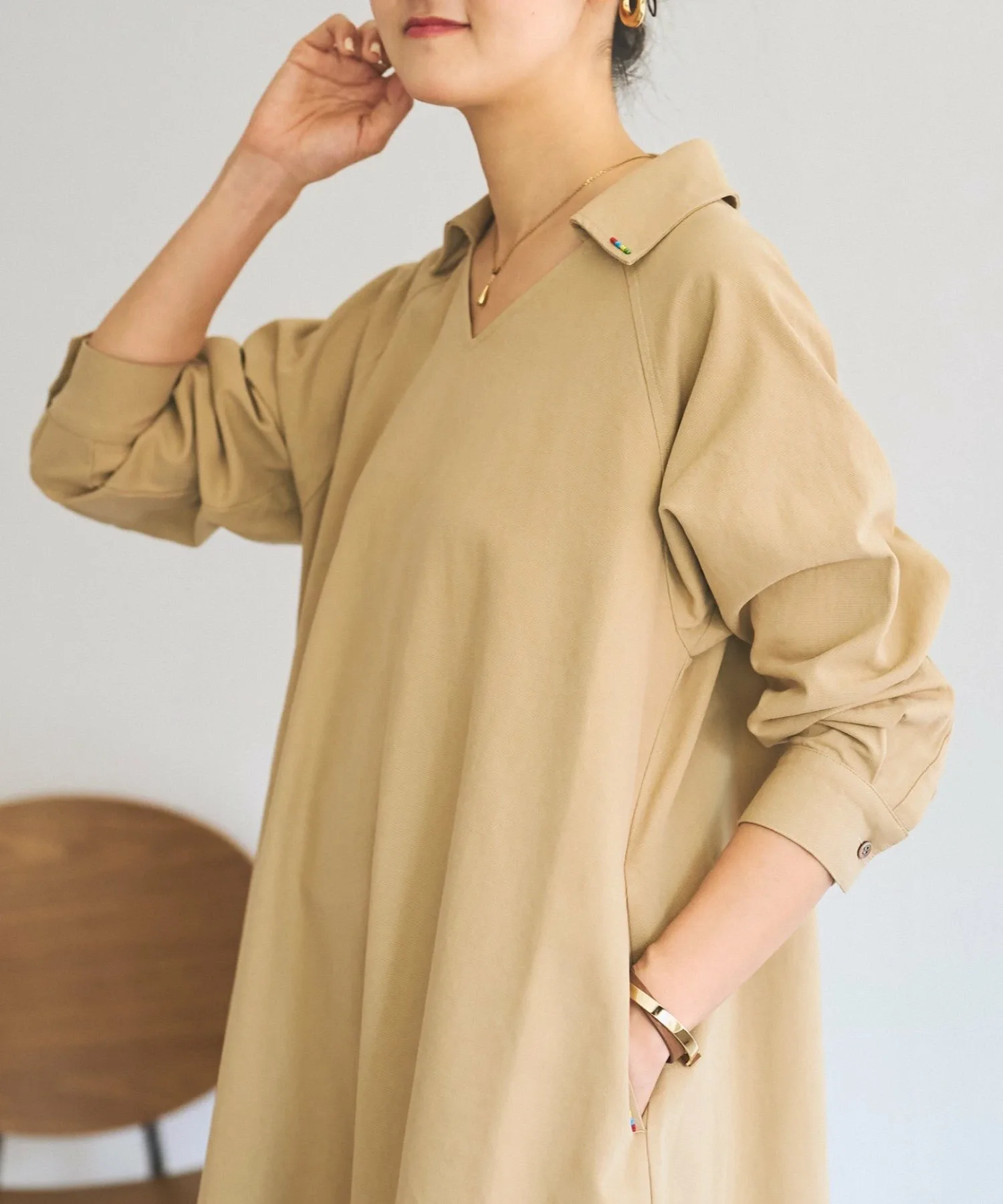 Вырез горловины «скиппер» создает расслабленный образ с оптимальной степенью свободы.