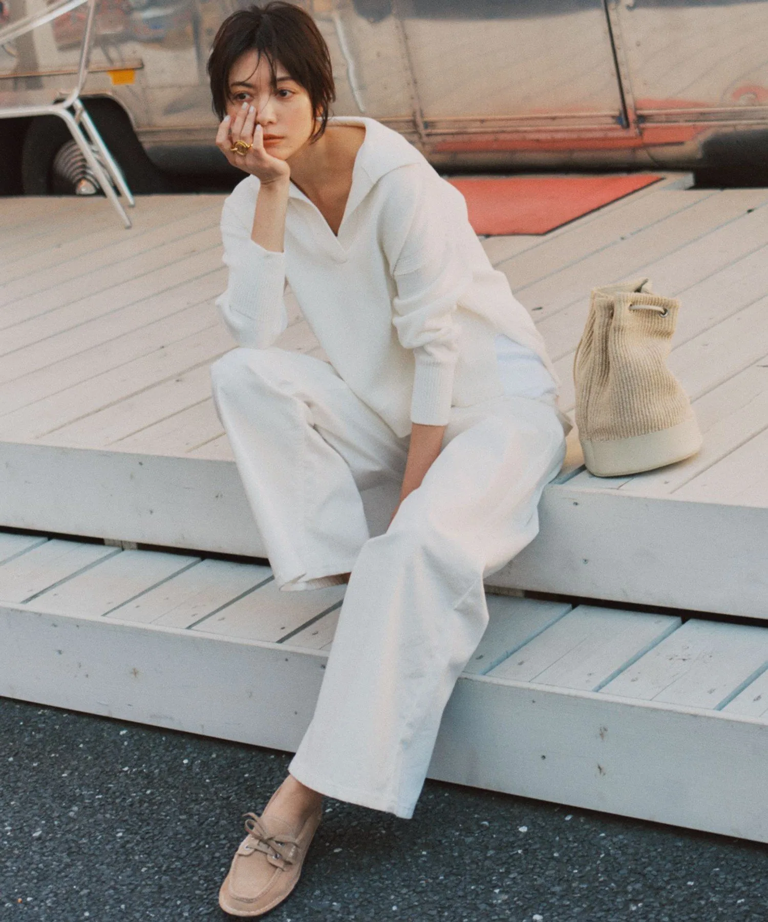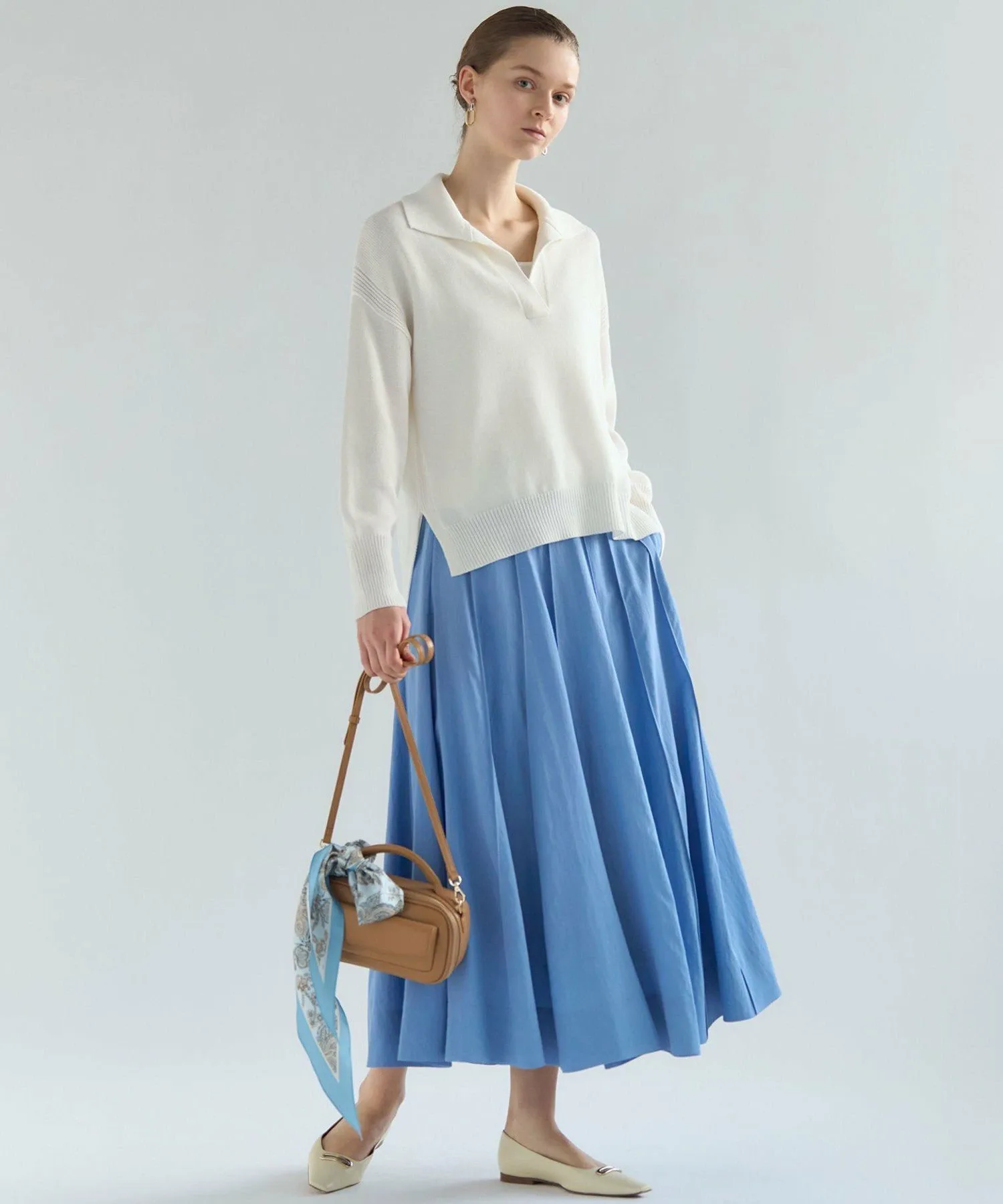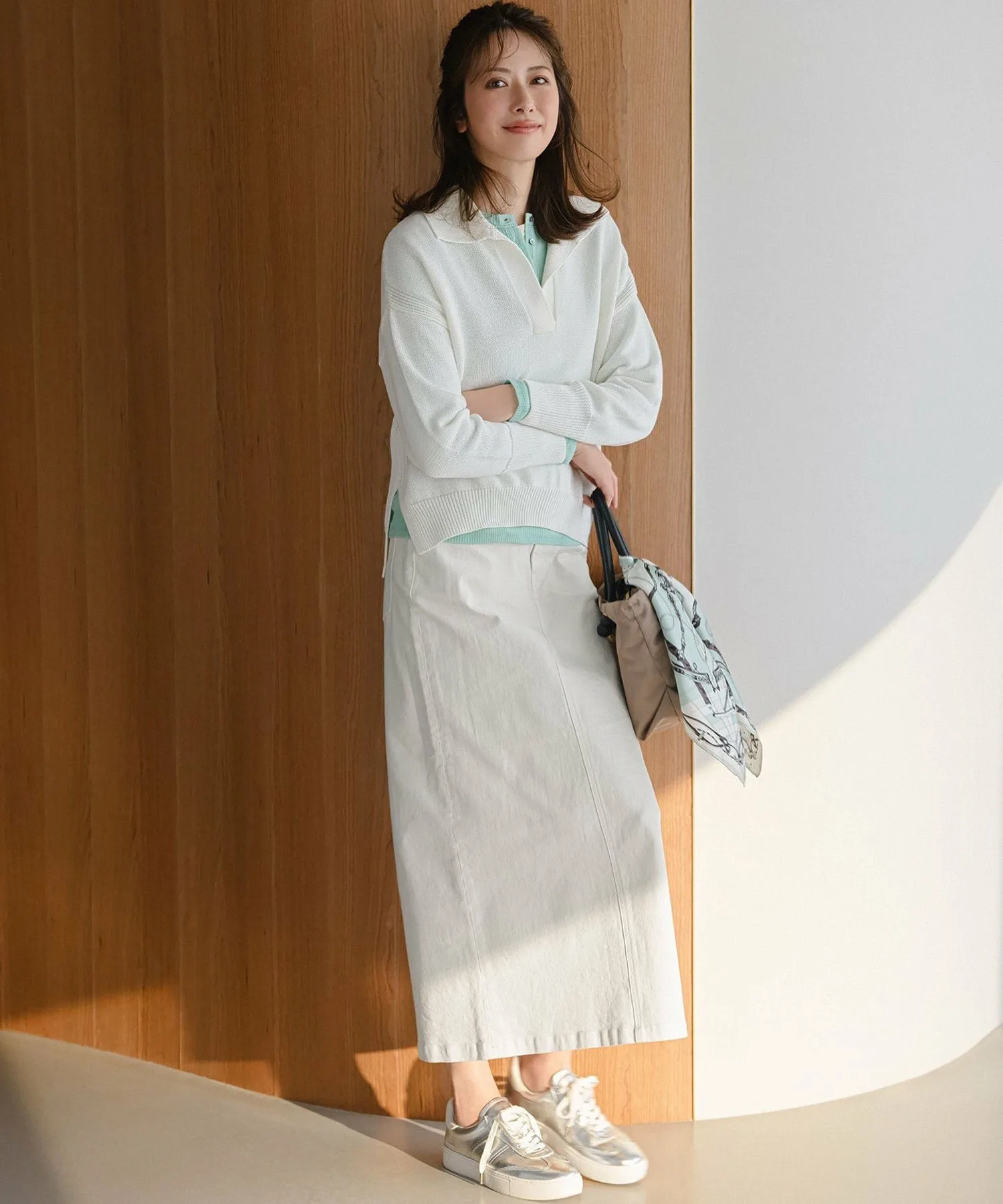 Этот пуловер с воротником-стойкой — эффектная вещь. Связанный из трикотажа, он отличается простым дизайном, но тщательно подобранный размер делает его идеальным как для самостоятельного ношения, так и для сочетания с рубашкой или футболкой для создания сбалансированного образа. Боковые разрезы позволяют легко создать утонченный и элегантный образ, слегка заправив передний край и оставив воротник расстегнутым. Эта вещь излучает утонченный и непринужденный стиль, идеально подходящий для женщин зрелого возраста. Доступен в трех цветах: белый (#001), классический цвет, который идеально сочетается с любым стилем; бежевый (#033), изысканный, тонкий цвет, создающий нежное и мягкое впечатление; и темно-синий (#075), шикарный цвет, идеально подходящий для взрослых, излучающий интеллектуальную и утонченную атмосферу.
