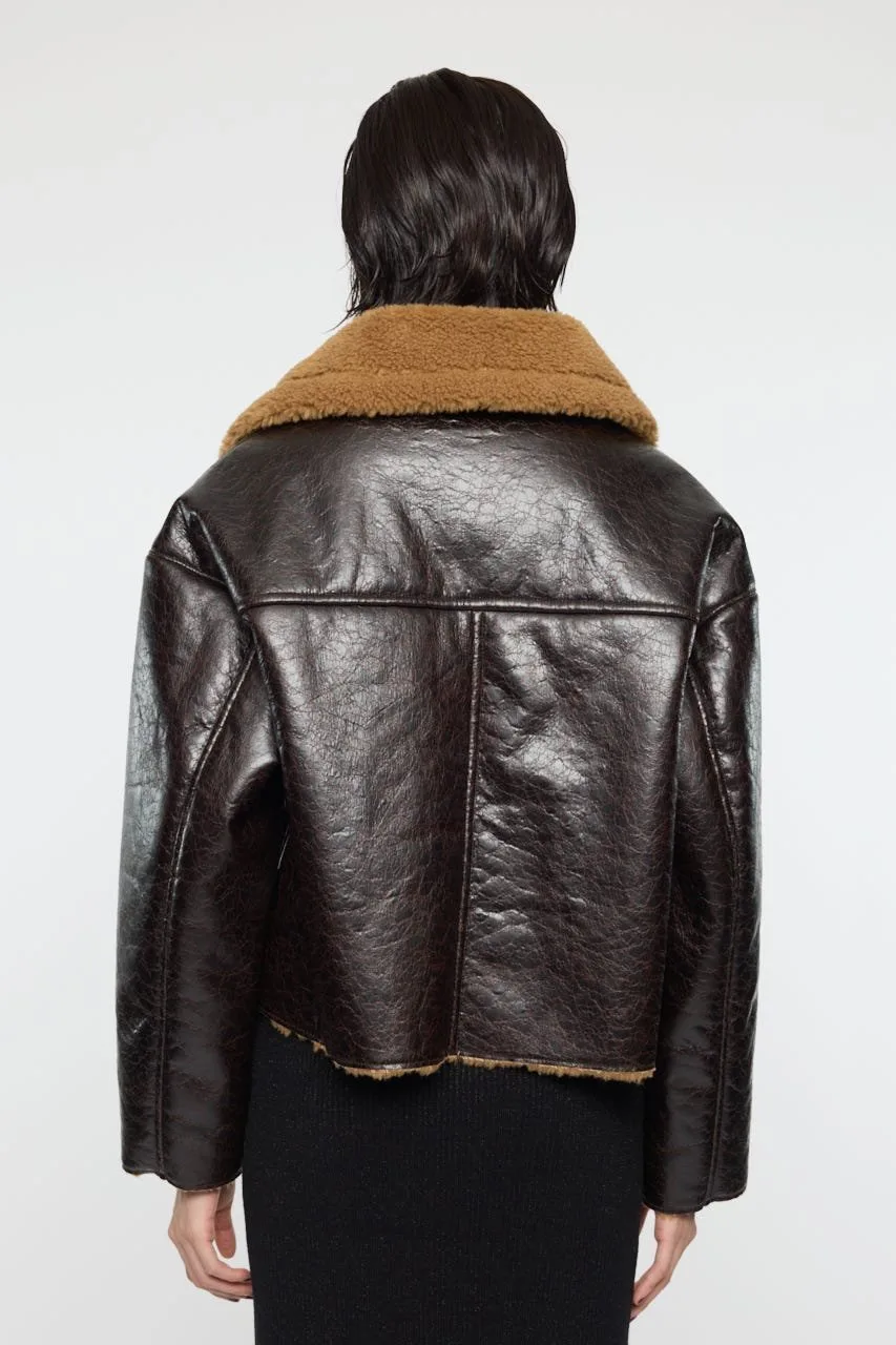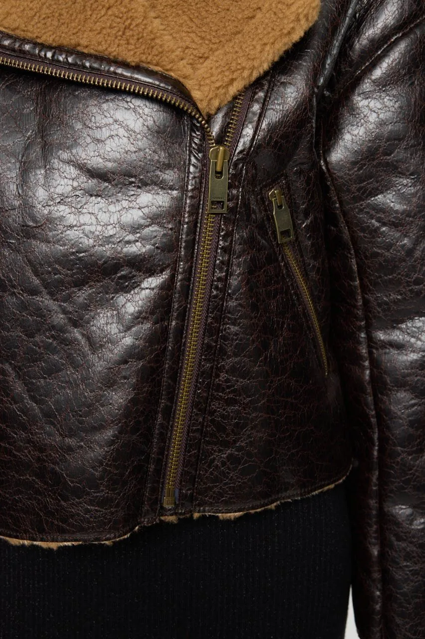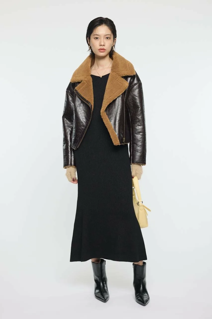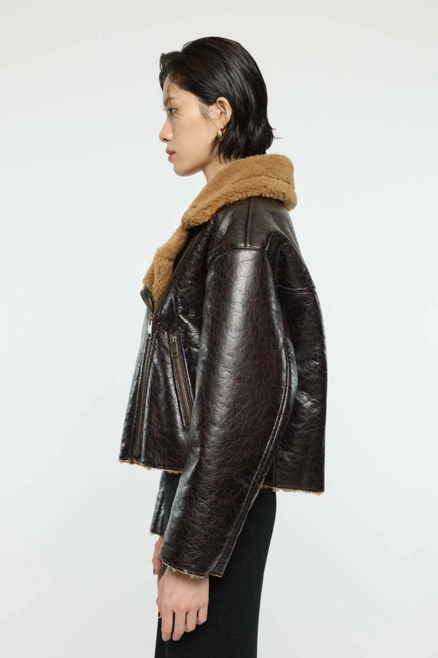 Простая куртка из мутона B-3 с поясом на рукаве.