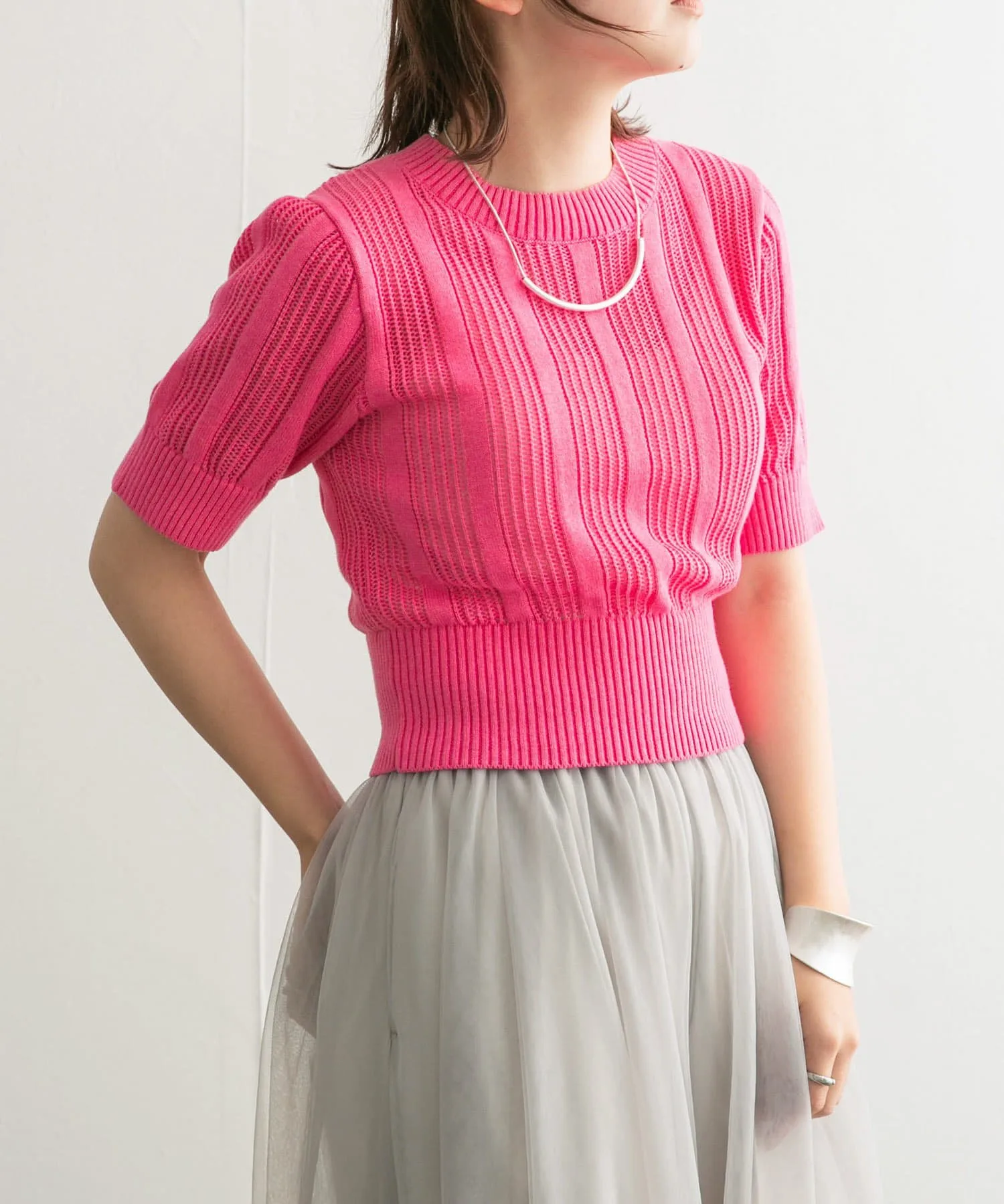 Этот летний трикотаж отличается ажурной вязкой и яркими полосками. Его компактный размер естественным образом подчеркивает вашу фигуру. Идеально подходит как в качестве основного элемента одежды, так и в качестве нижнего слоя для комбинезона. Доступен в двух цветах, которые поднимут вам настроение.