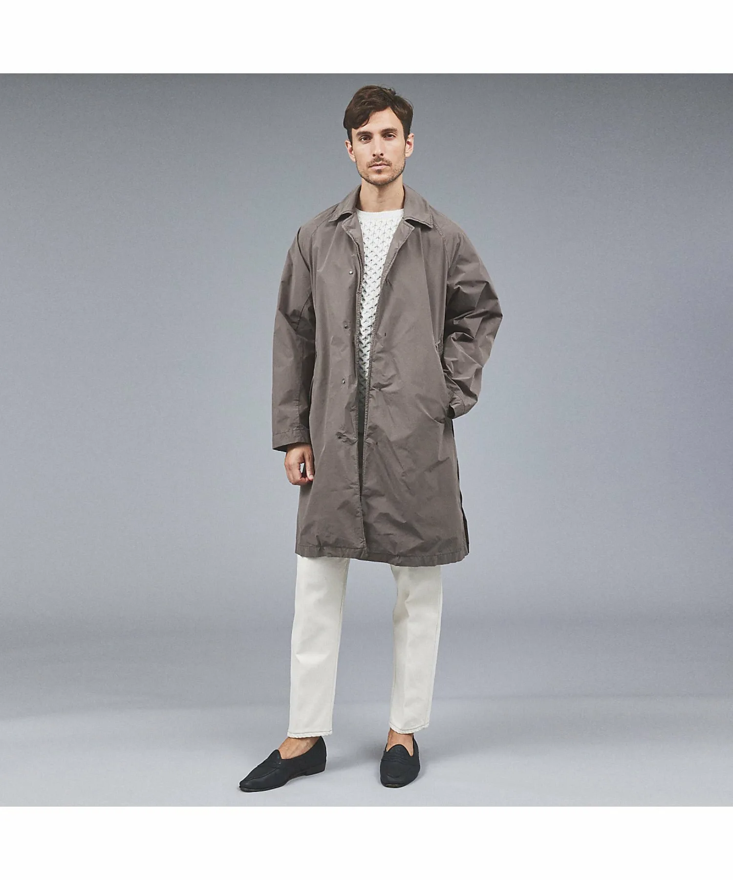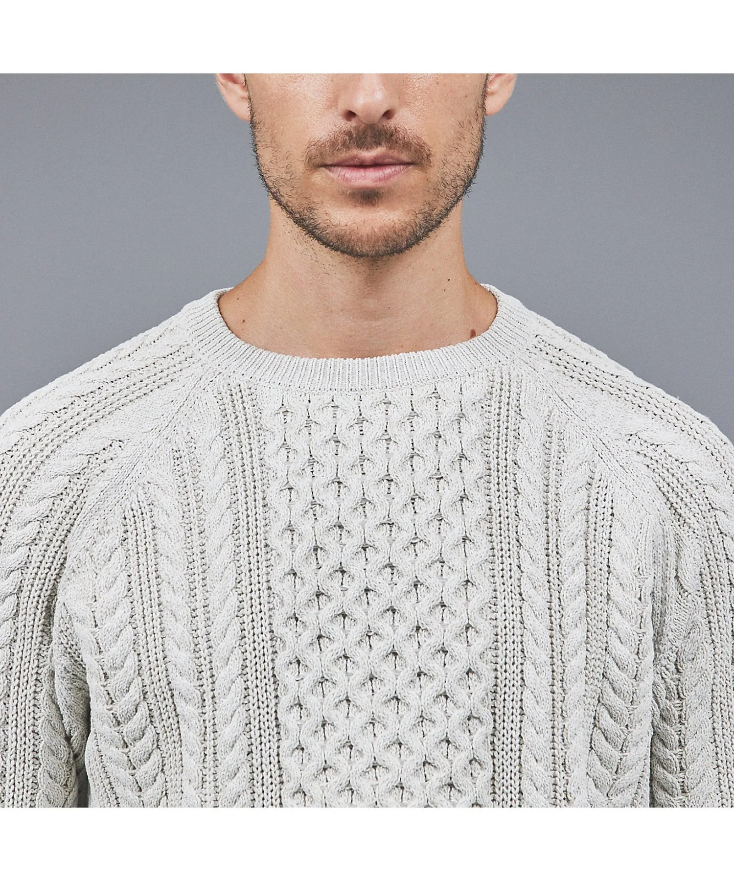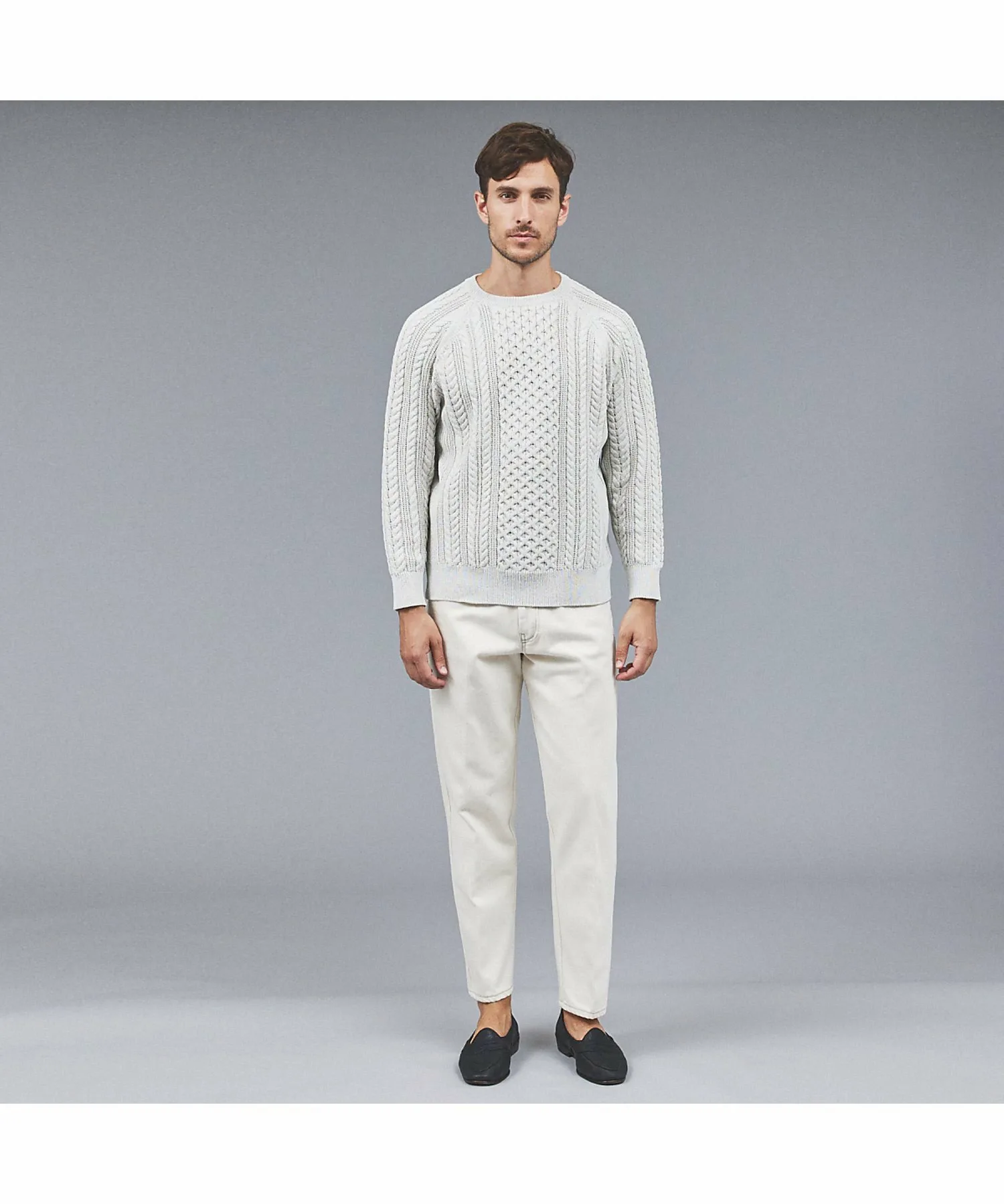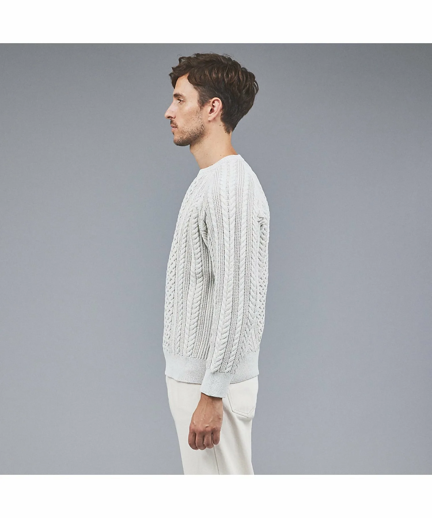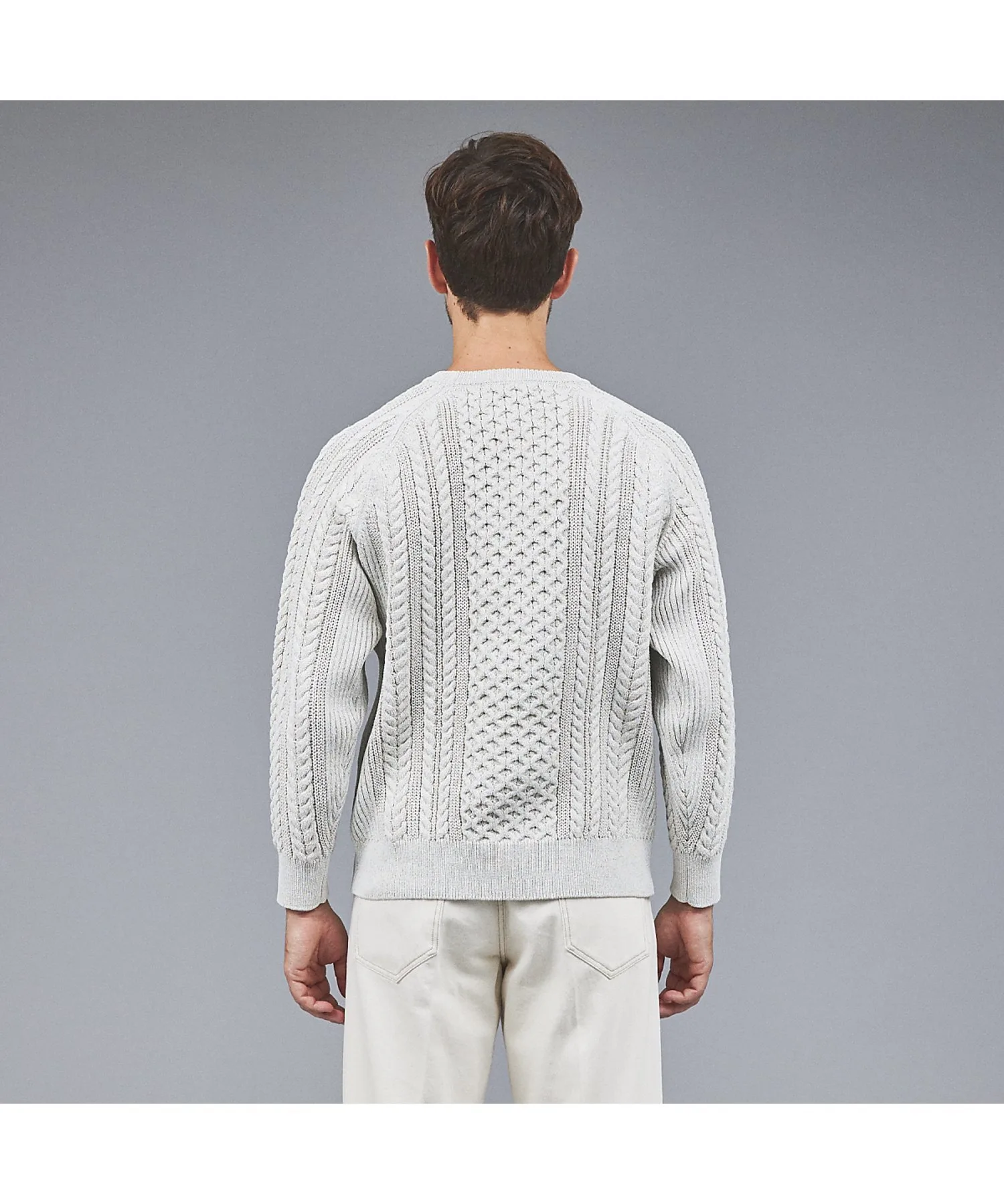 В отличие от свитеров «Аран» с низкой плотностью вязания, этот свитер имеет текстурированную поверхность, что позволяет создавать широкий спектр многослойных образов, от верхней одежды до курток.
