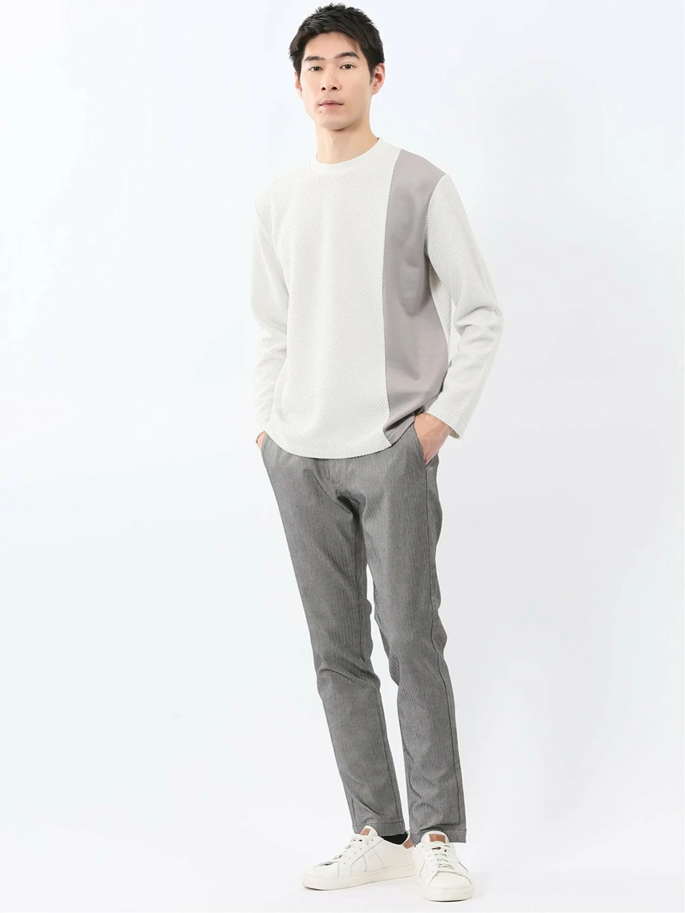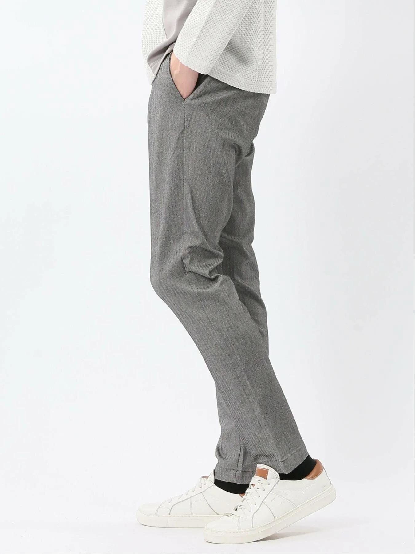 Слегка зауженный силуэт с сужающимися штанинами. Также визуально удлиняет ноги и создает четкие линии.