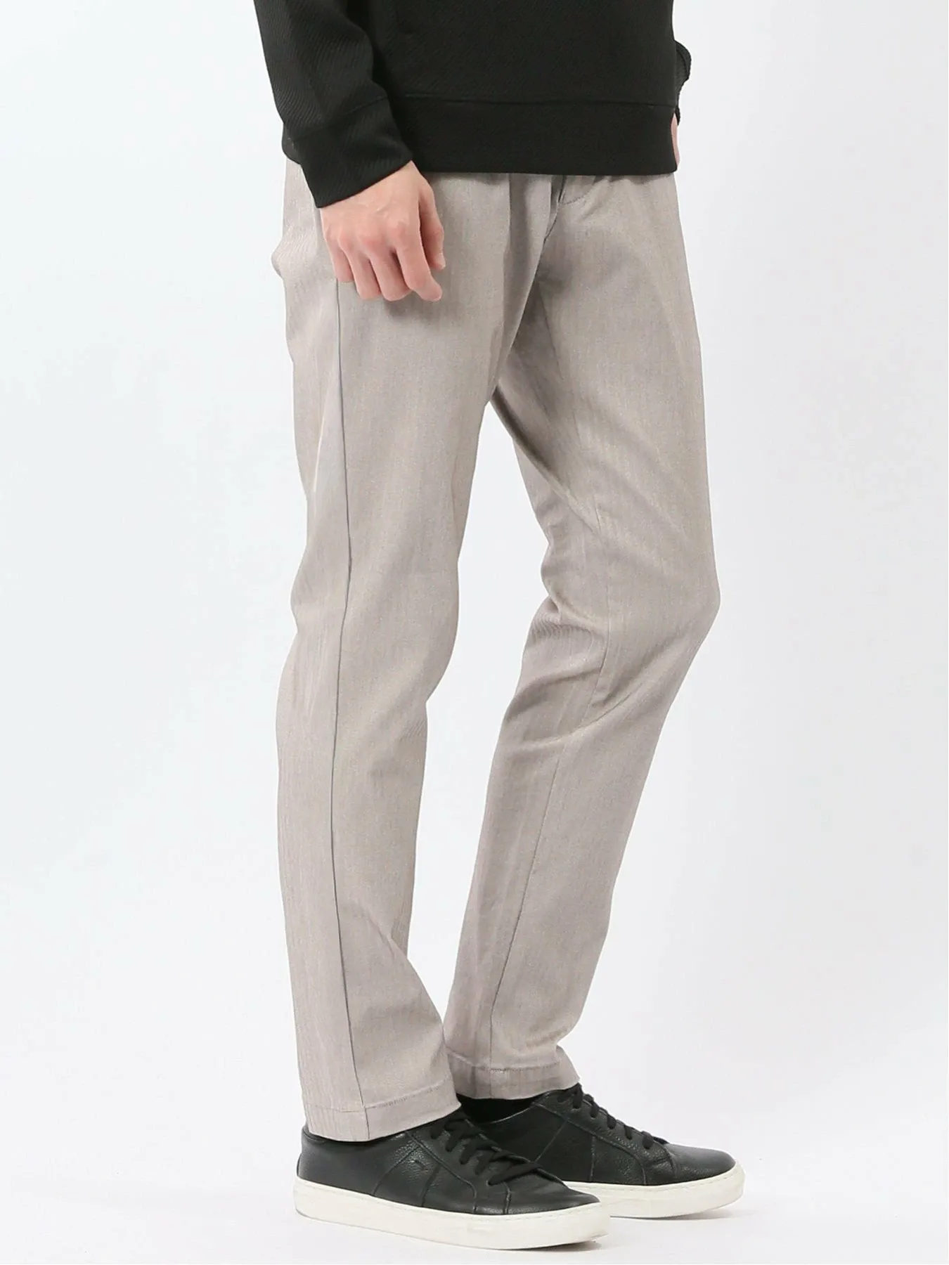 Слегка зауженный силуэт с сужающимися штанинами. Также визуально удлиняет ноги и создает четкие линии.