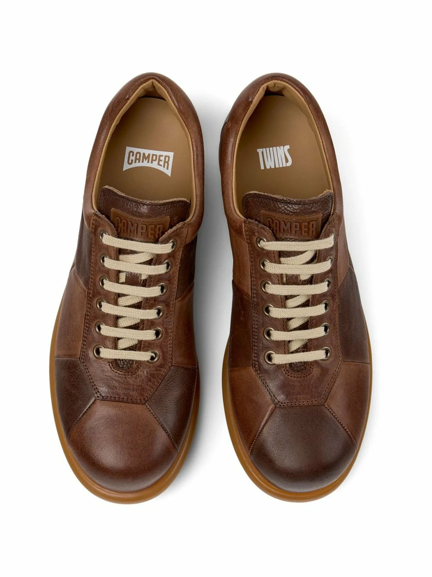 Представленная в 1988 году серия "TWINS" продолжает новаторские дизайнерские решения Camper, основанные на концепции, что "каждая нога обладает своей уникальной индивидуальностью, но вместе они образуют идеальную пару". Эта культовая концепция Camper каждый сезон представляет уникальные дизайны. В этом сезоне модель Pelotas Ariel переиздана.