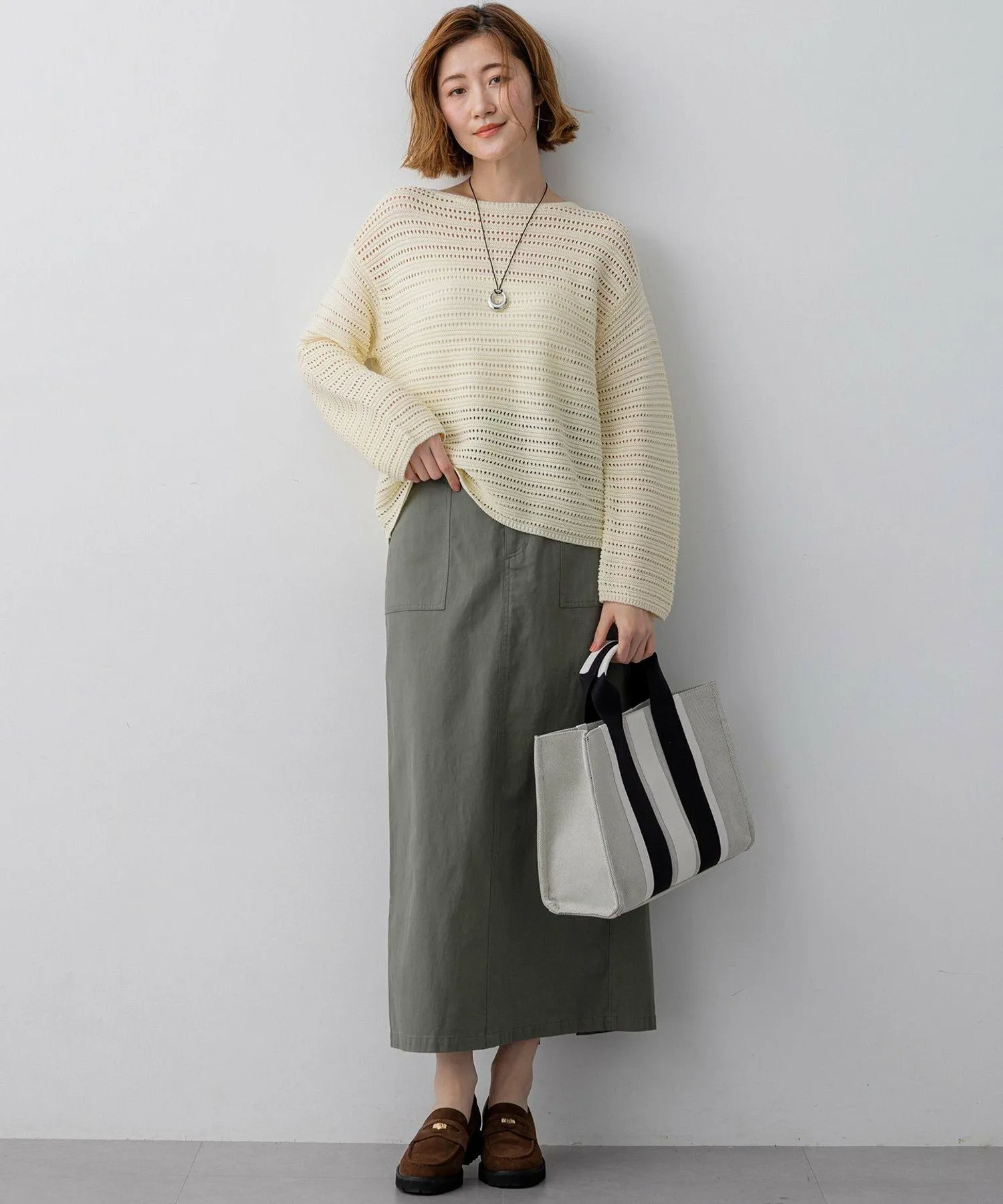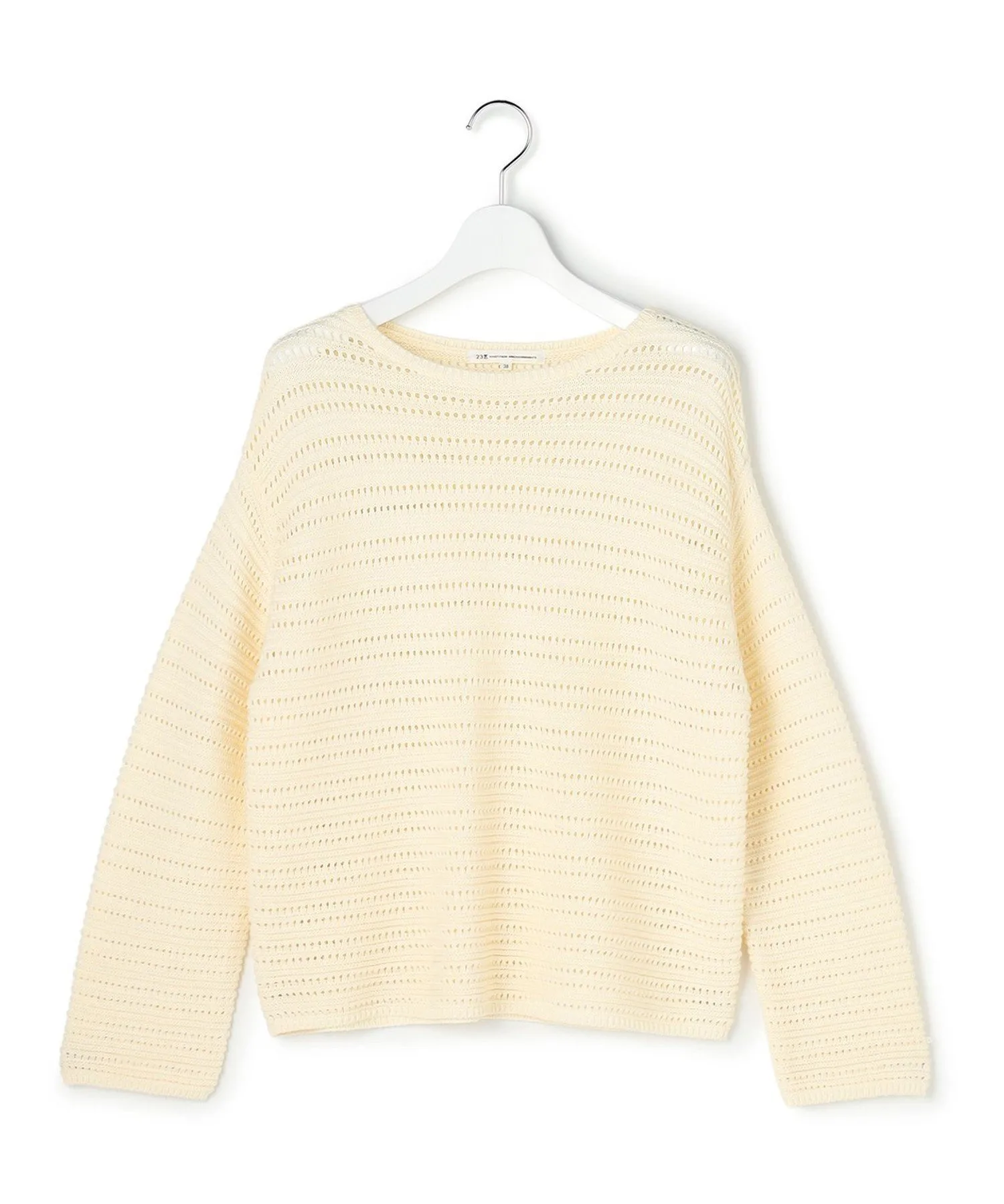 Этот трикотажный свитер с вырезом-лодочкой имеет легкий трикотажный узор, подчеркнутый ажурными элементами и естественным блеском. Изысканный крой обеспечивает достаточно свободы движений для создания обтекаемого силуэта, формируя утонченный, элегантный повседневный стиль. Носите его отдельно или сочетайте с рубашкой или топом для создания изысканного, утонченного образа. Доступен в четырех цветах: чистый белый (#001), элегантный и комфортный бежевый (#033), изысканный темно-синий (#075) и светло-желтый (#042) для более яркого образа.
