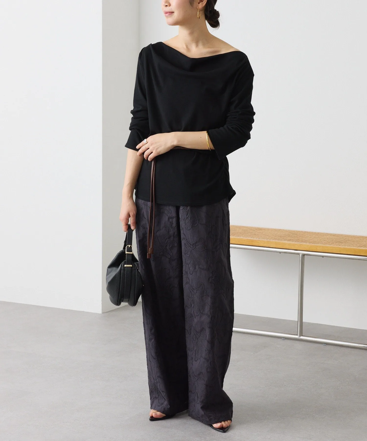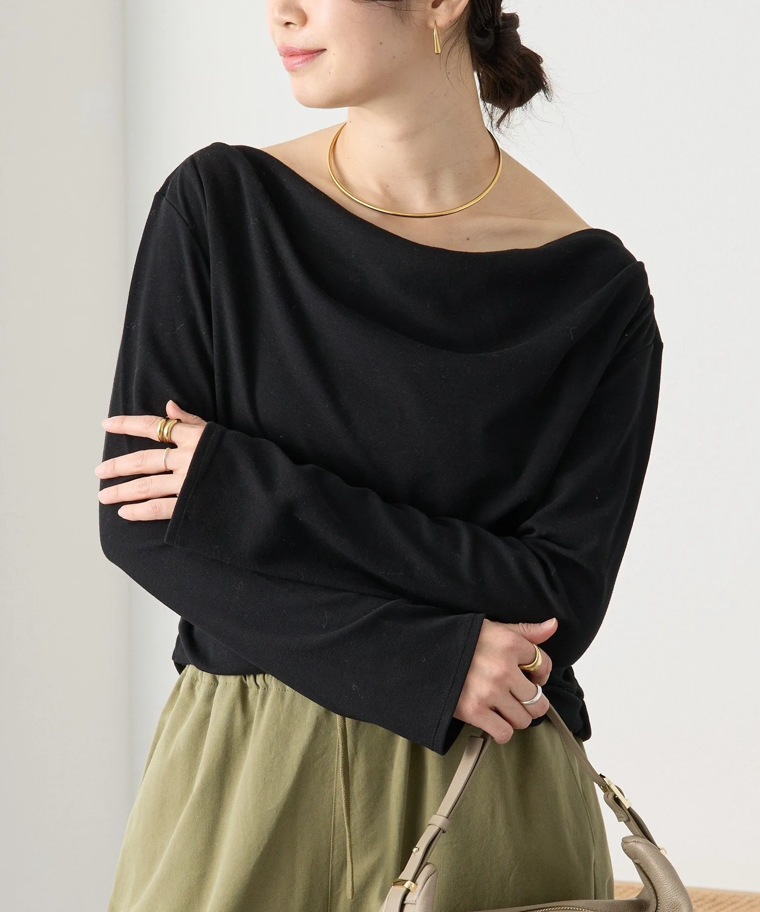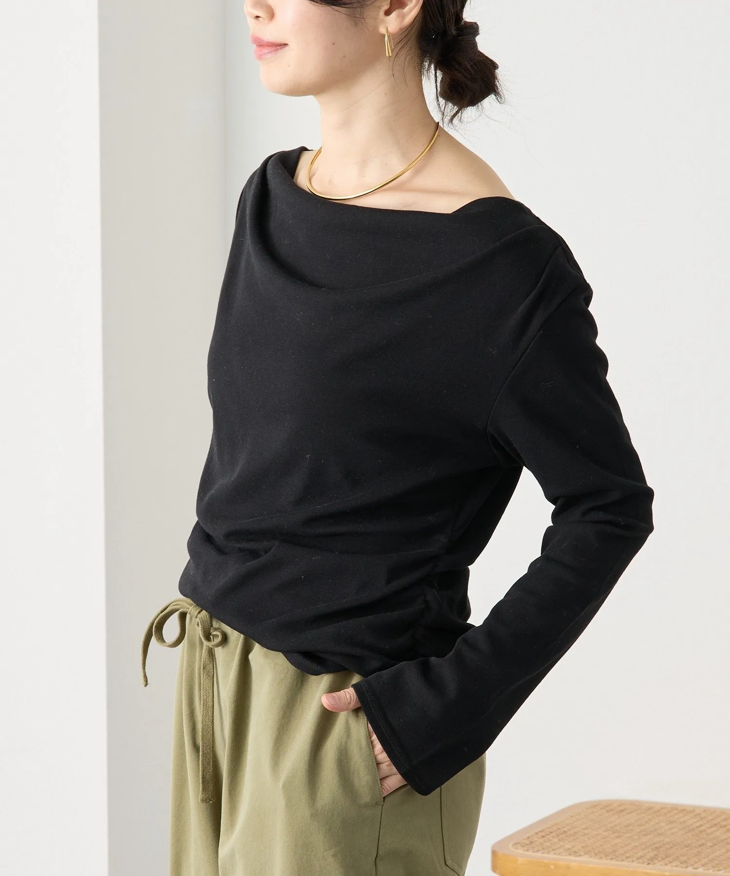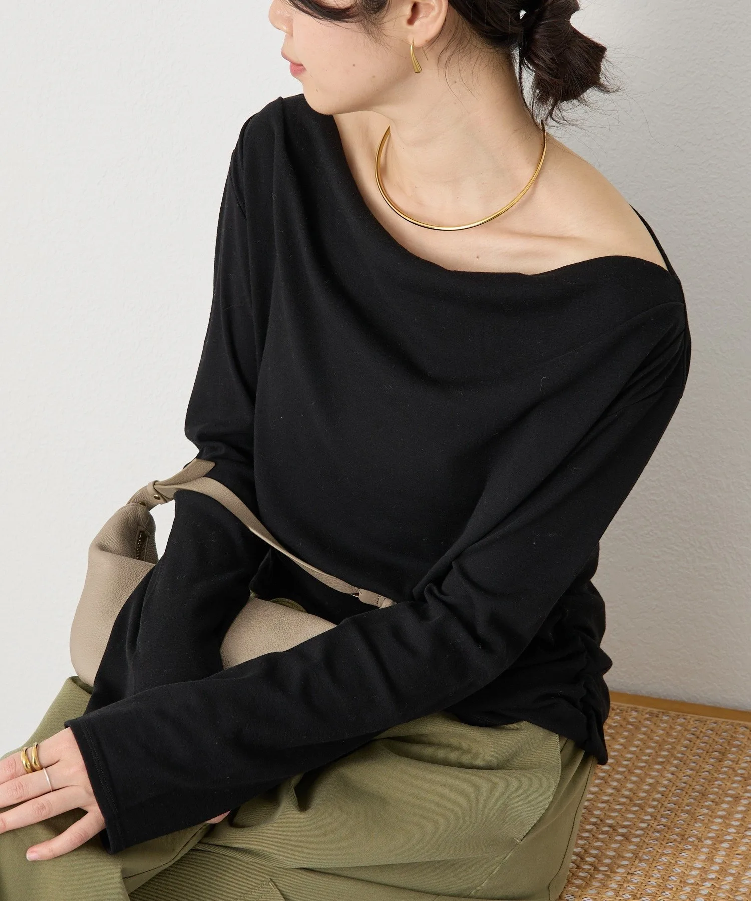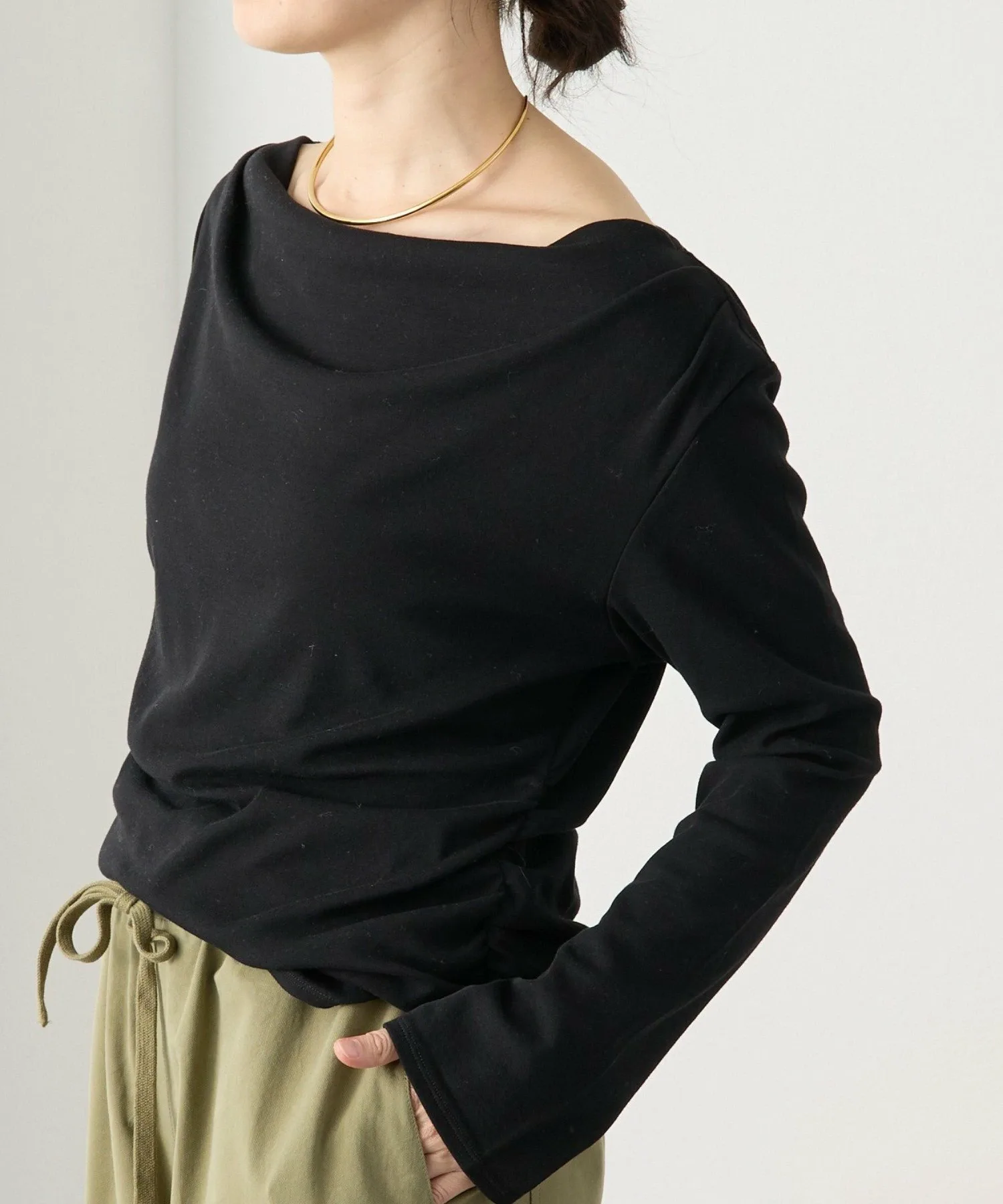 - Дизайн, подчеркивающий шею, позволяет носить топ как на одно плечо, так и с открытыми плечами.