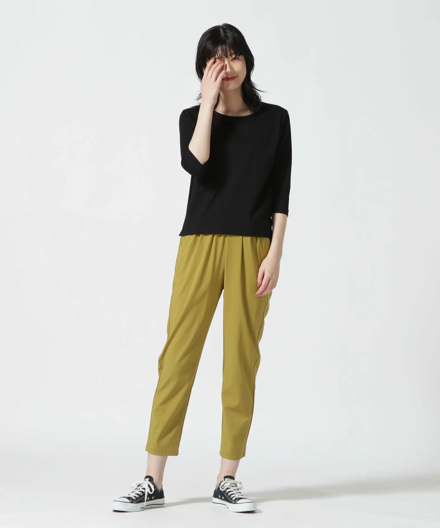 Длина на 6 см больше, чем у наших стандартных брюк, а высота посадки на 2,5 см выше, что позволяет легко сочетать их с короткими топами.