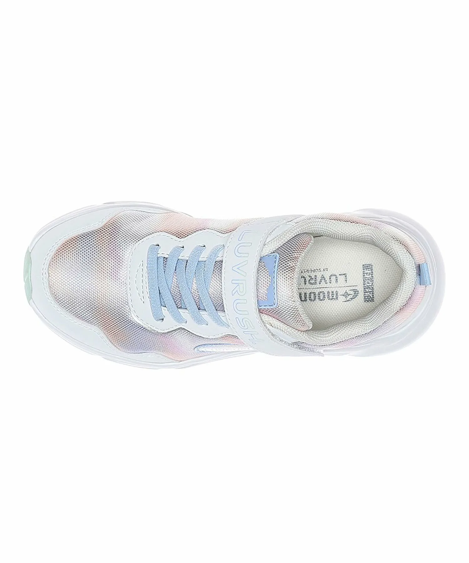 Верх из сетки имеет узор, напоминающий туман, вдохновленный небом. Многоцветная цветовая гамма напоминает утреннее сияние, создавая эмоциональную атмосферу. Подошва изготовлена из Lightfoam, мягкого материала с отличной амортизацией, что делает ее идеальной для бега, например, на спортивных мероприятиях и уроках физкультуры, а также для прогулок.