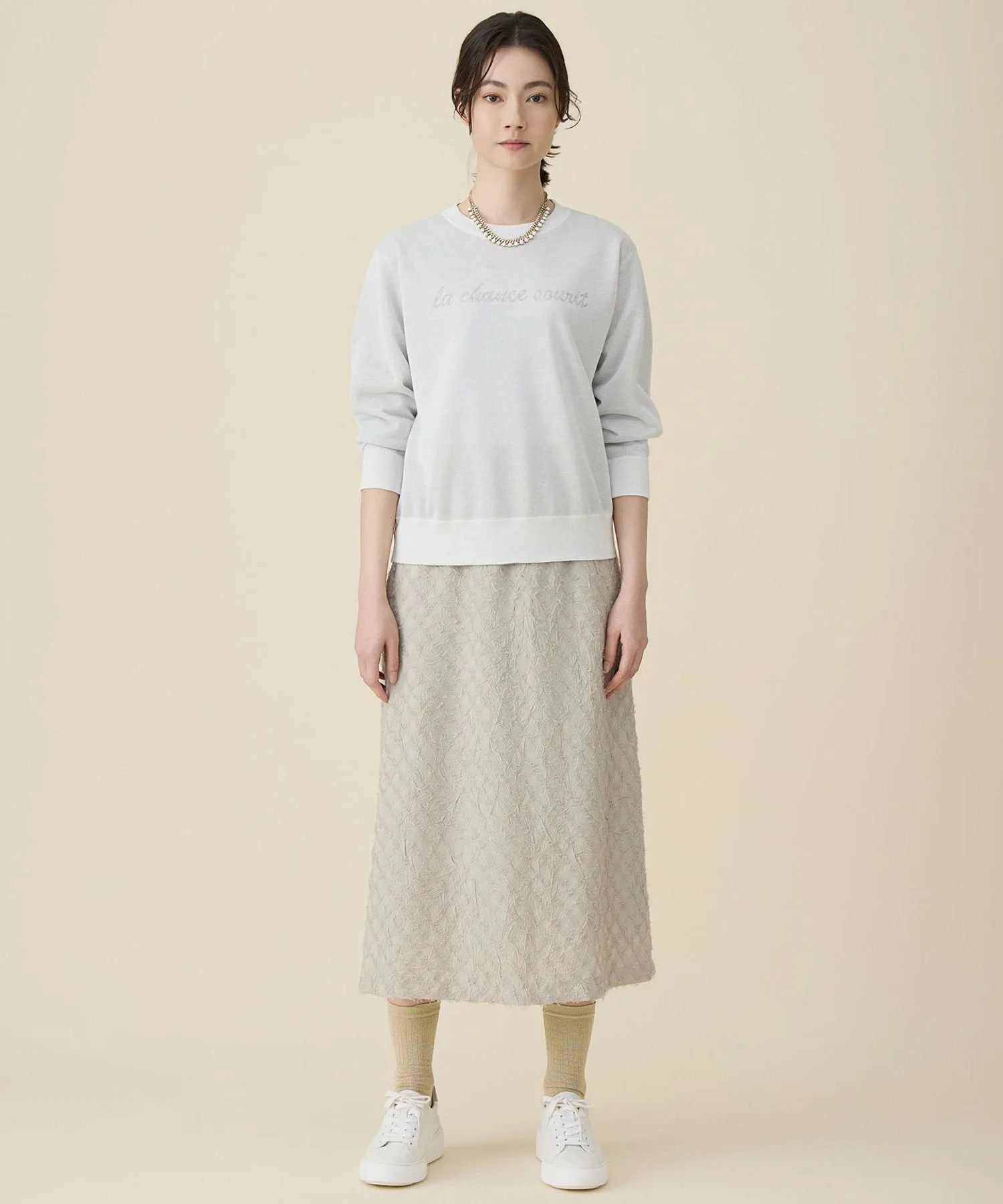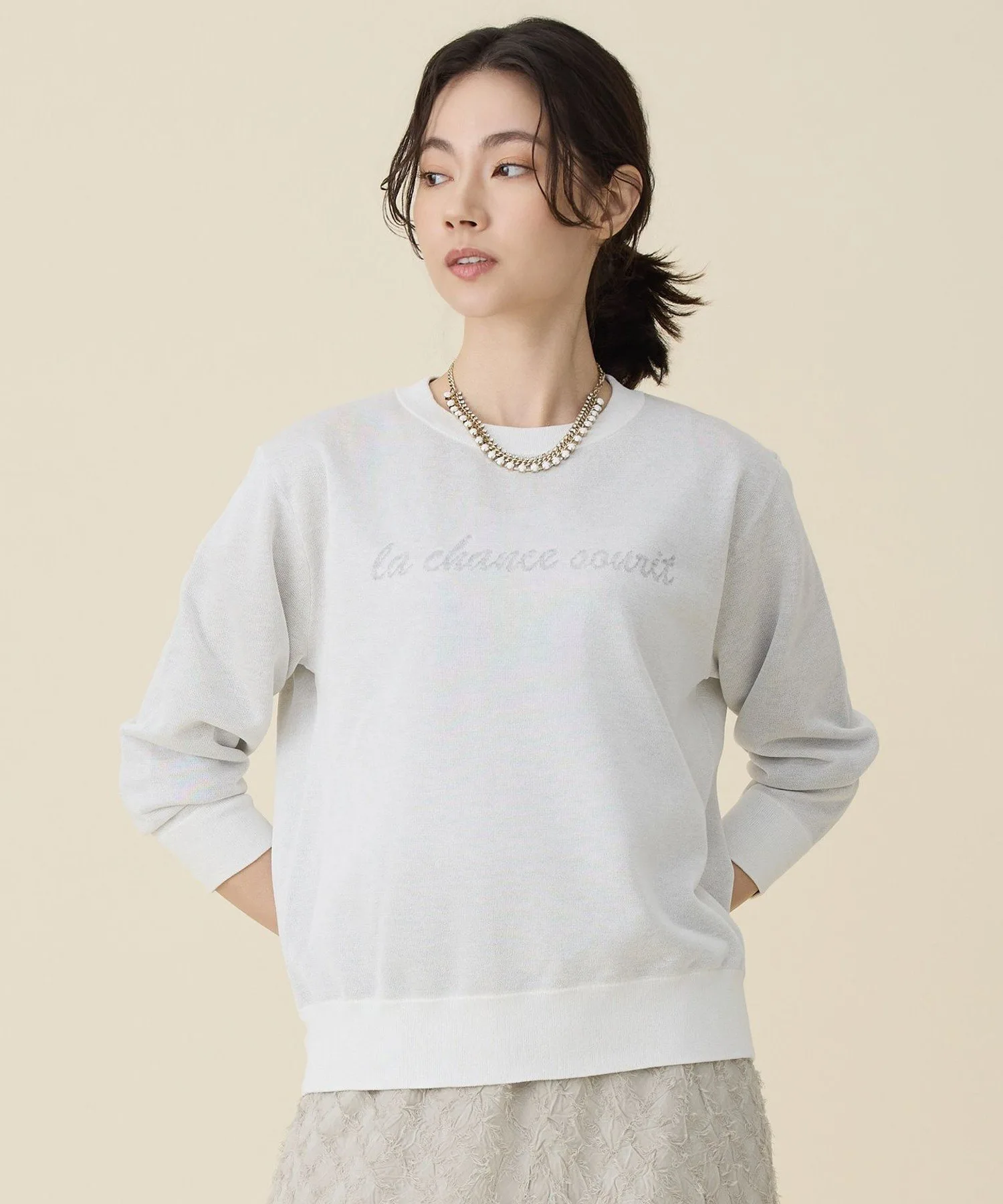 Трикотажное изделие с графическим рисунком из прозрачного материала для создания непринужденного образа. Дизайн: Этот прозрачный трикотаж — модная вещь. Прозрачный материал связан жаккардовой техникой и украшен графическими буквами. Идеально подходящий в качестве эффектного элемента, трикотаж также придает повседневному образу изысканность и непринужденность. Простой силуэт хорошо сочетается с различными вариантами низа. Материал: Сочетание мягкой вискозы и ультратонкой полиэфирной нити с уникальным многоцветным рисунком. Контрастные текстуры этих материалов создают легкий блеск и изысканную прозрачность. Этот материал отличается модным блеском.