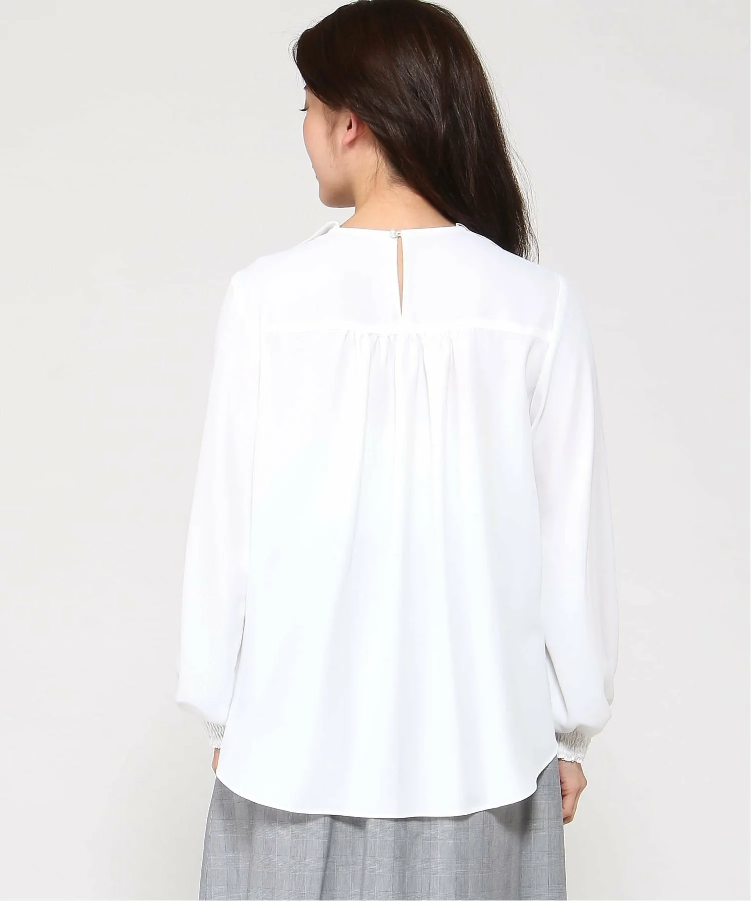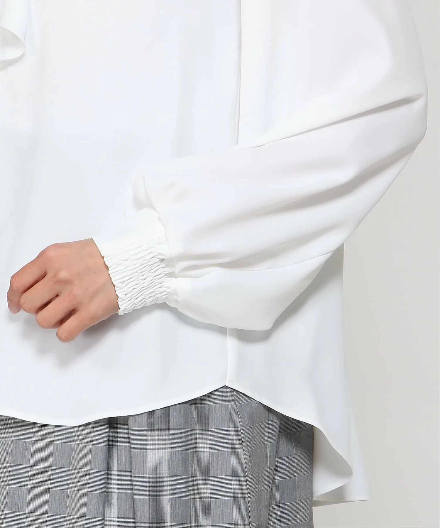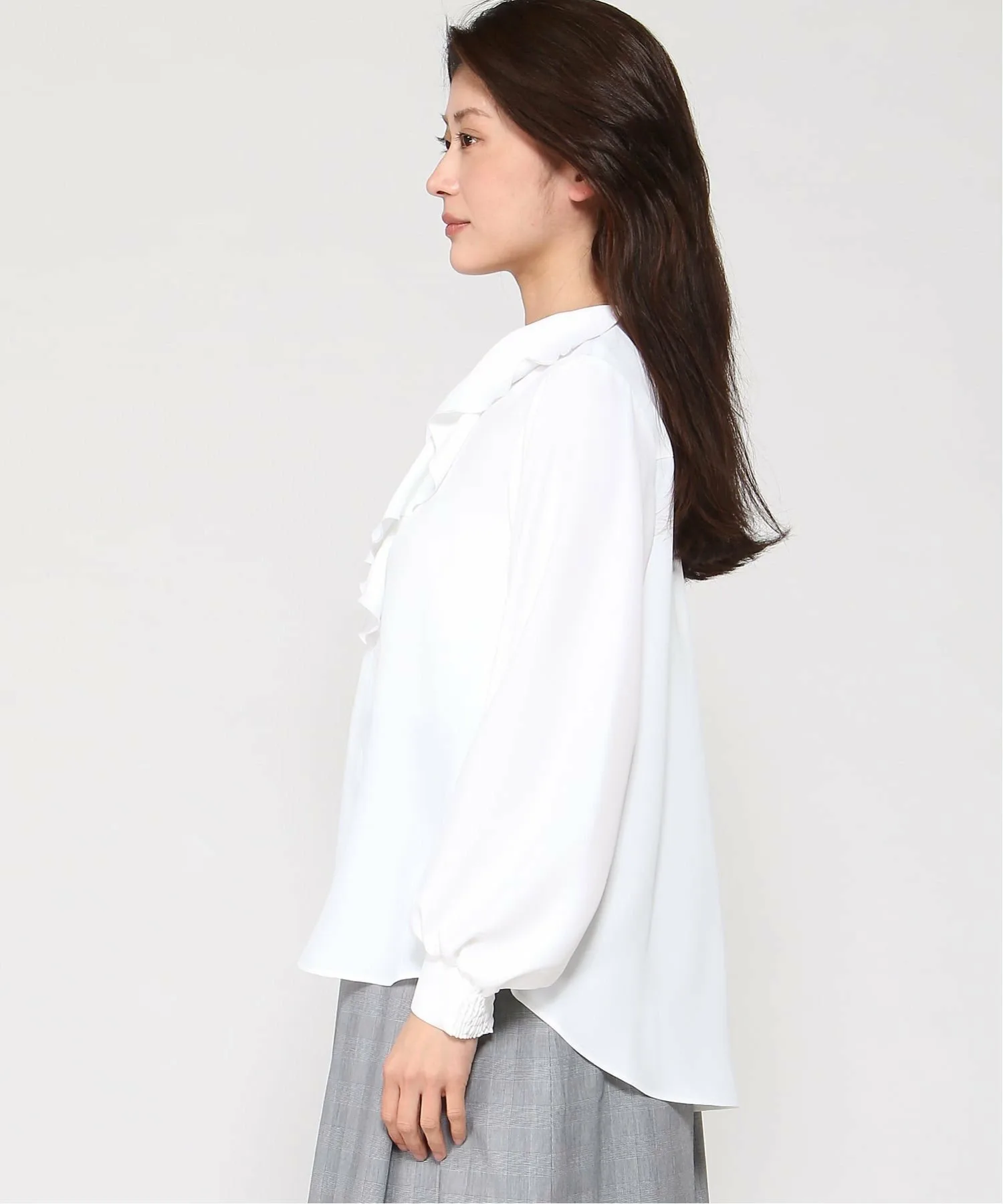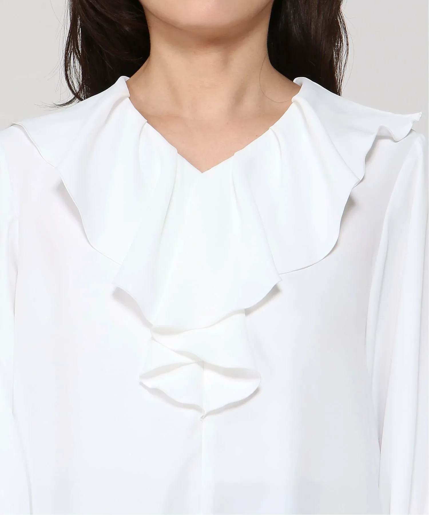 Элегантный силуэт, не акцентирующий внимание на линиях тела, а эта блузка с длинными рукавами и оборками имеет пышный вырез горловины.