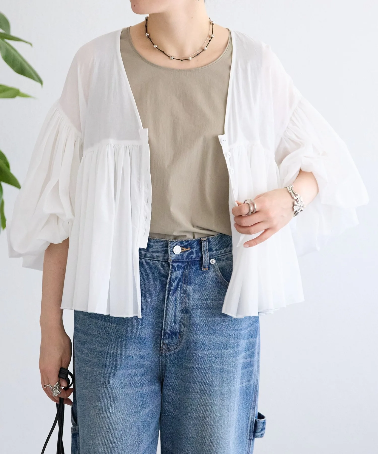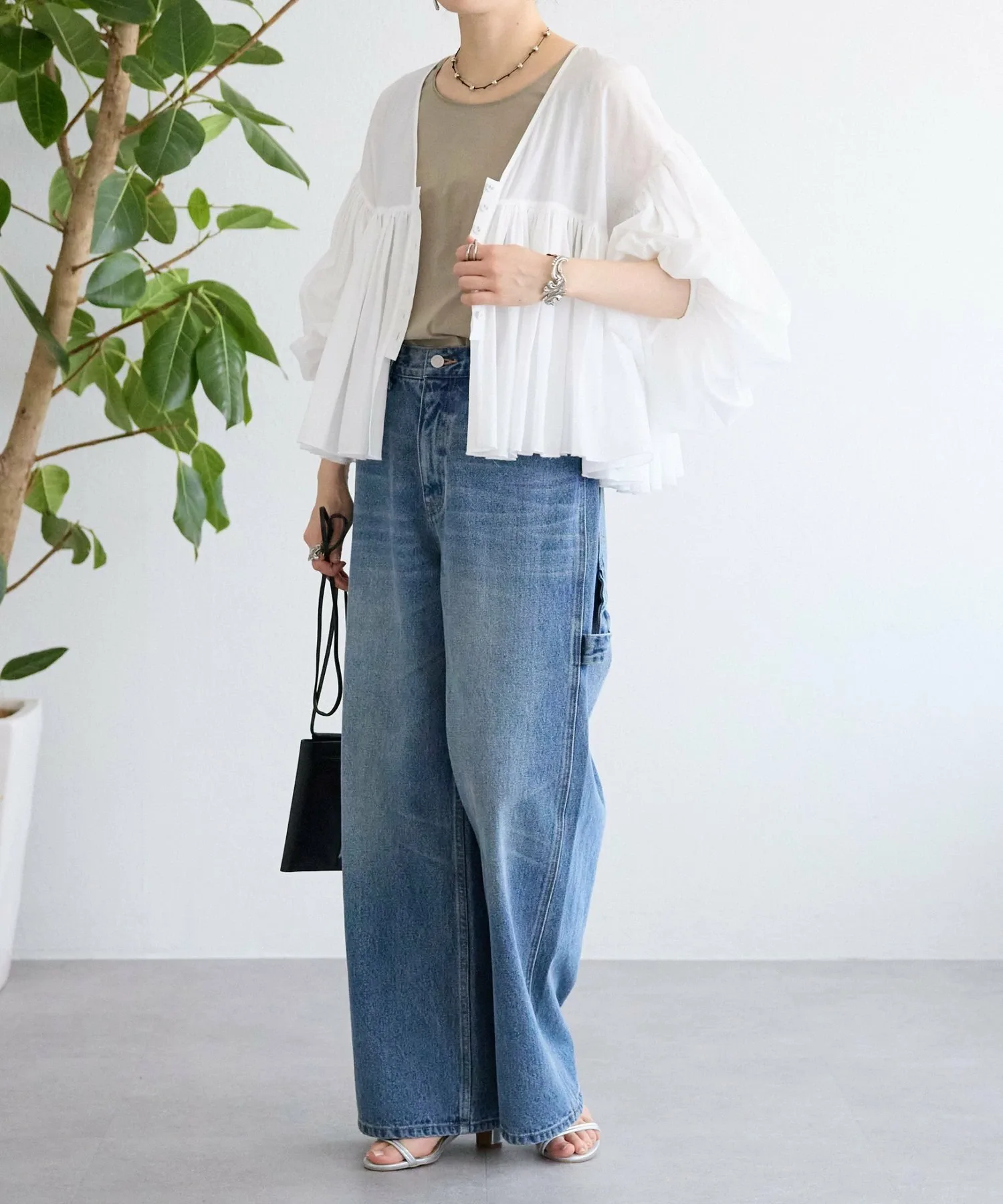Низ и проймы выполнены из косой бейки с необработанными краями для создания ненавязчивого акцента.