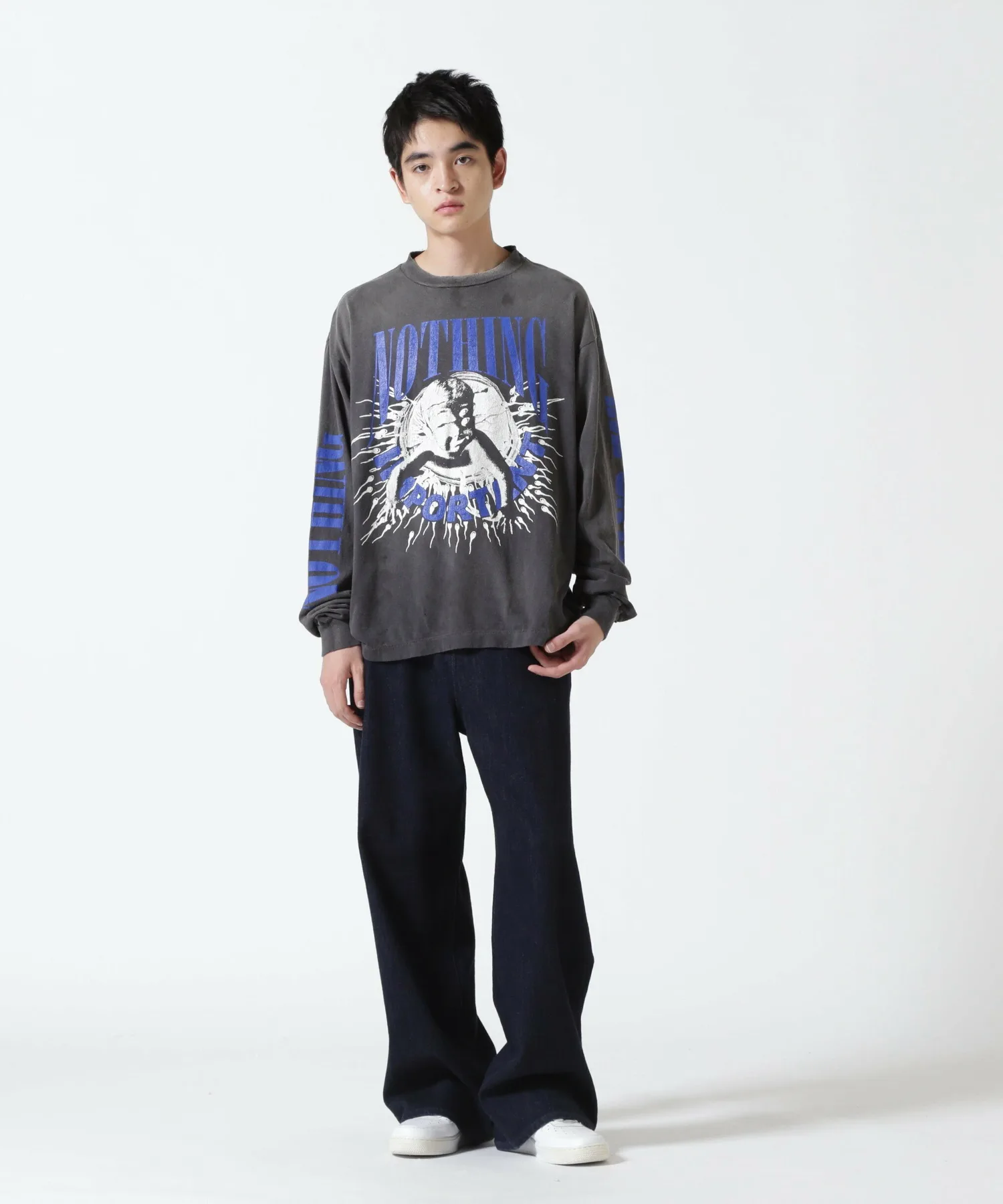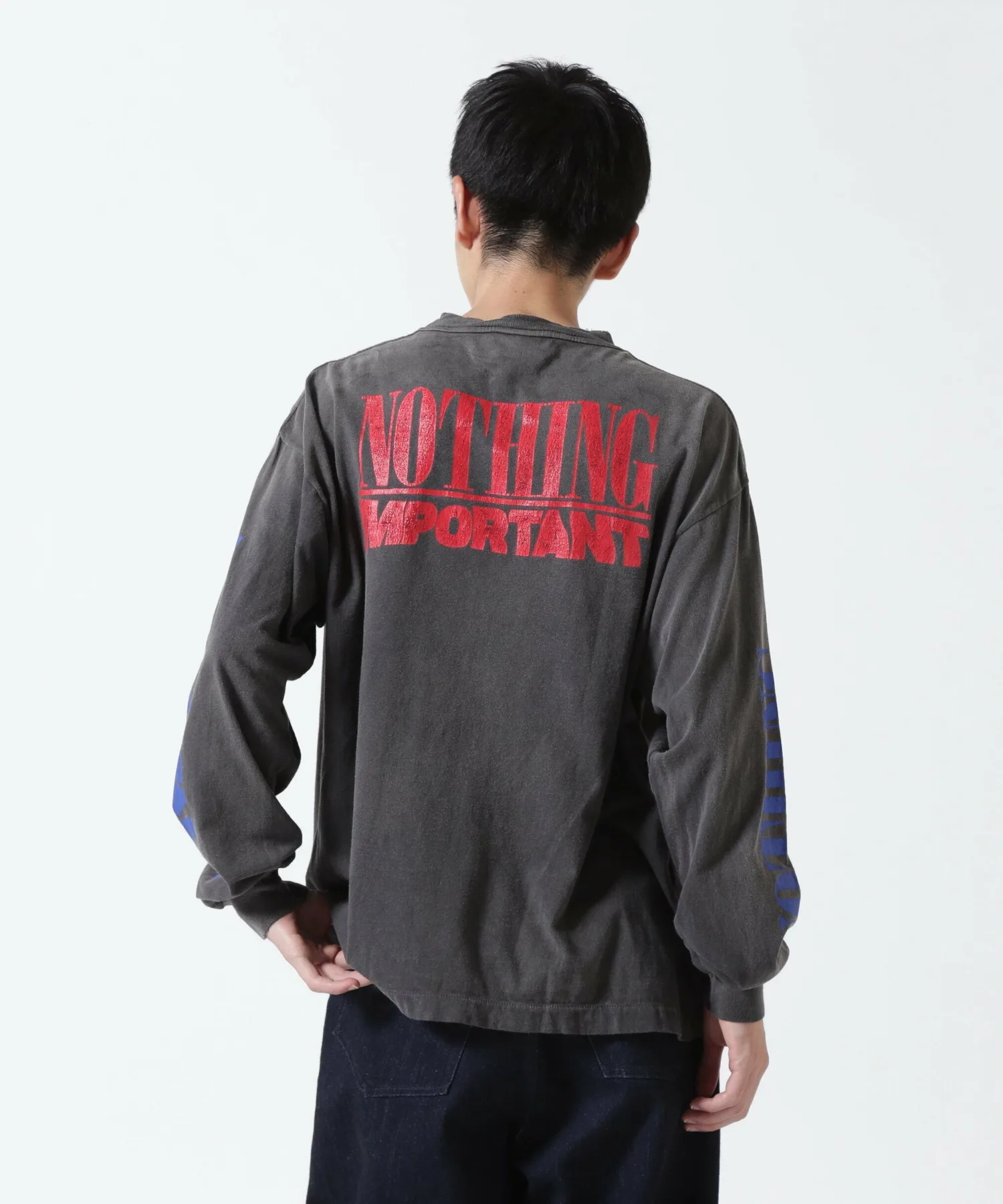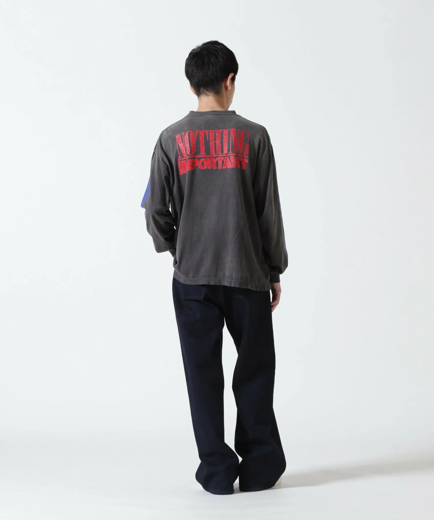 SAINT MICHAEL x KOUSUKE KAWAMURA (Kawamura Kosuke) / KK_LS Футболка / NOTHING IMP / Черная (SM-YS1-0000-C35) Совместная работа SAINT MICHAEL и графического дизайнера Косуке Кавамуры. На футболке спереди, сзади и на рукавах нанесена надпись шрифтом NOTHING IMPORTANT. Обратите внимание, что купоны для акционеров и другие купоны не могут быть использованы с этим товаром. Спасибо за понимание. Внимание: продукция SAINT MICHAEL изготавливается с использованием различных технологий. Возможны изменения цвета, неравномерная окраска и небольшие отверстия, но это считается особенностью продукта, а не дефектом. Пожалуйста, имейте в виду, что полученный вами товар может отличаться от изображений (цвет, износ и т. д.), иметь небольшие отверстия, повреждения, пятна или трещины в печати.