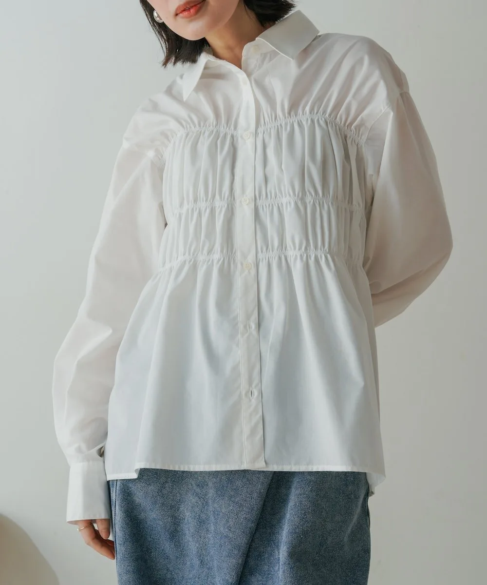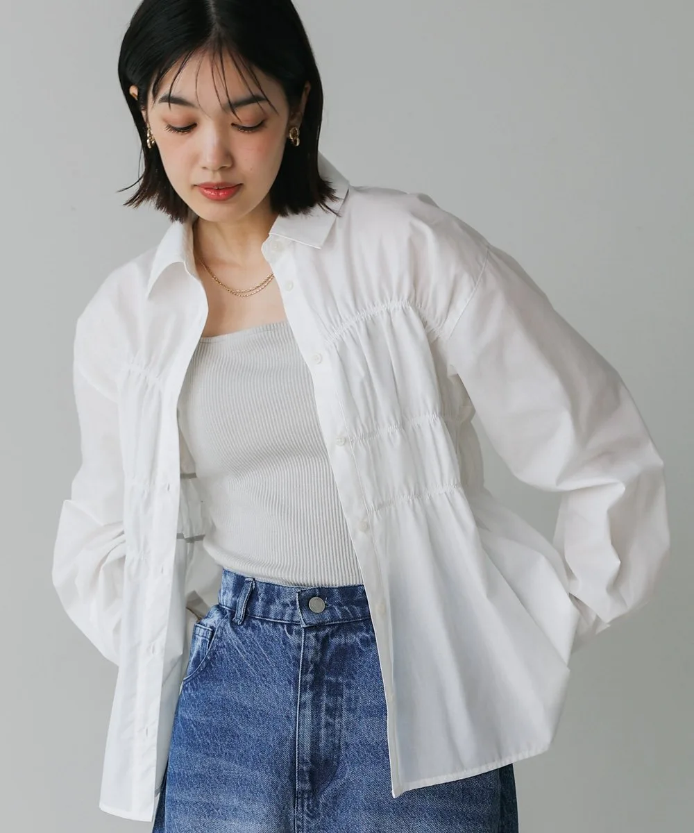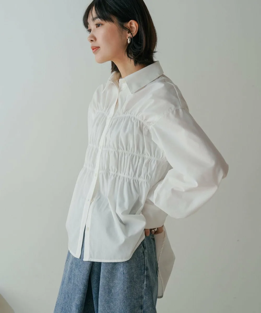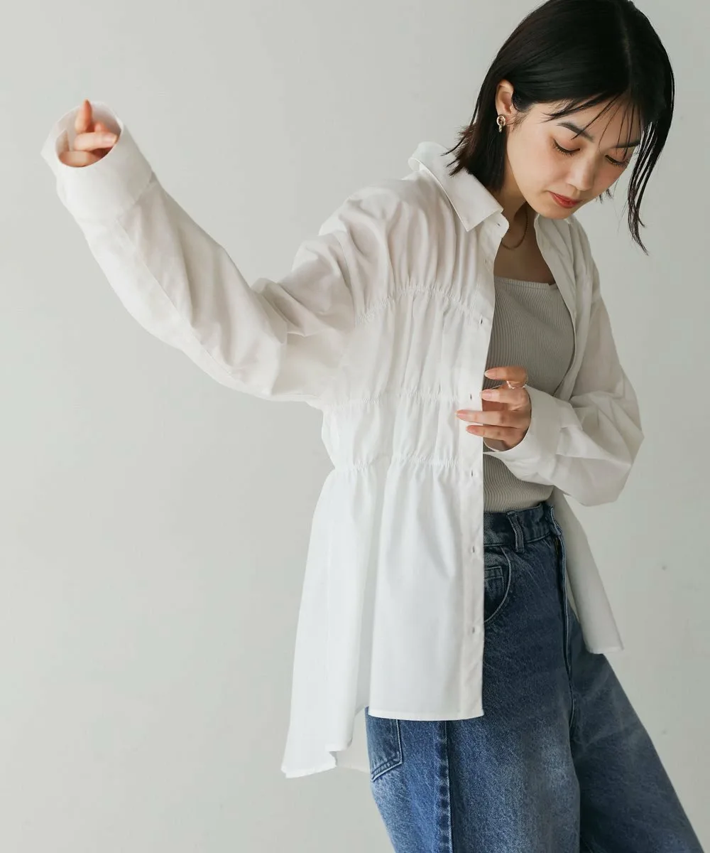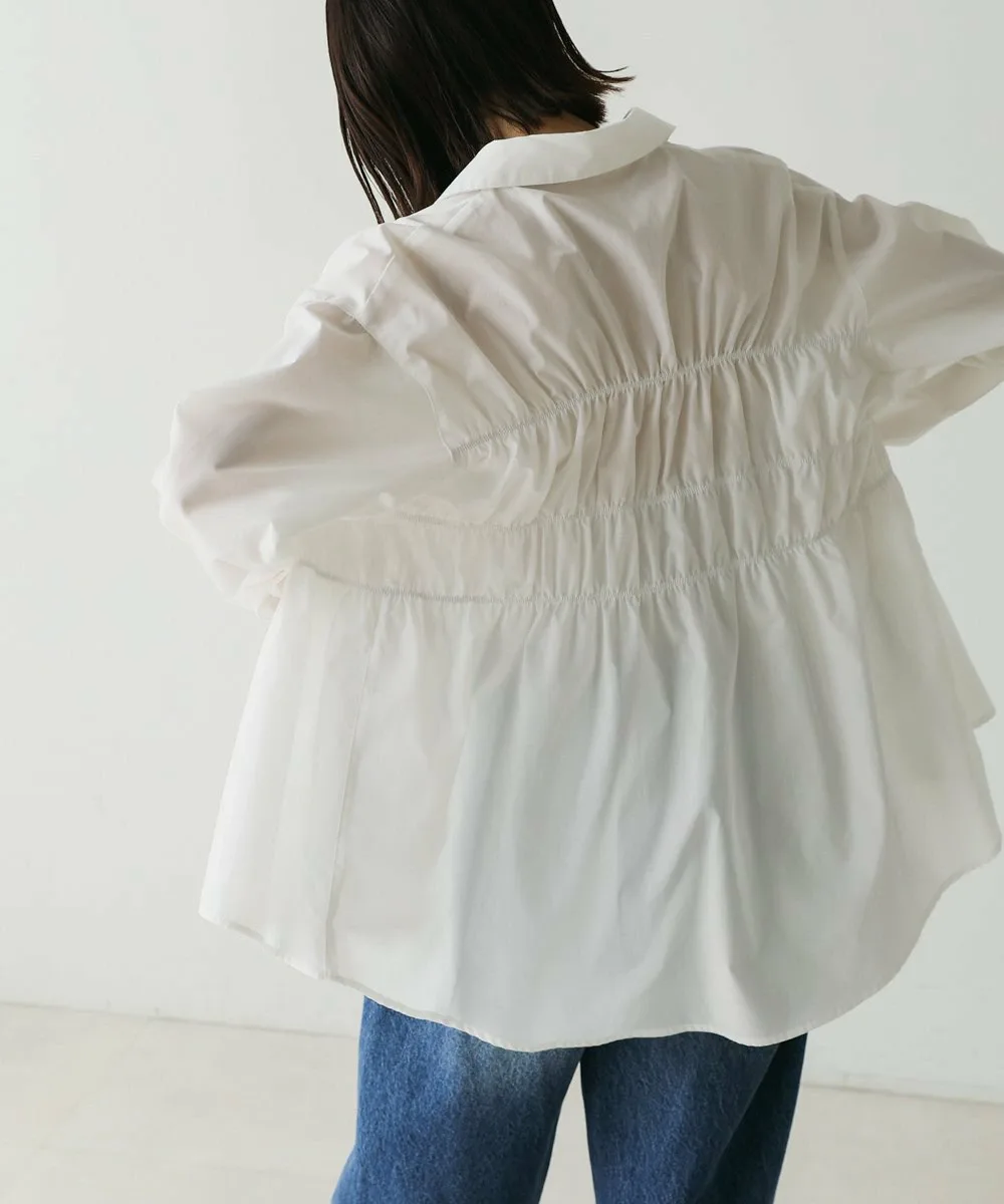 Модная рубашка-туника с присборенной спинкой! Спинка рубашки длиннее передней, что создает дизайн, который ненавязчиво прикрывает ягодицы. Изготовлена из плотной ткани, сборки на груди придают ей женственный вид, а воротник рубашки создает четкий образ. Также рекомендуется в качестве жакета в теплую погоду.