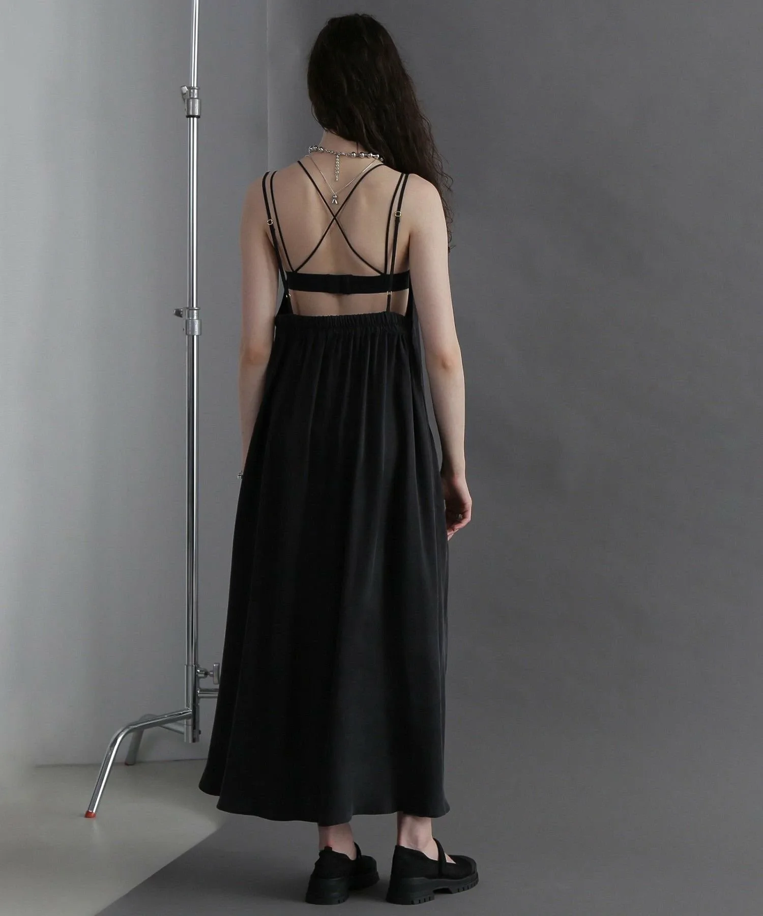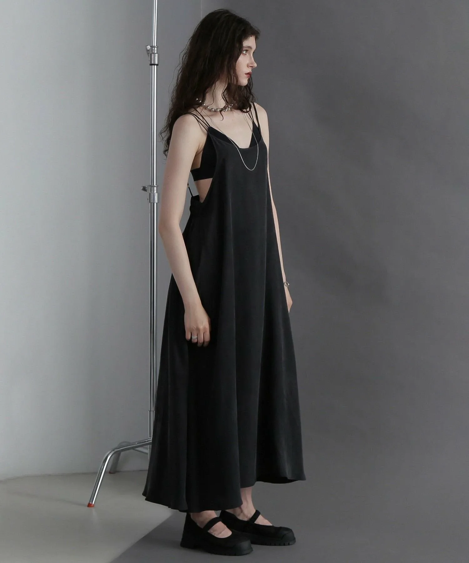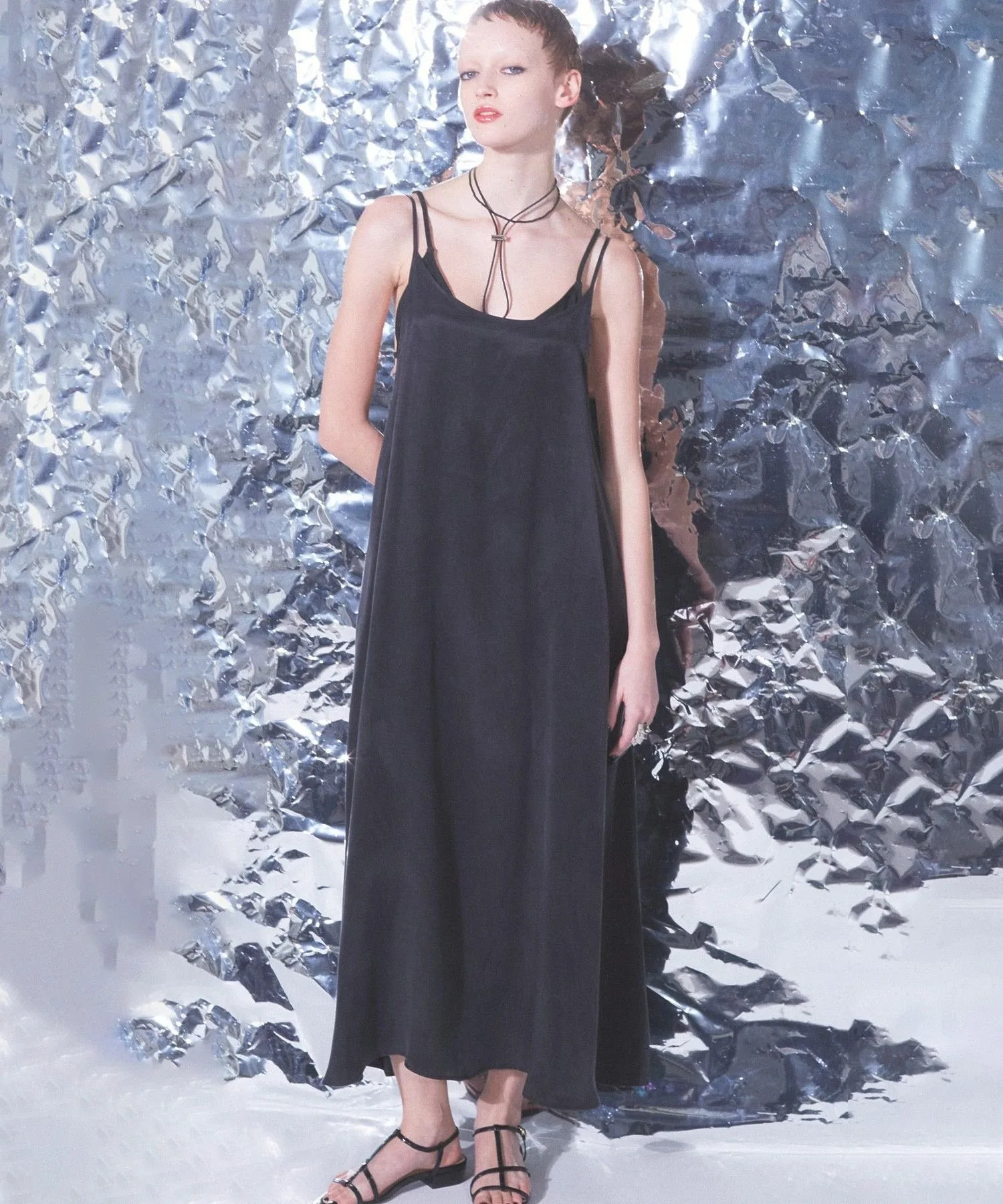 Это платье-комбинация изготовлено из целлюлозы, которая обладает гладкой, струящейся текстурой.