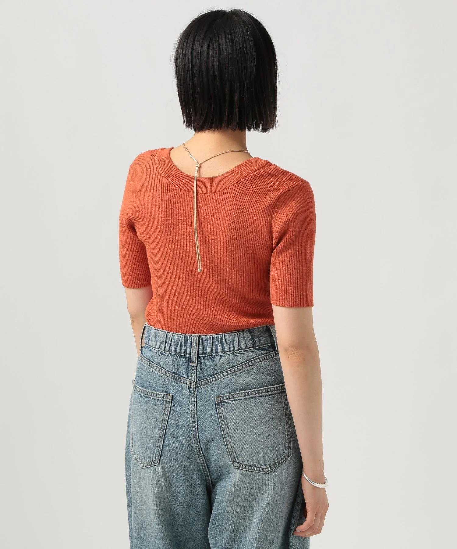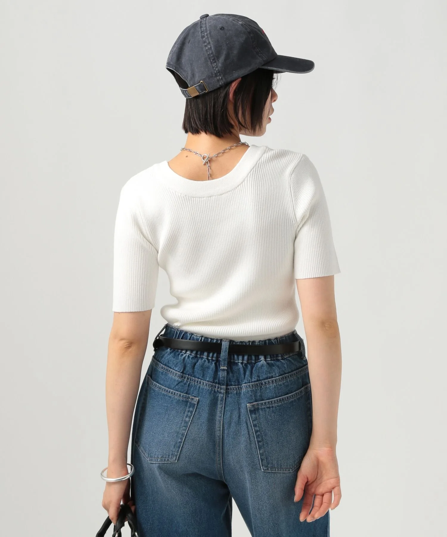 Вязаная футболка с коротким рукавом, которую можно носить как спереди, так и сзади★Рекомендуемые характеристики★