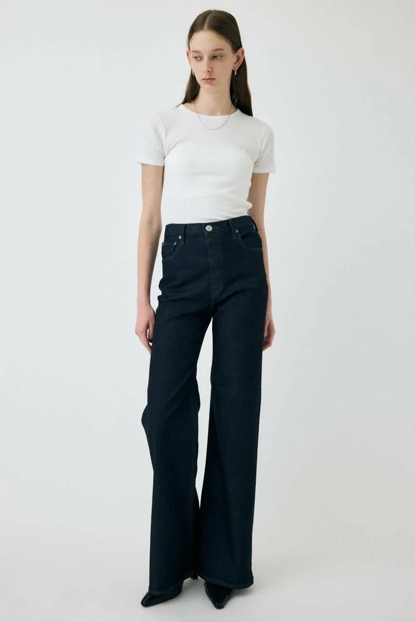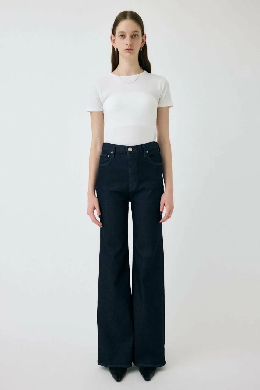 Этот совершенно новый тип джинсовой ткани, удлиняющей ноги, не подчеркивает фигуру, что делает его естественным выбором для тех, кто обычно предпочитает широкие силуэты, такие как прямые джинсы.