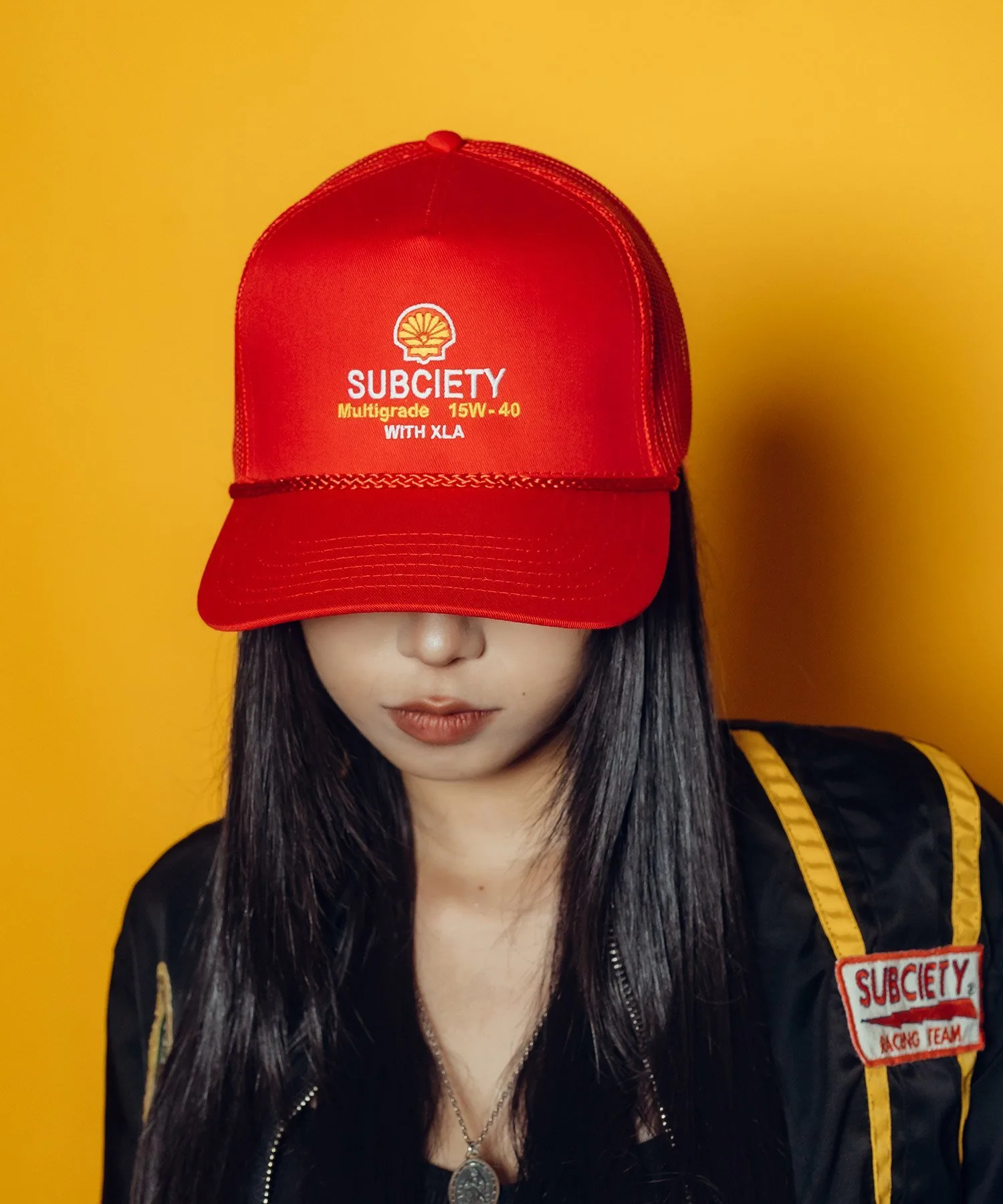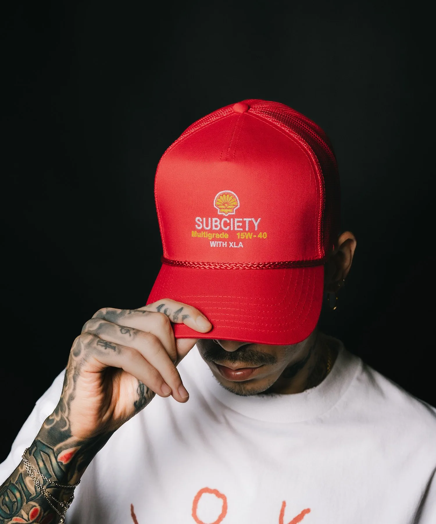 На передней части вышито изображение вымышленной нефтяной марки и марки часов.