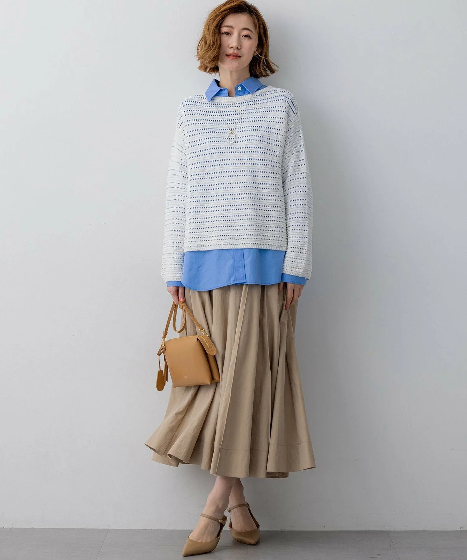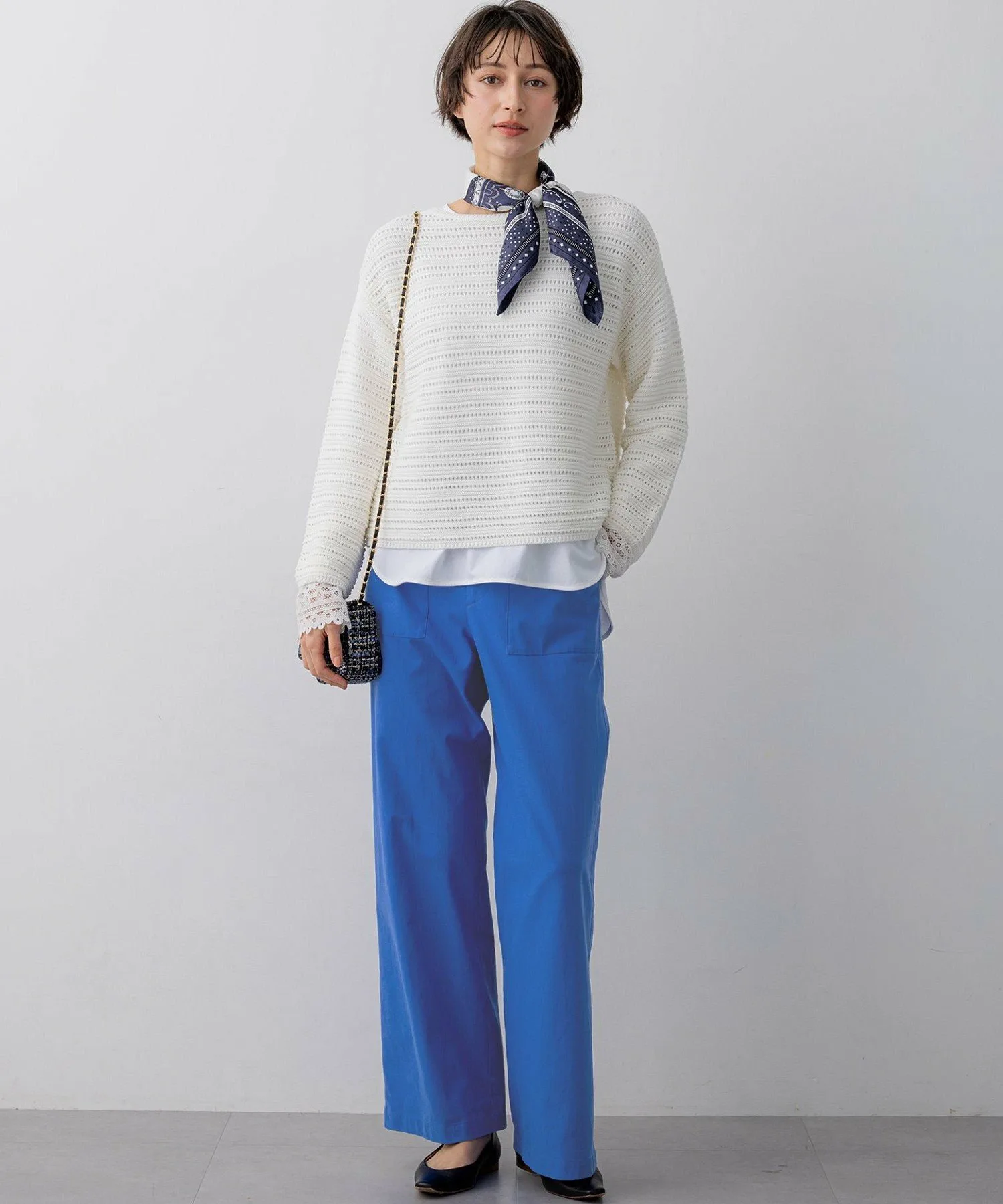 Этот трикотажный свитер с вырезом-лодочкой имеет легкий трикотажный узор, подчеркнутый ажурными элементами и естественным блеском. Изысканный крой обеспечивает достаточно свободы движений для создания обтекаемого силуэта, формируя утонченный, элегантный повседневный стиль. Носите его отдельно или сочетайте с рубашкой или топом для создания изысканного, утонченного образа. Доступен в четырех цветах: чистый белый (#001), элегантный и комфортный бежевый (#033), изысканный темно-синий (#075) и светло-желтый (#042) для более яркого образа.