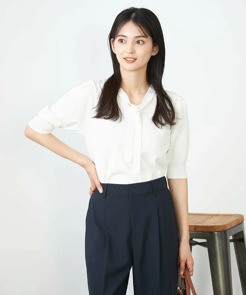 - Милый и элегантный компактный трикотаж с бантом и складками на плечах.