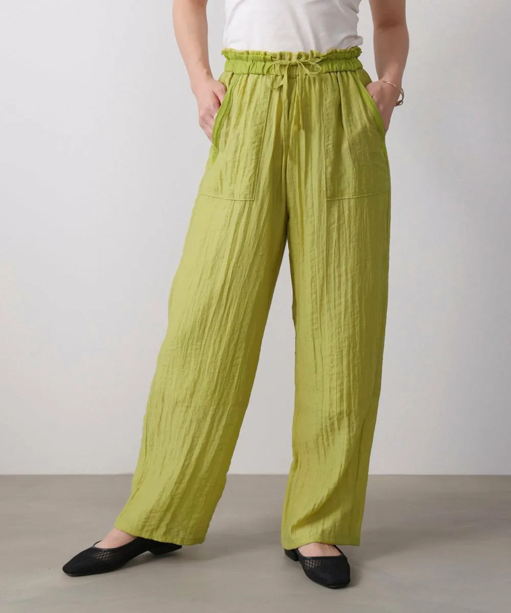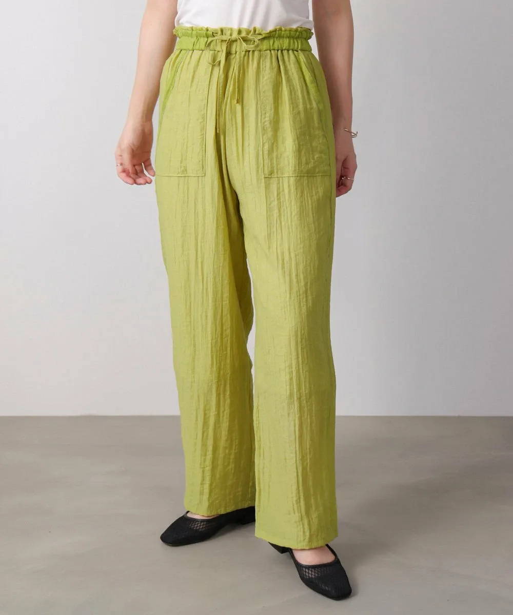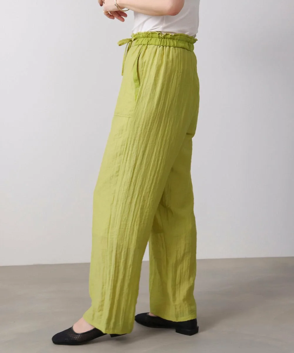 Эти полуширокие брюки изготовлены из материала, похожего на лен, с натуральной текстурой, что создает ощущение расслабленности. Они не расклешены, что придает им аккуратный, обтекаемый вид. Модель «пекарь» с накладными карманами с обеих сторон идеально подходит для зрелого, повседневного стиля. Пояс имеет эластичный шнурок, а умеренная оборка сверху добавляет женственности. Они имеют легкую подкладку.