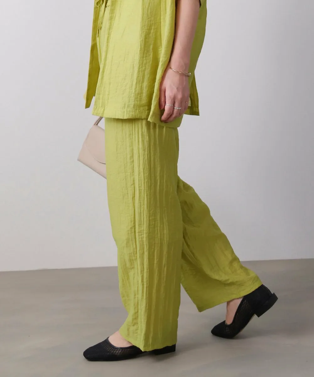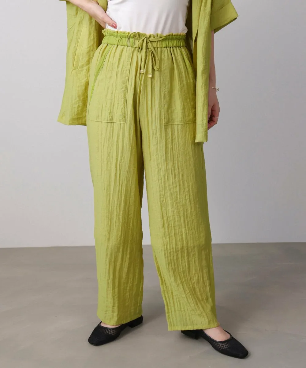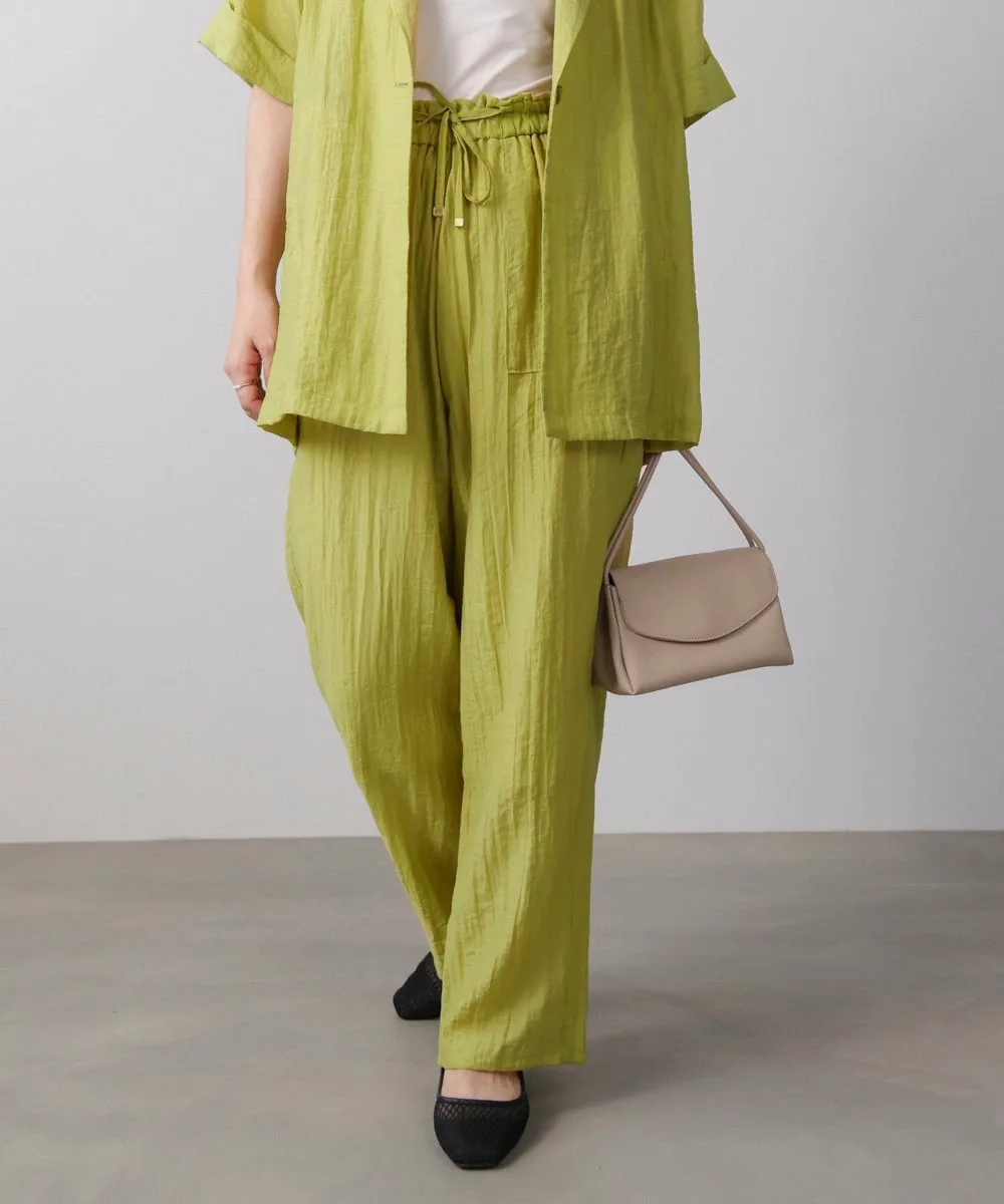Эти полуширокие брюки изготовлены из материала, похожего на лен, с натуральной текстурой, что создает ощущение расслабленности. Они не расклешены, что придает им аккуратный, обтекаемый вид. Модель «пекарь» с накладными карманами с обеих сторон идеально подходит для зрелого, повседневного стиля. Пояс имеет эластичный шнурок, а умеренная оборка сверху добавляет женственности. Они имеют легкую подкладку.
