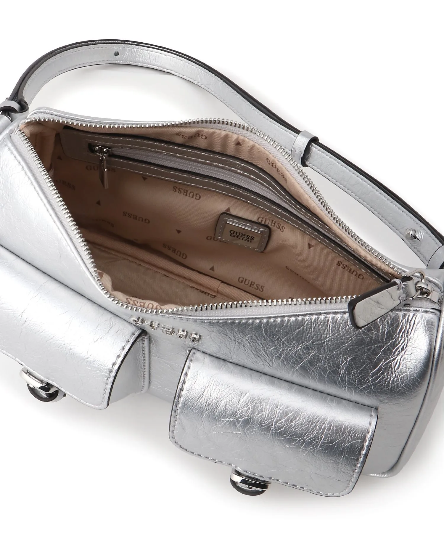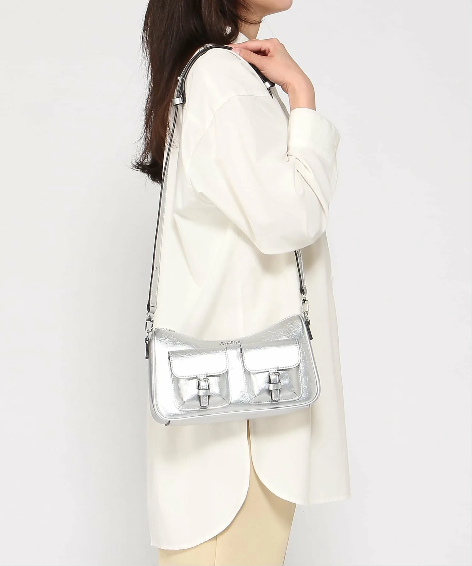 Эта сумка через плечо с привлекательной металлической текстурой — эффектный аксессуар, излучающий современный стиль.