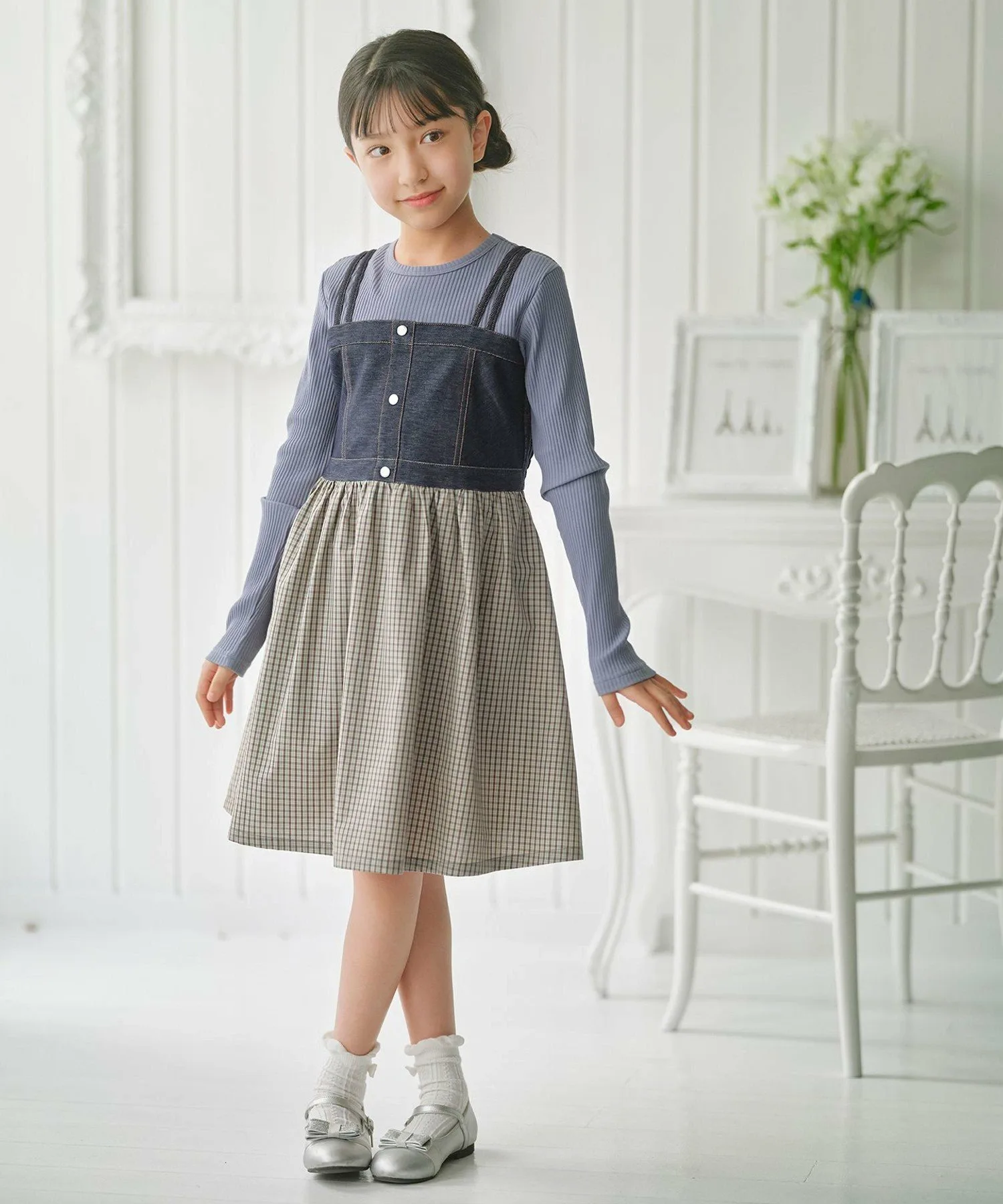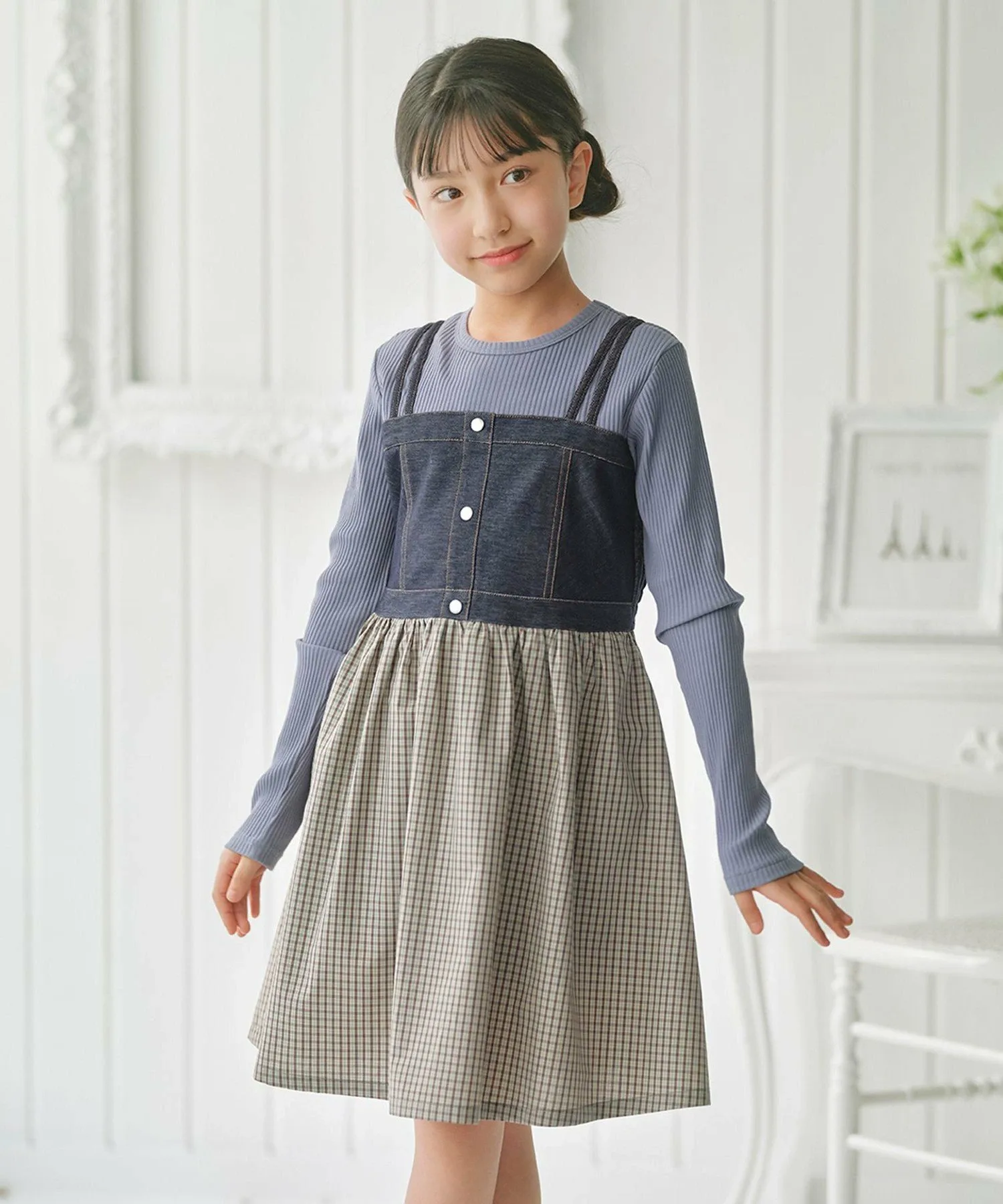 Дизайн: Это платье сочетает в себе ребристый верх с джинсовым корсетом и клетчатой юбкой, позволяя создать стильный многослойный образ всего из одной вещи.