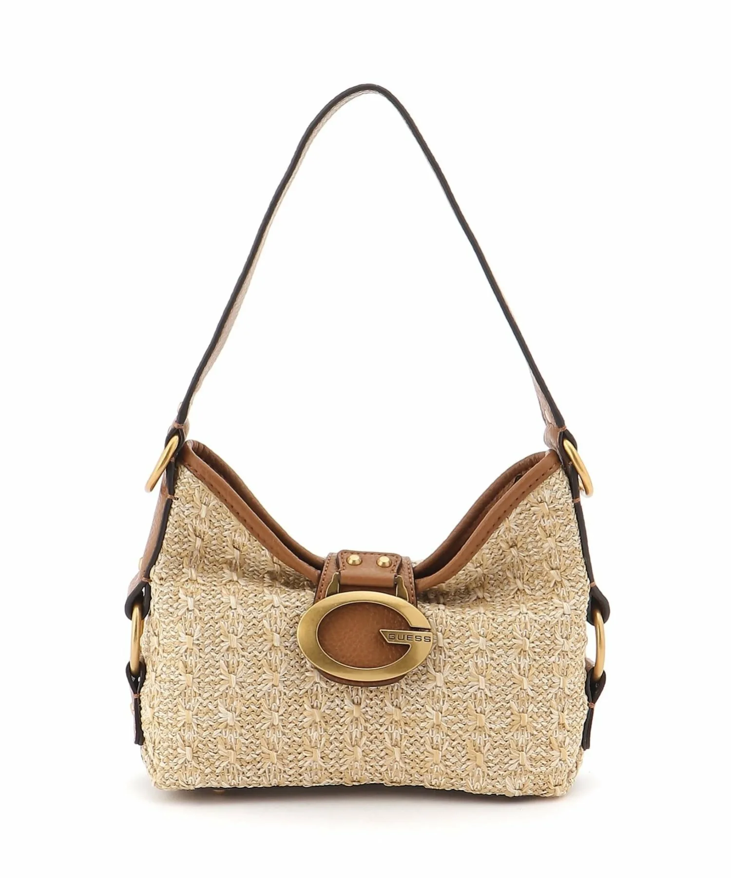 Миниатюрная сумка через плечо с золотистыми металлическими акцентами, идеально облегающая фигуру.