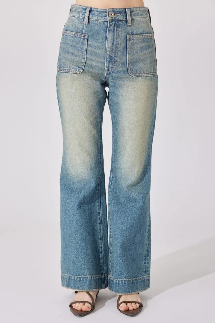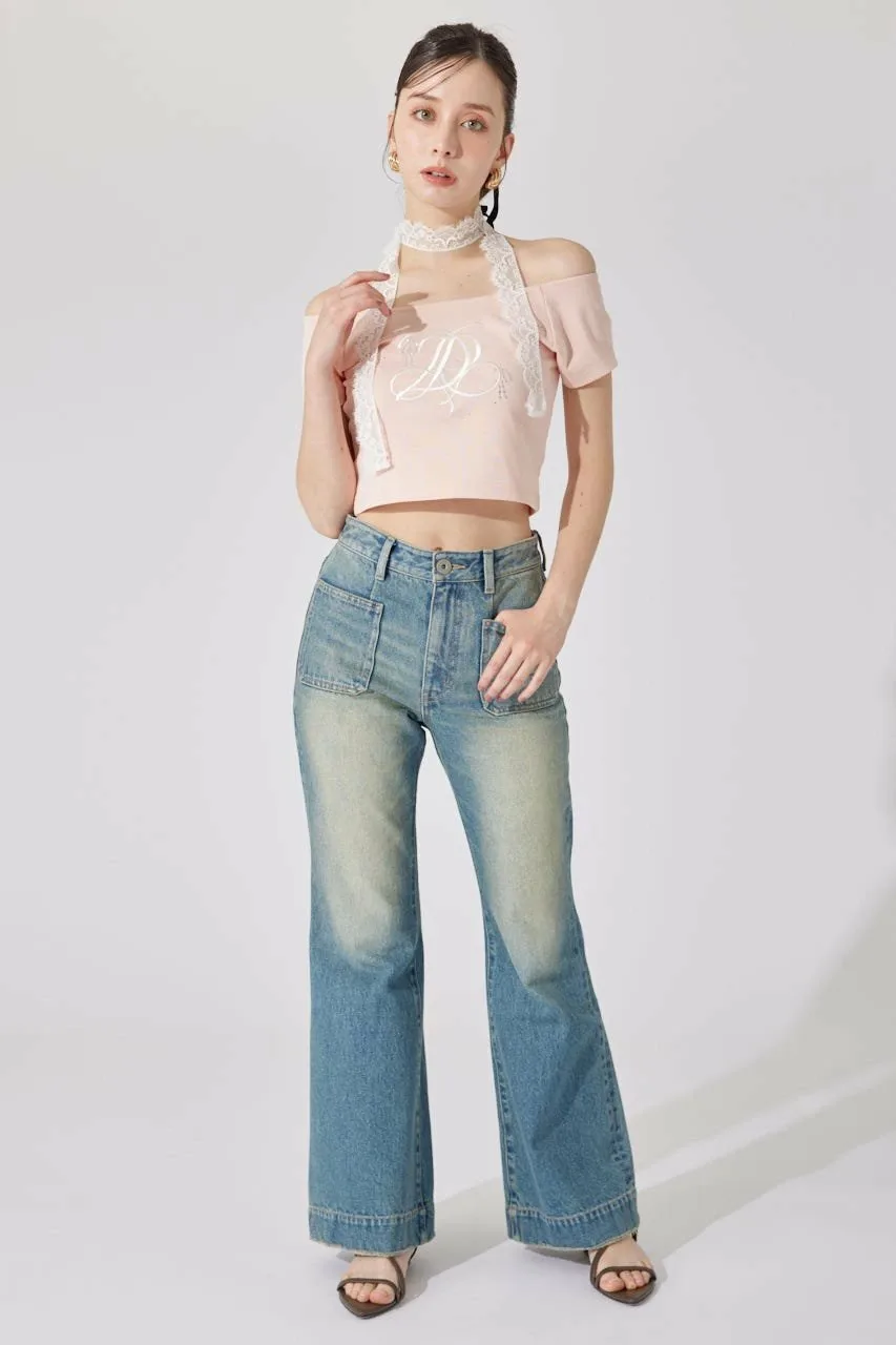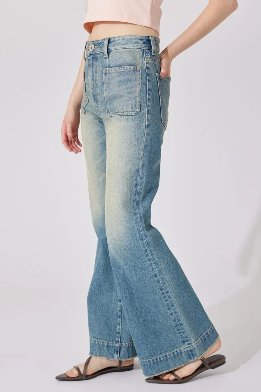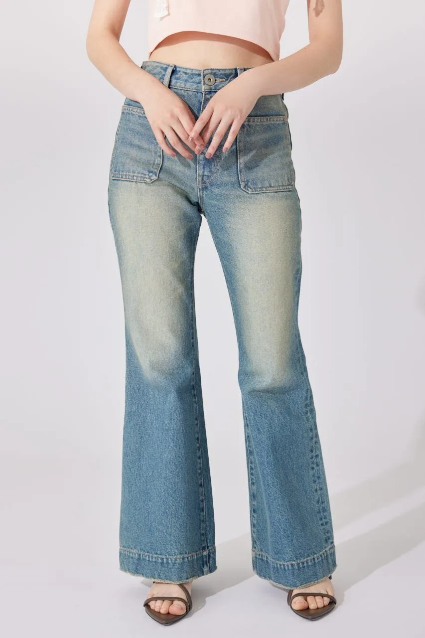 Эти джинсы имеют привлекательный силуэт, плавно расширяющийся от колена до низа.