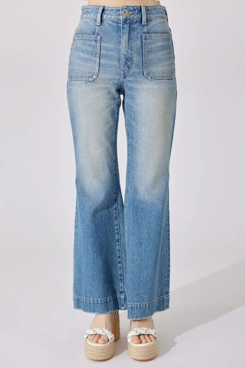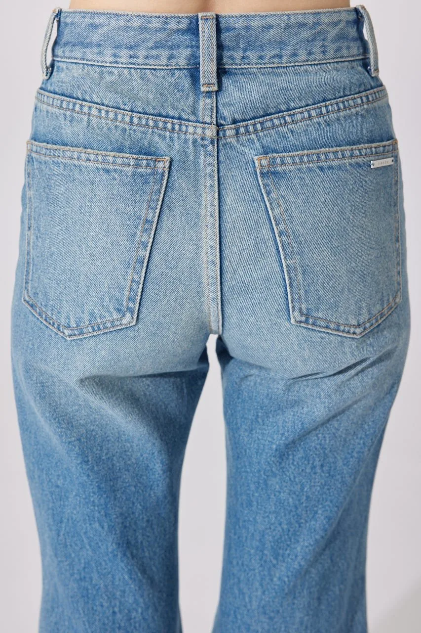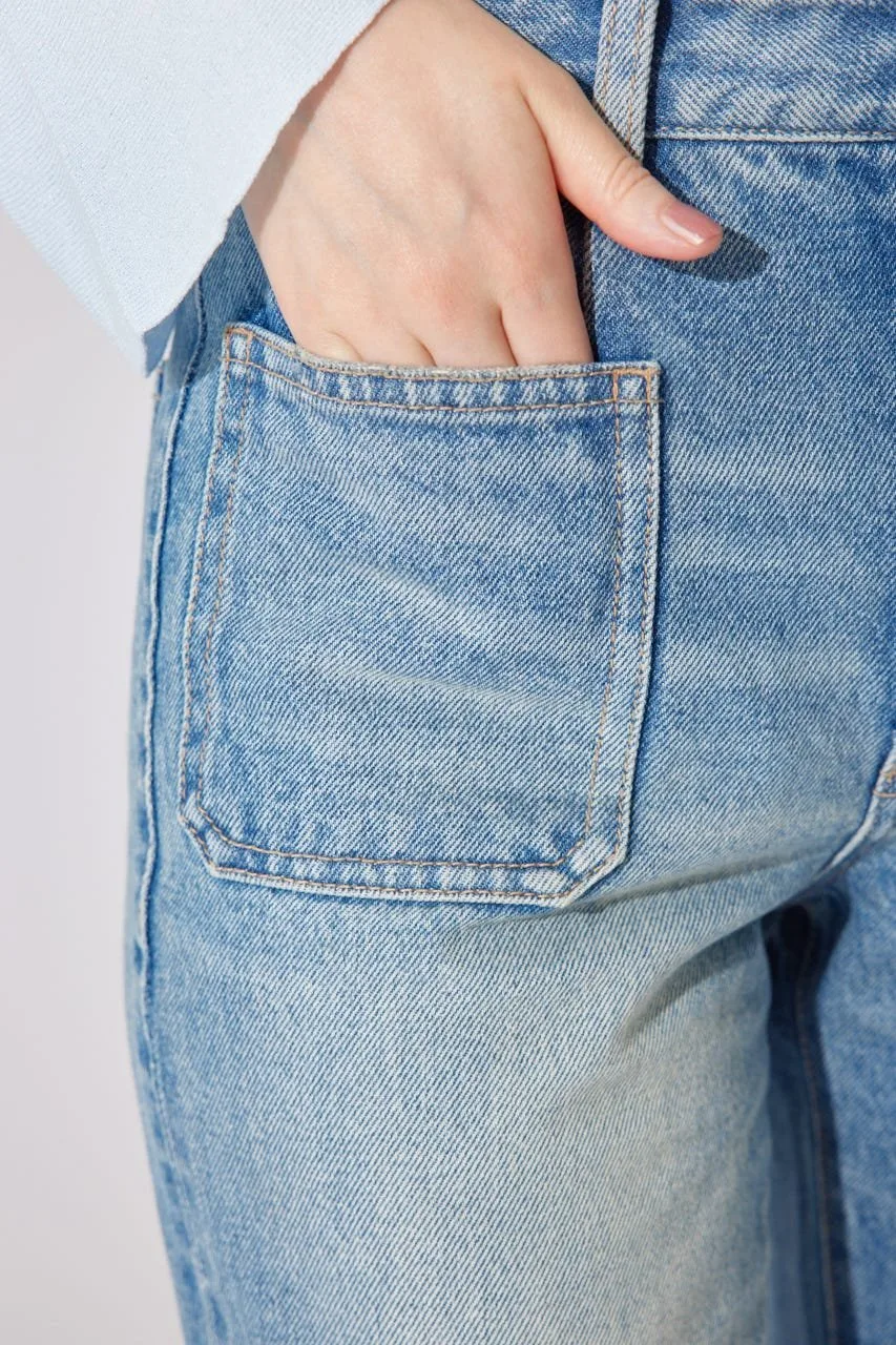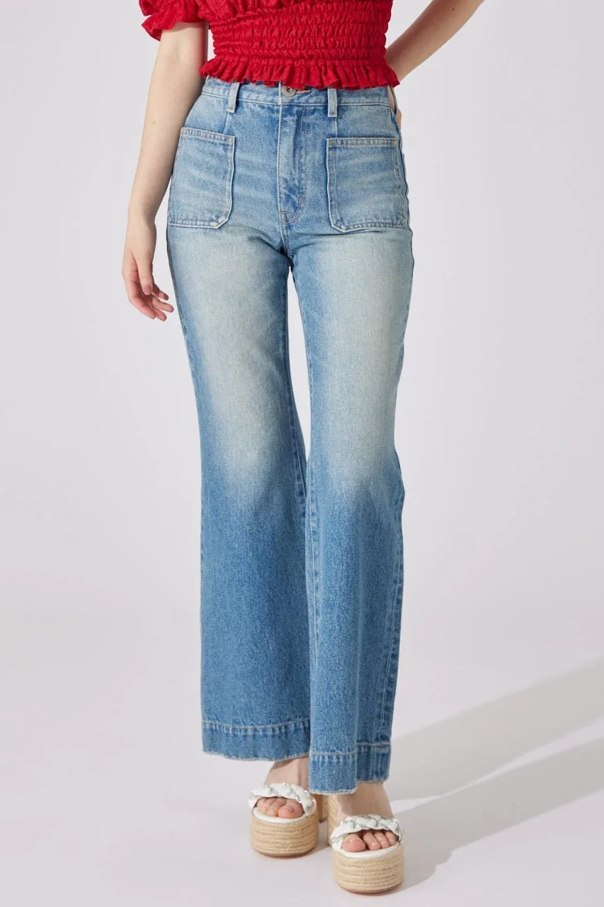 Эти джинсы имеют привлекательный силуэт, плавно расширяющийся от колена до низа.