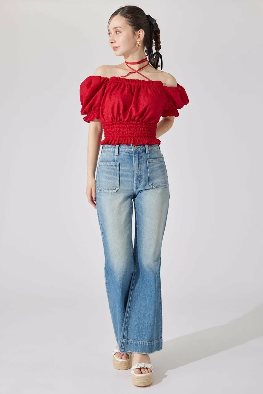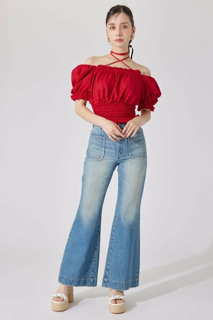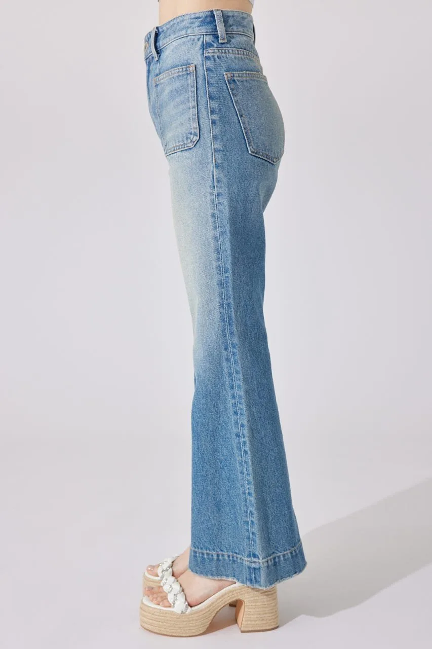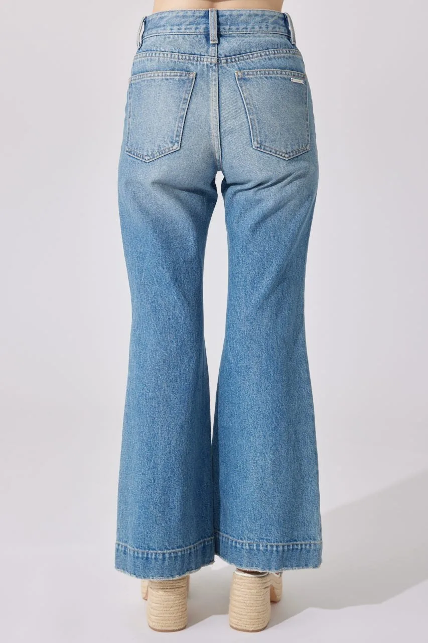 Эти джинсы имеют привлекательный силуэт, плавно расширяющийся от колена до низа.