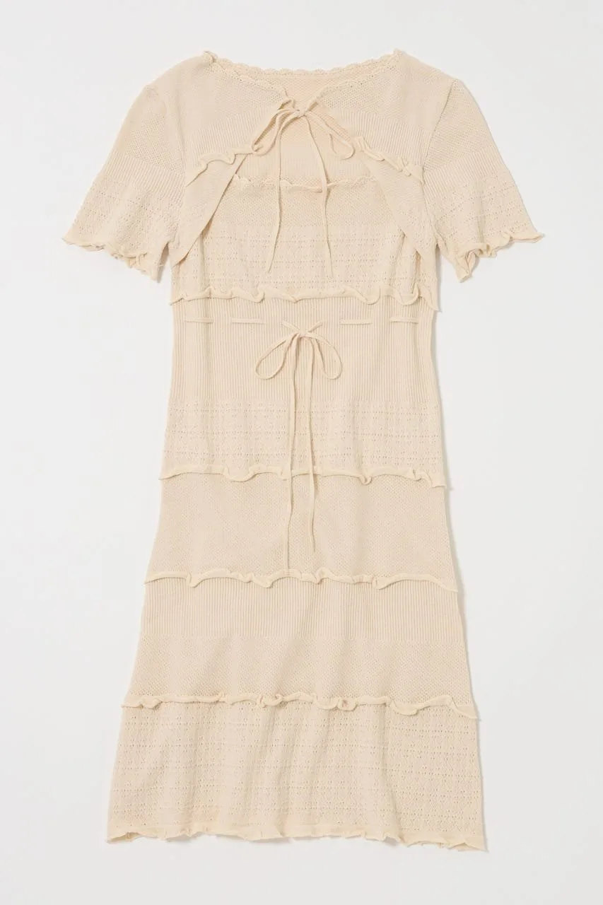 Мини-платье из трикотажа с бантом/Вязаное мини-платье с бантом