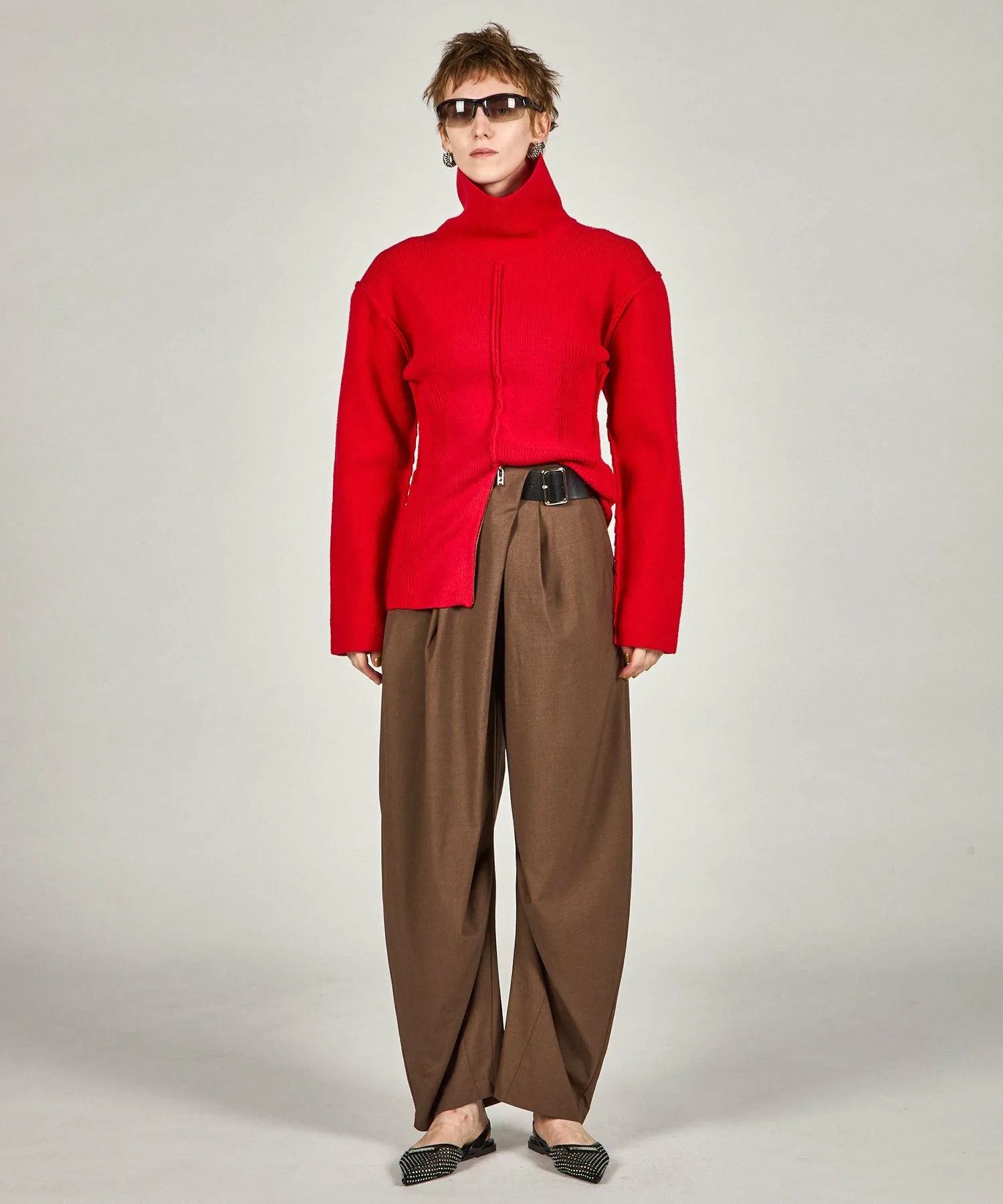 Расстегивание молнии по низу спереди и разрез придают ей расслабленный вид, не создавая ощущения тяжести.