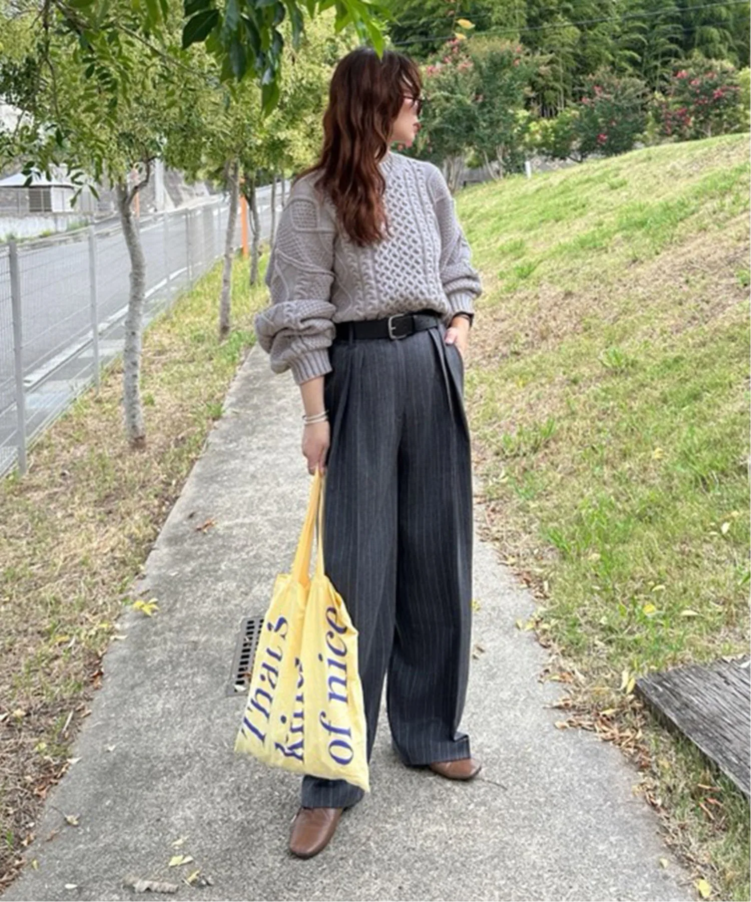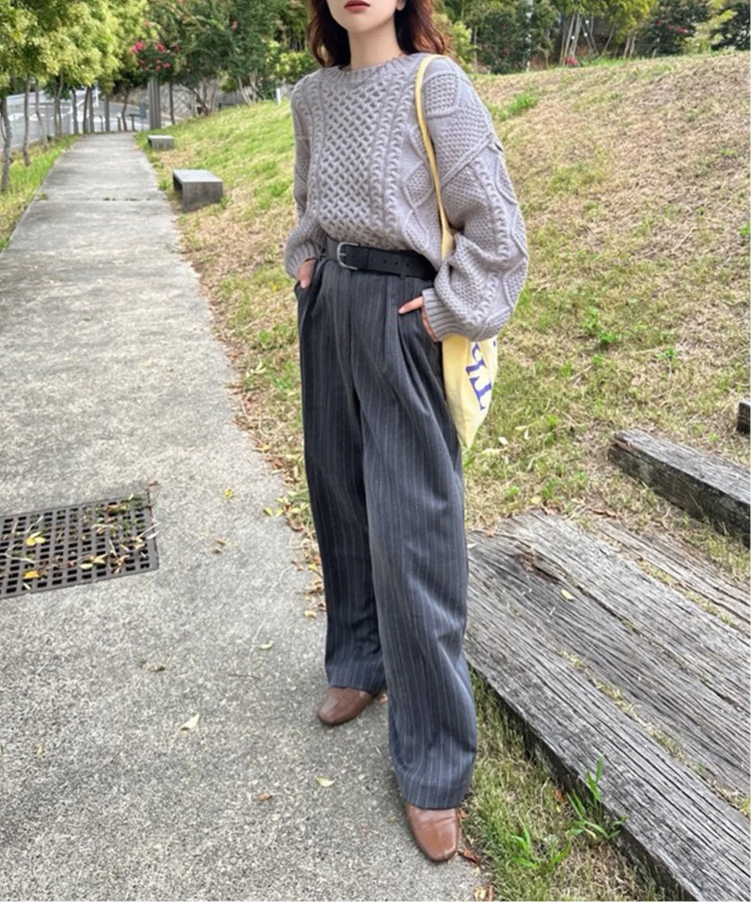 Добавьте непринужденности, сочетая с свободным трикотажным свитером для повседневного образа, идеально подходящего для прогулки.