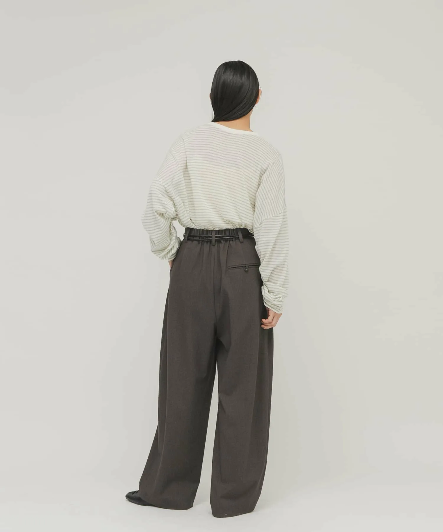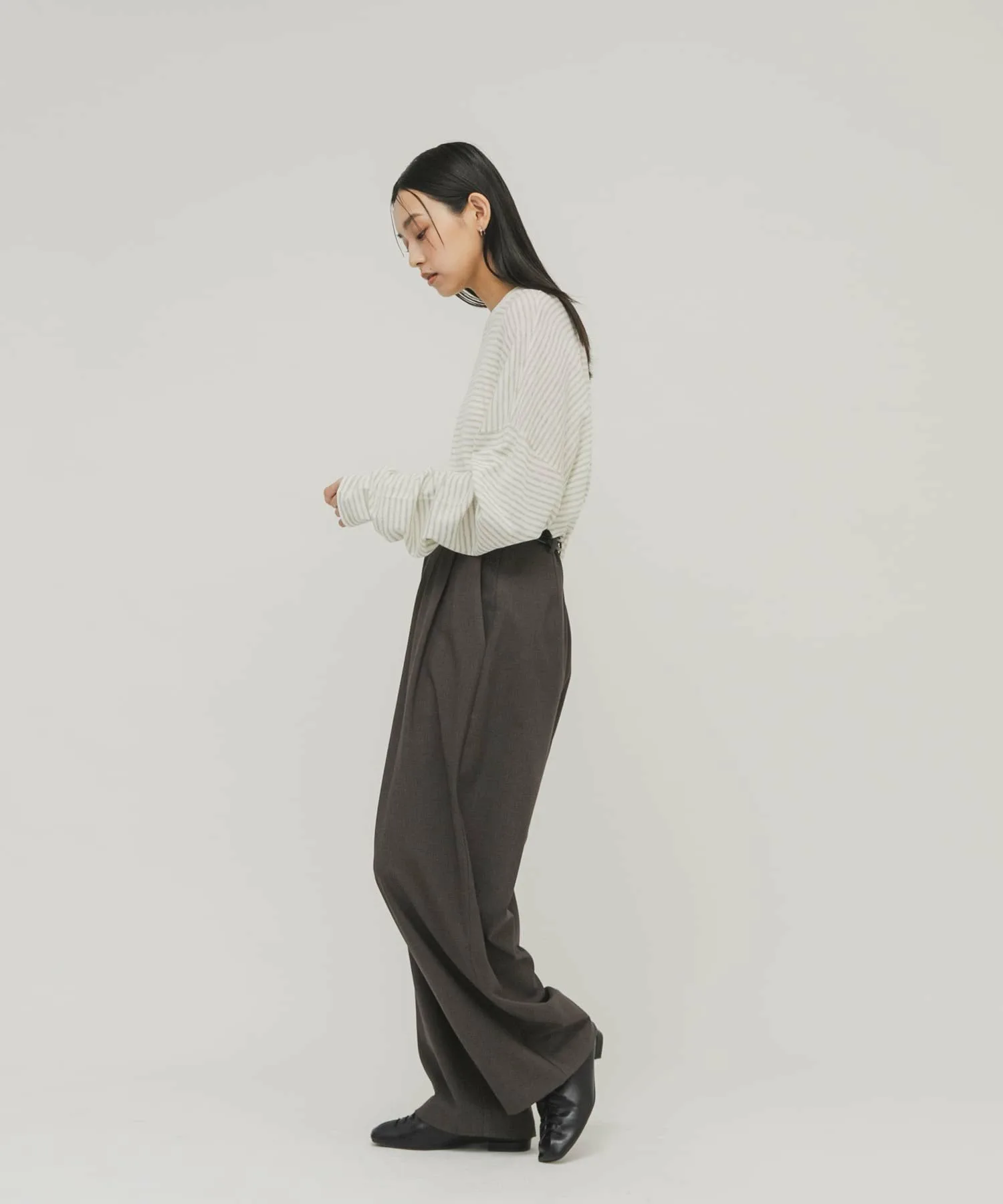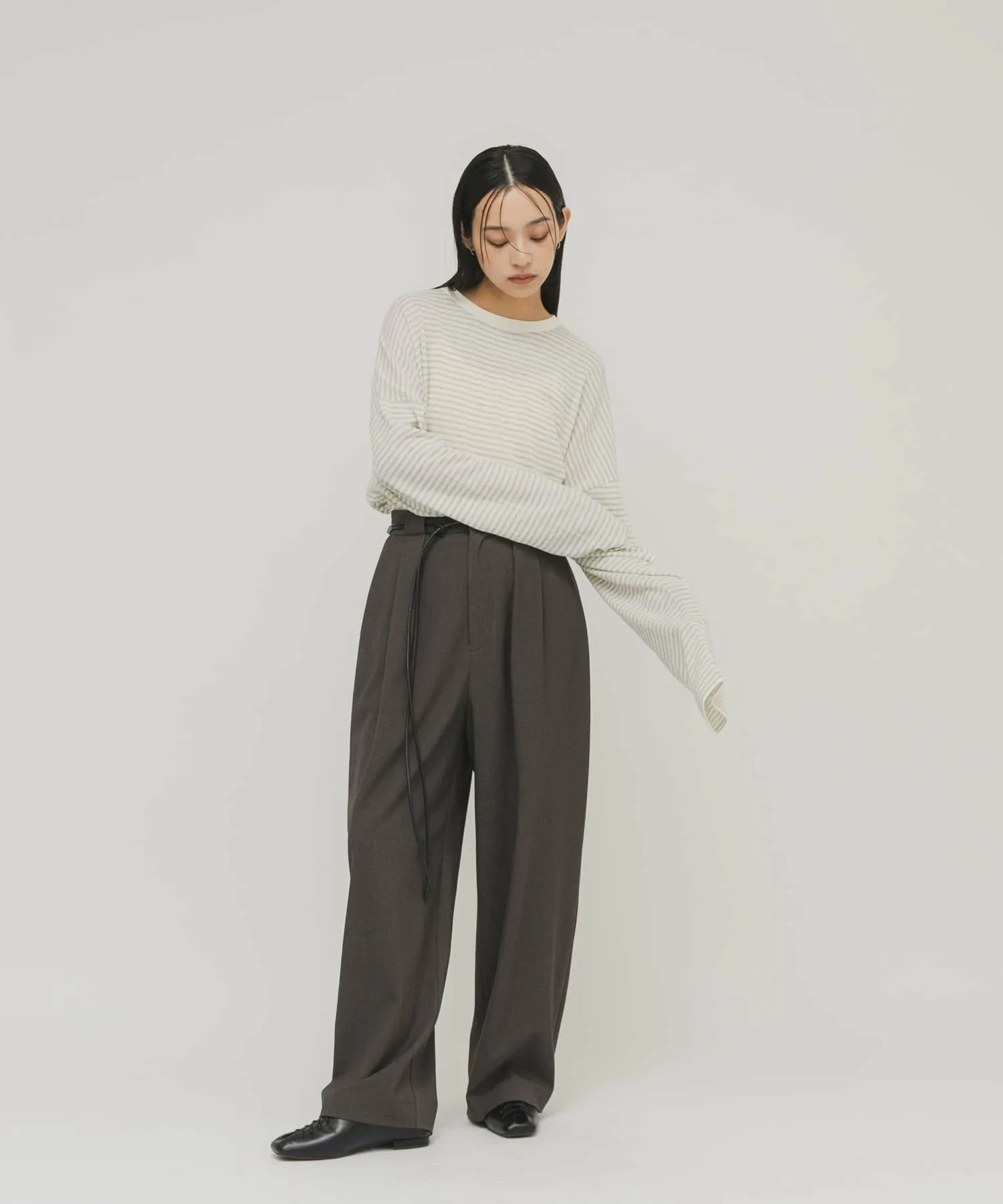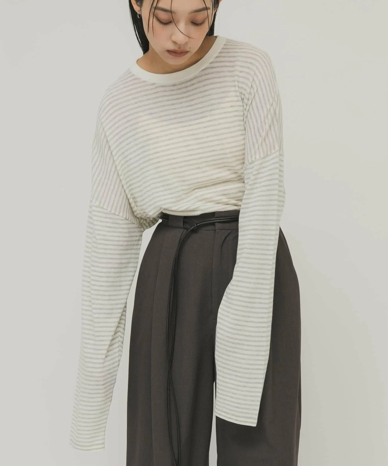 Этот полосатый топ имеет свободный, мужественный силуэт и удобен в ношении. Немного удлиненная длина и рукава создают расслабленный образ. Прозрачный материал и оригинальная многоцветная окантовка также являются ключевыми особенностями. Он хорошо сочетается с любыми брюками и идеально подходит в качестве нижнего слоя под куртку.