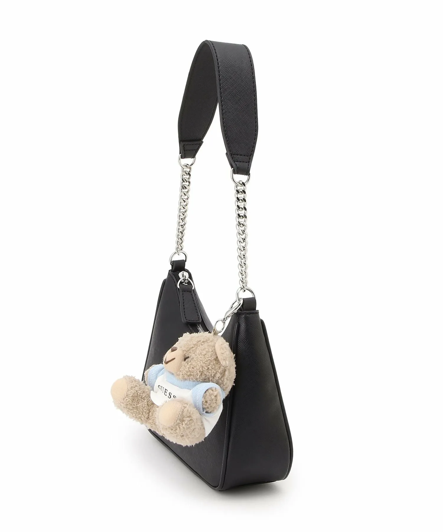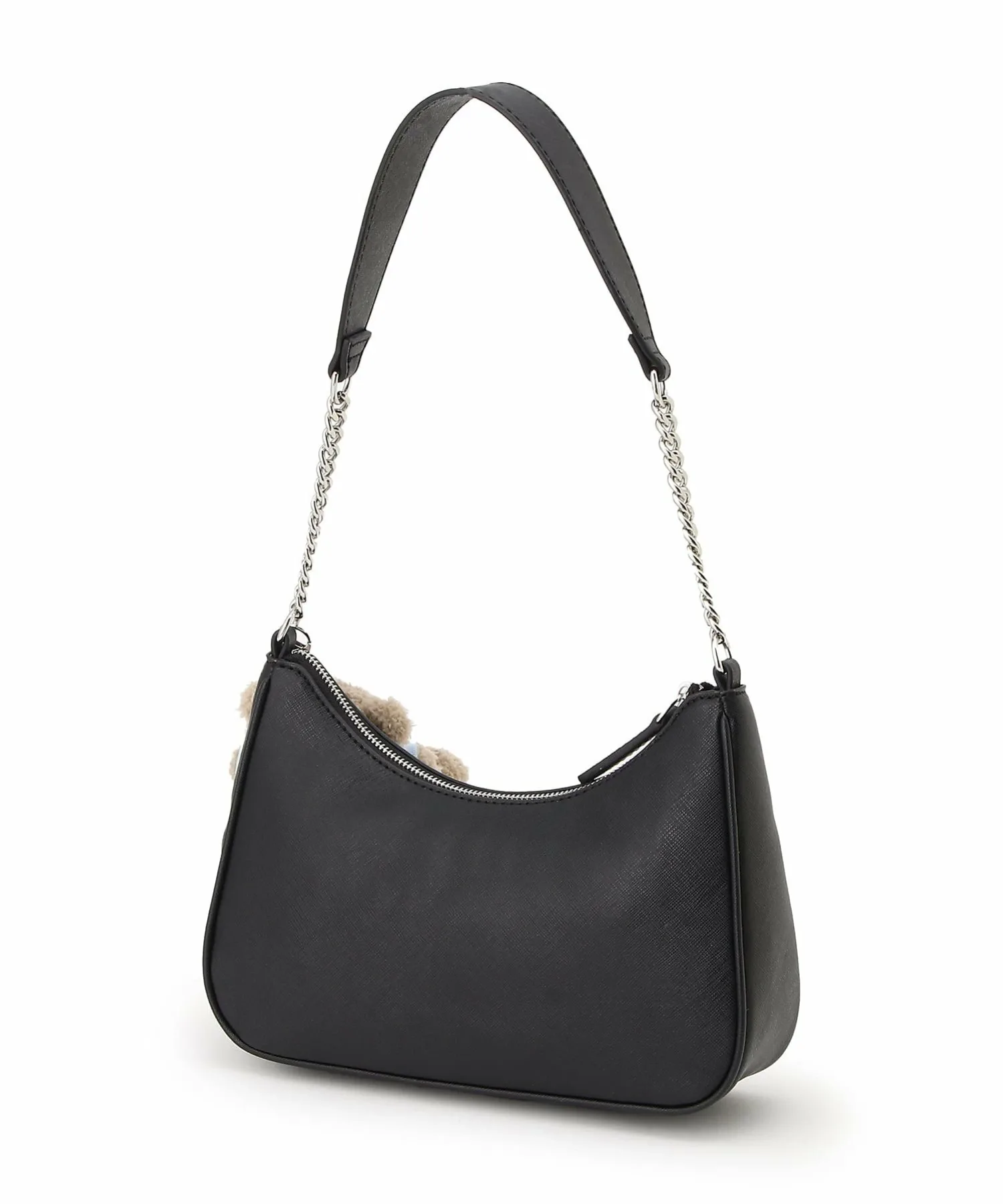 Основная часть выполнена в однотонном базовом цвете, а брелок в виде медвежонка можно снять, что делает сумку идеальной для свиданий или вечерних выходов.