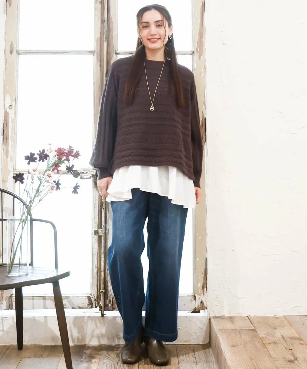 Милый вязаный свитер с неплотно связанными случайными косами