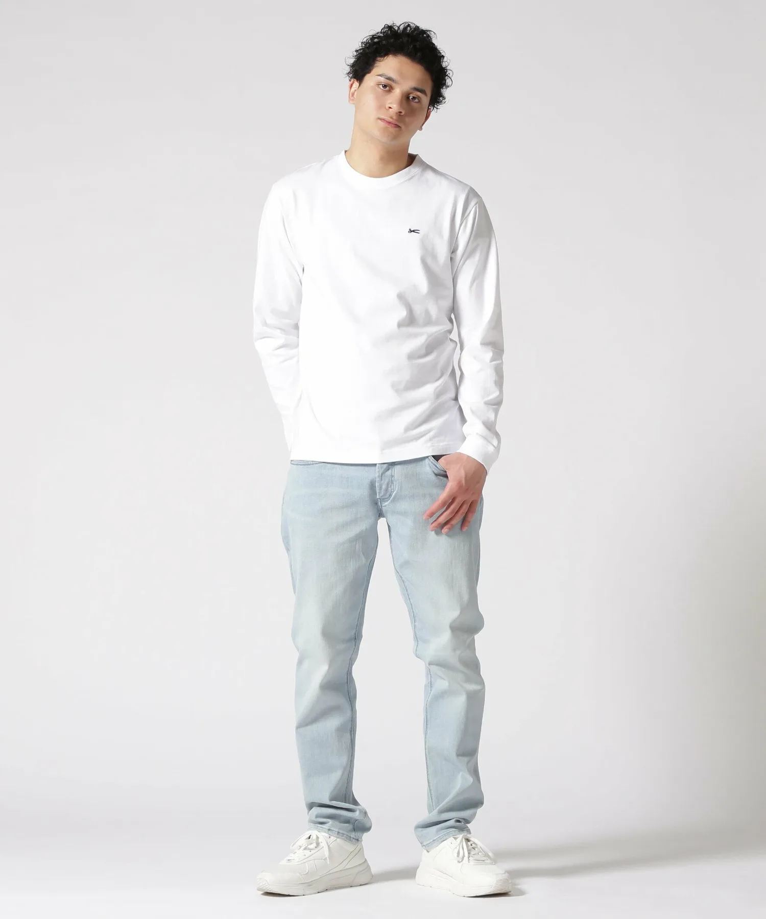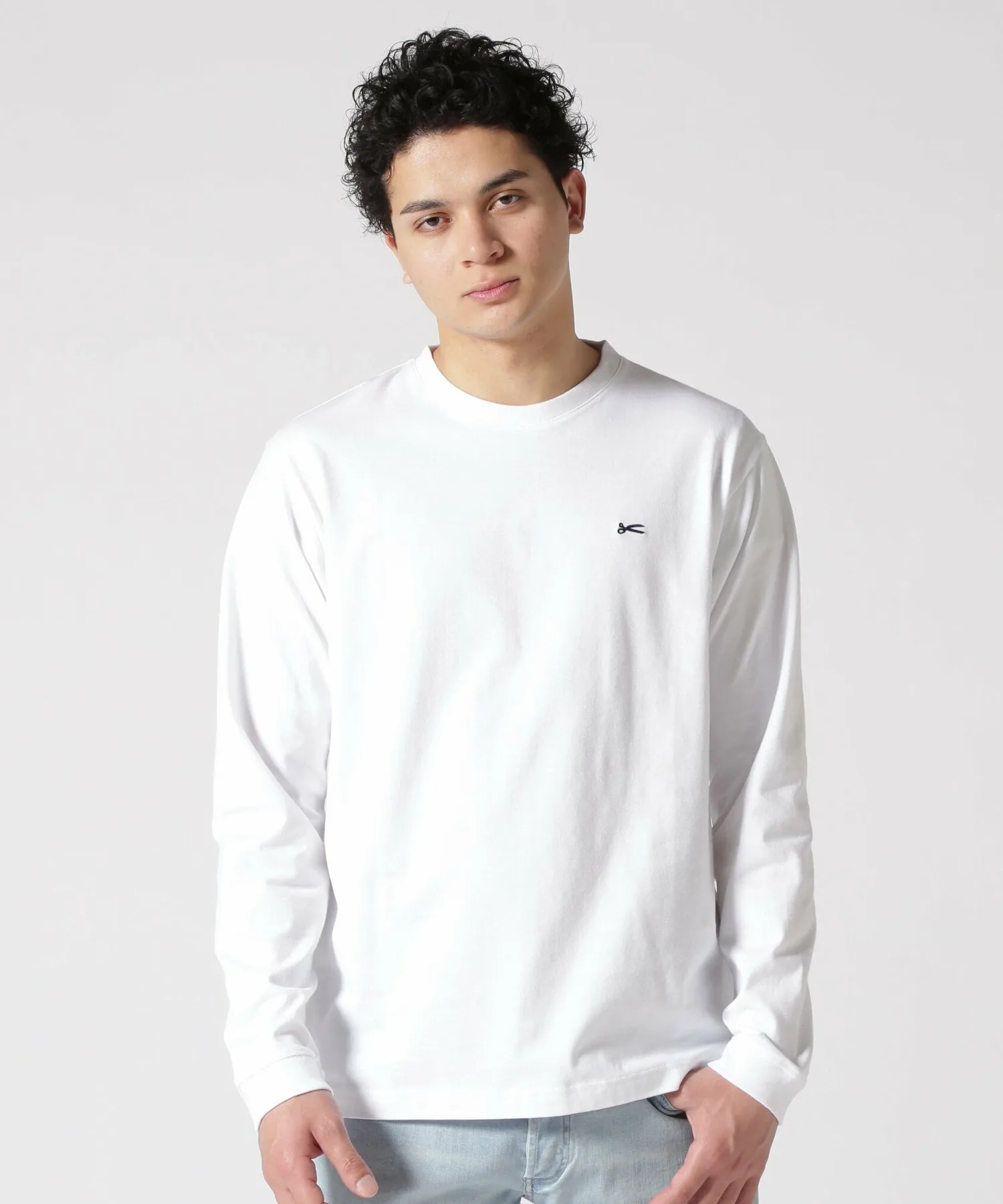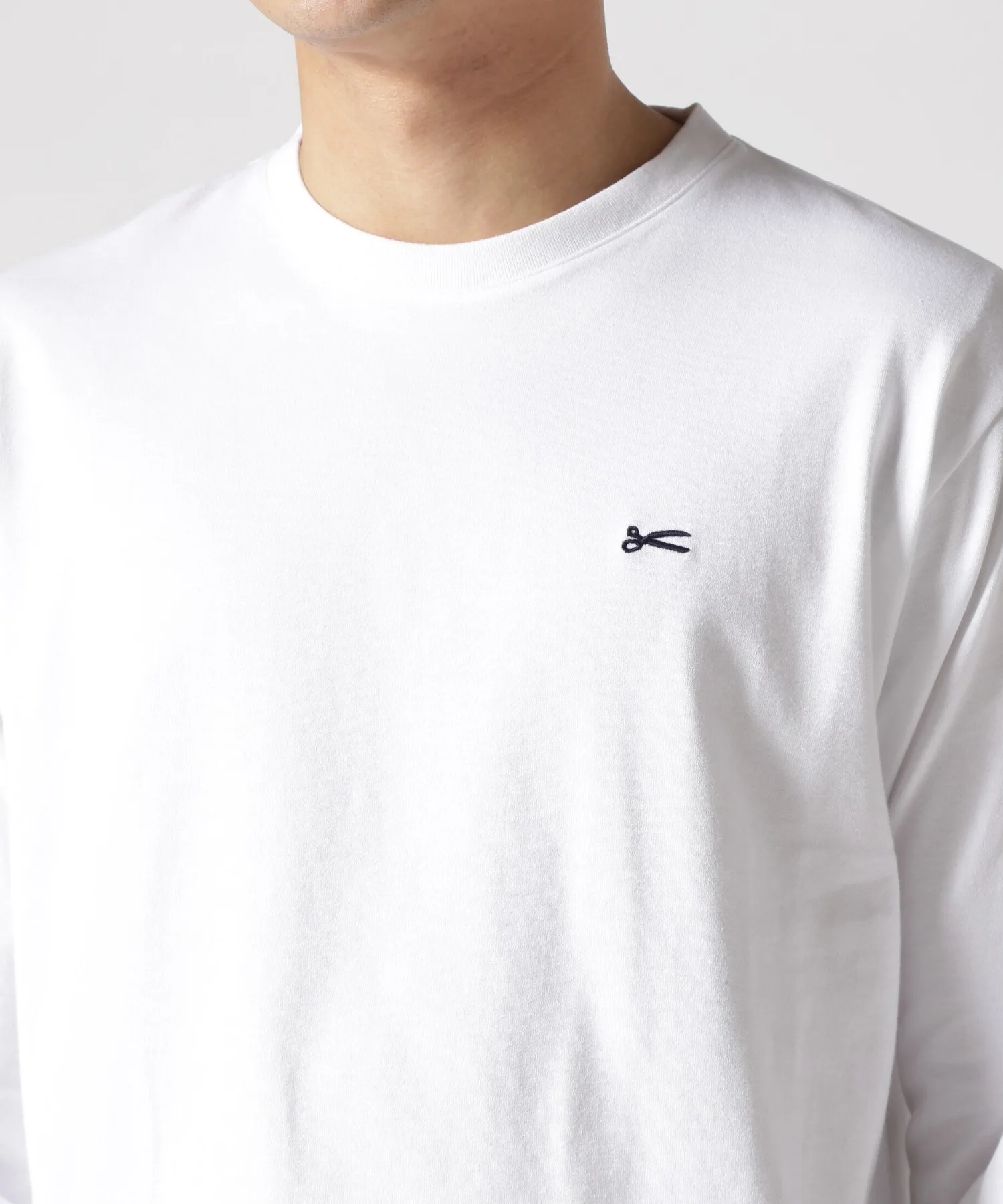 Футболка с длинными рукавами и едва заметным логотипом в виде ножниц на груди.
