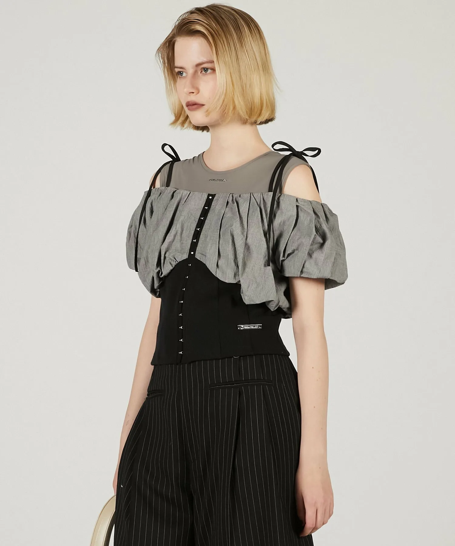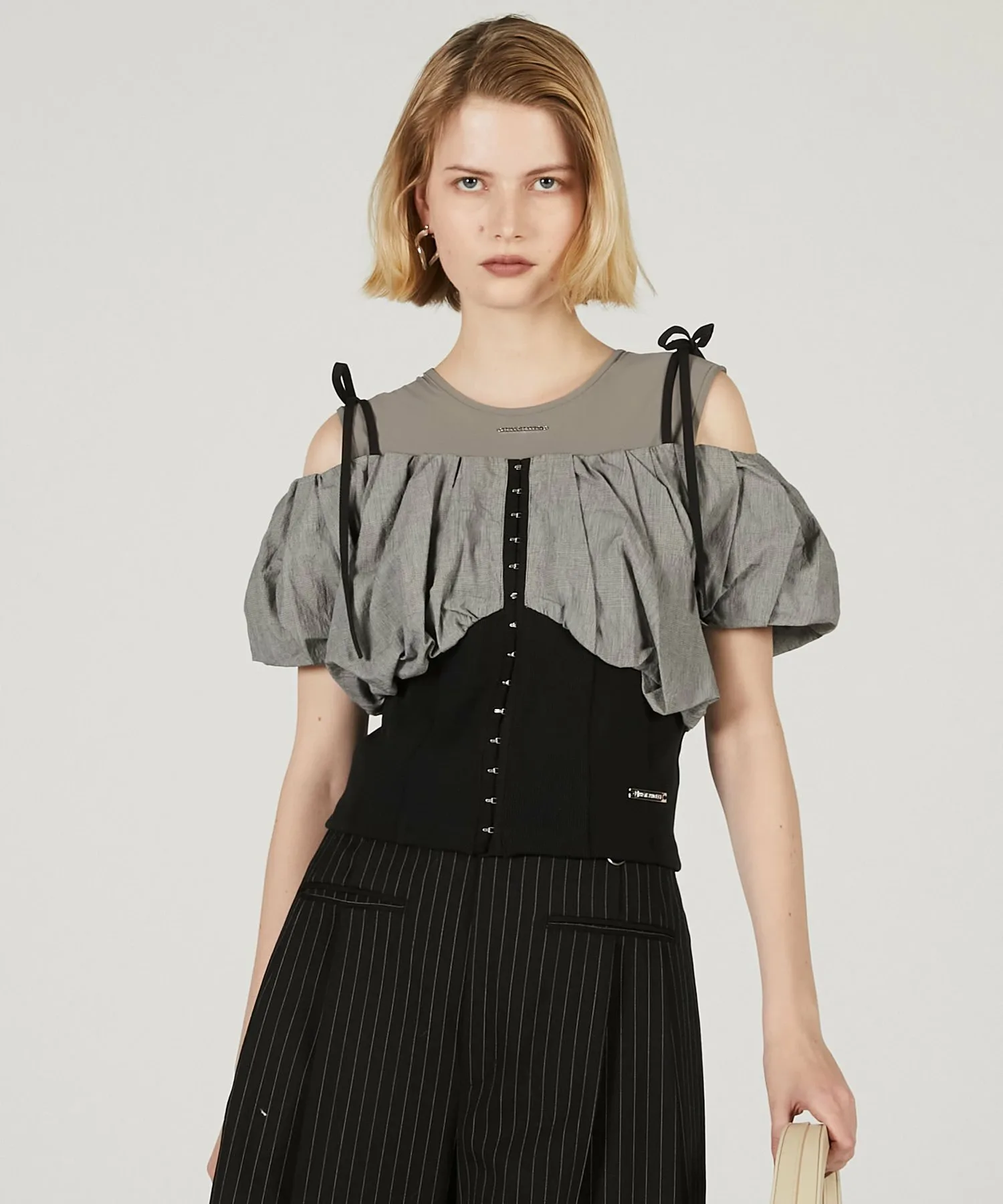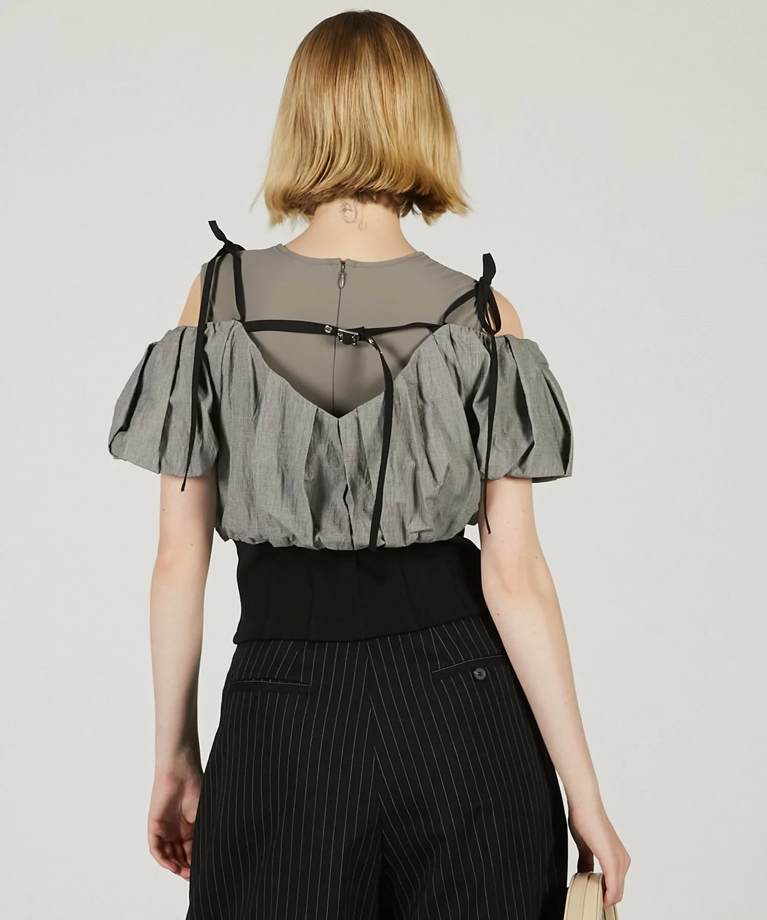 Топ со структурированным силуэтом и свободным кроем с открытыми плечами.
