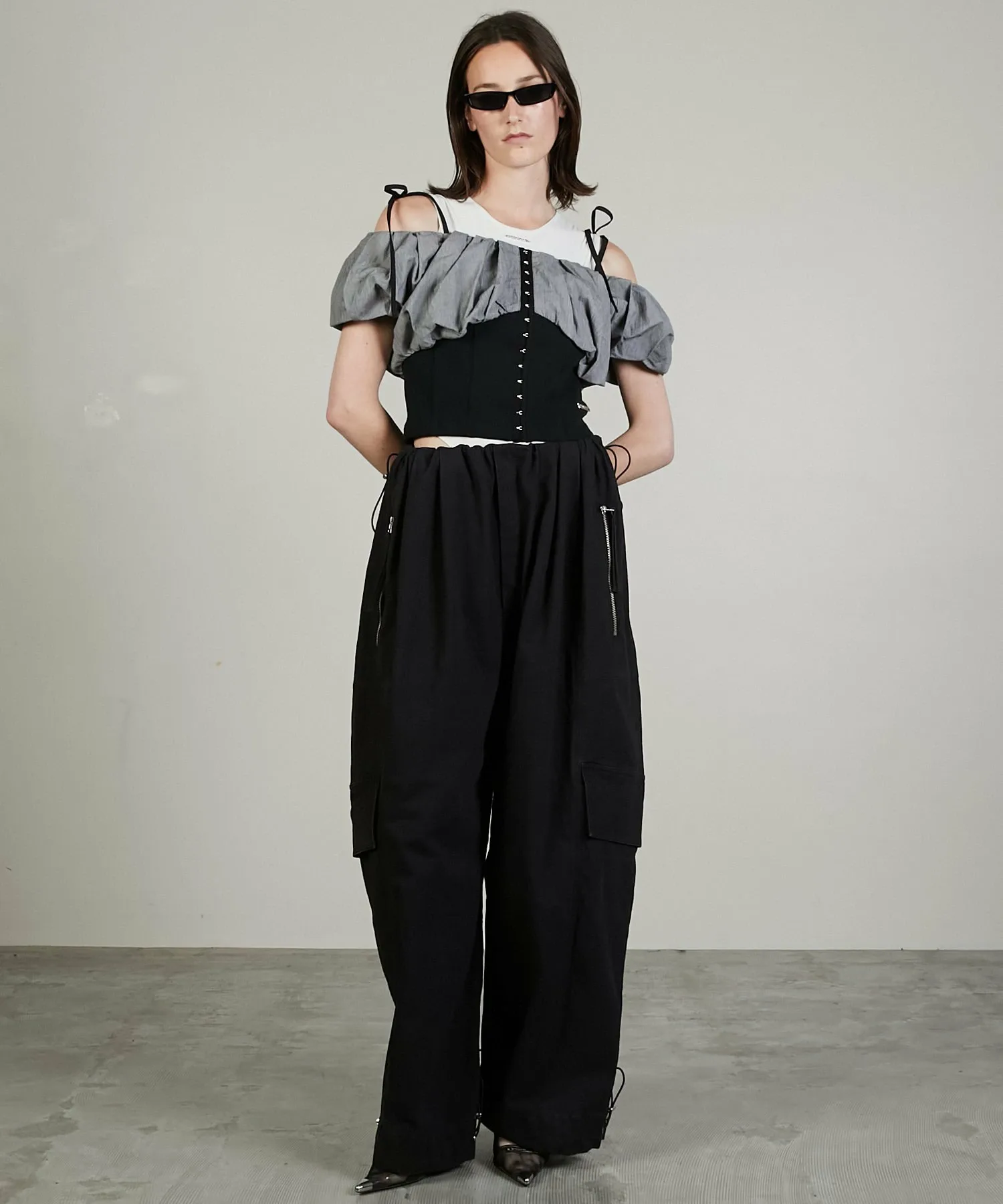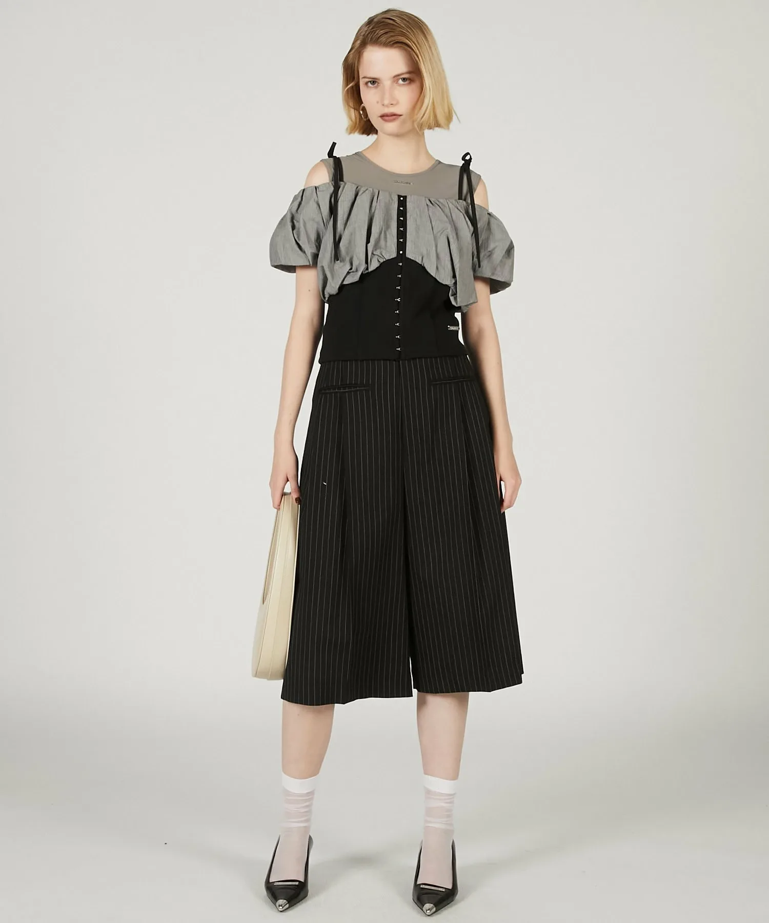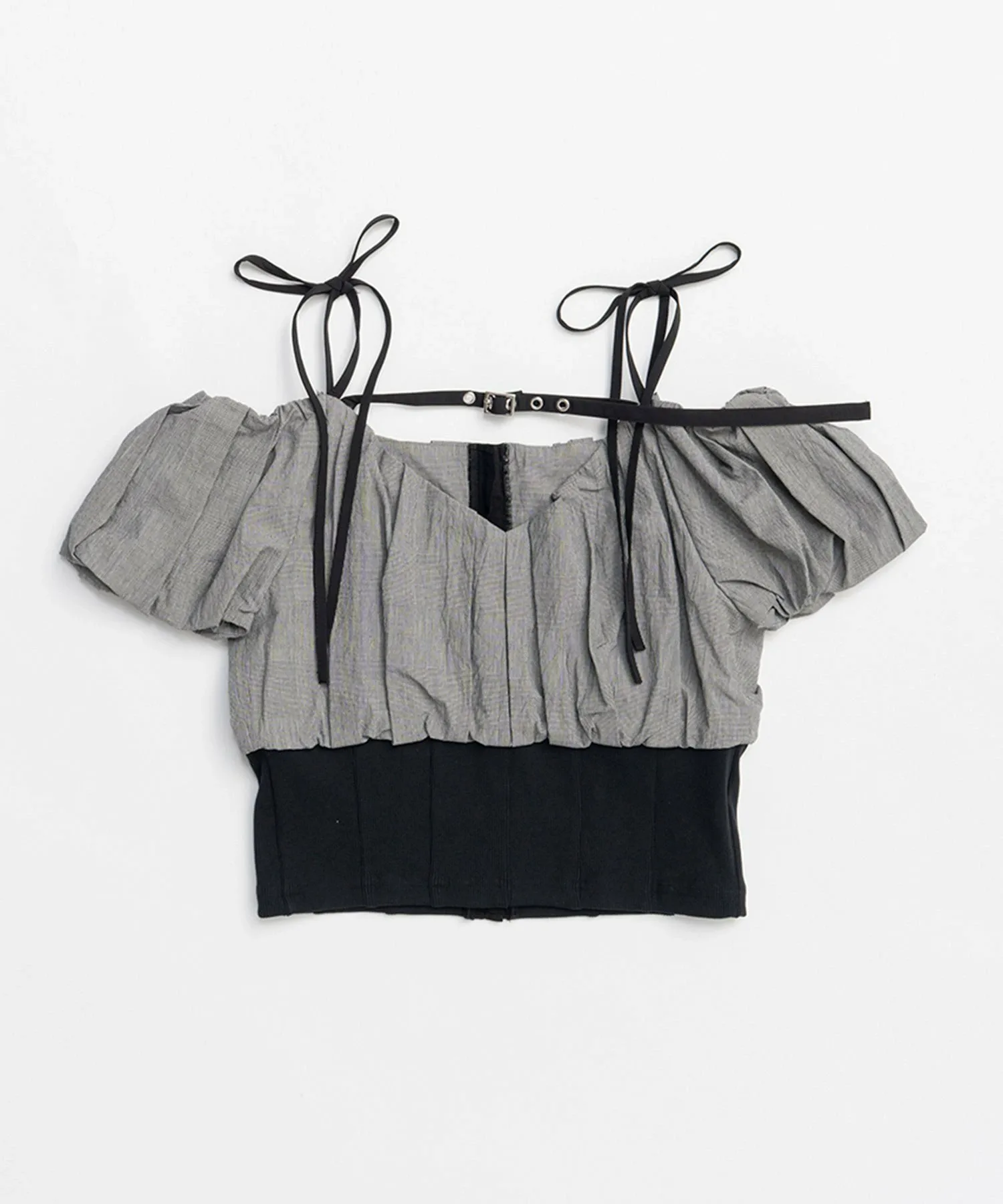 Топ со структурированным силуэтом и свободным кроем с открытыми плечами.