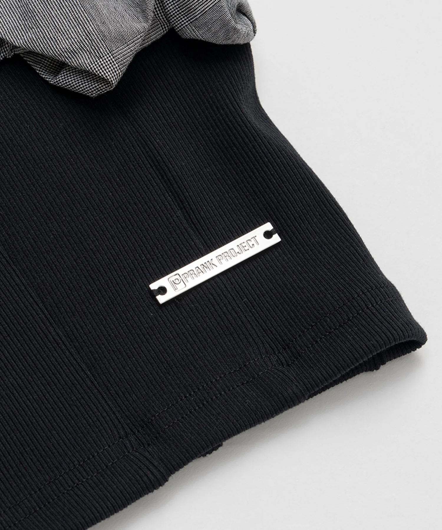 Сочетание различных материалов: плотная тканая ткань, создающая форму, и ребристая текстура, идеально облегающая фигуру.