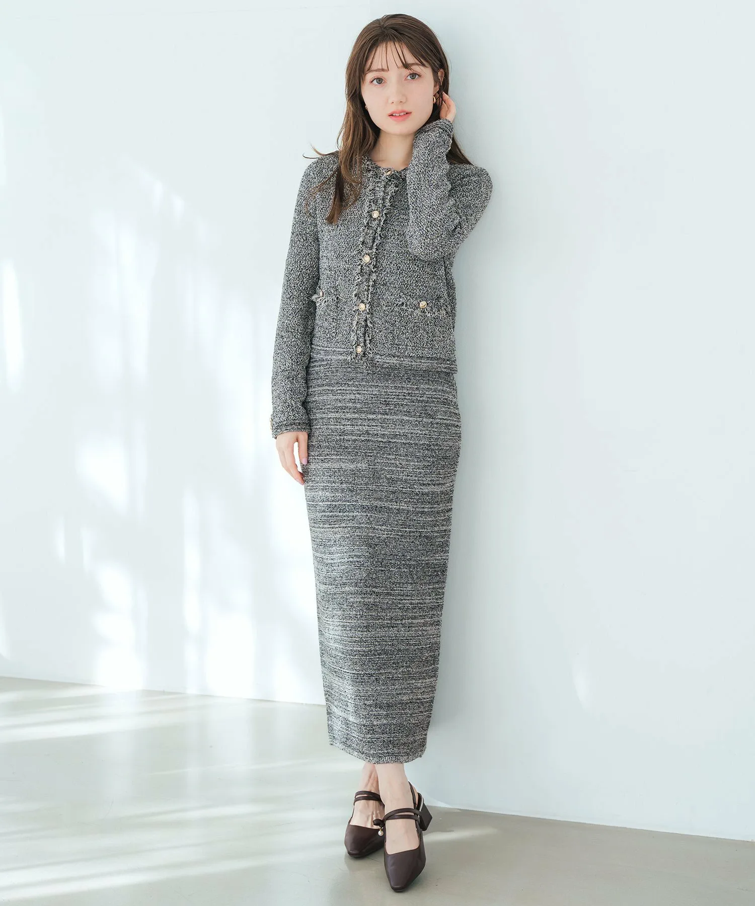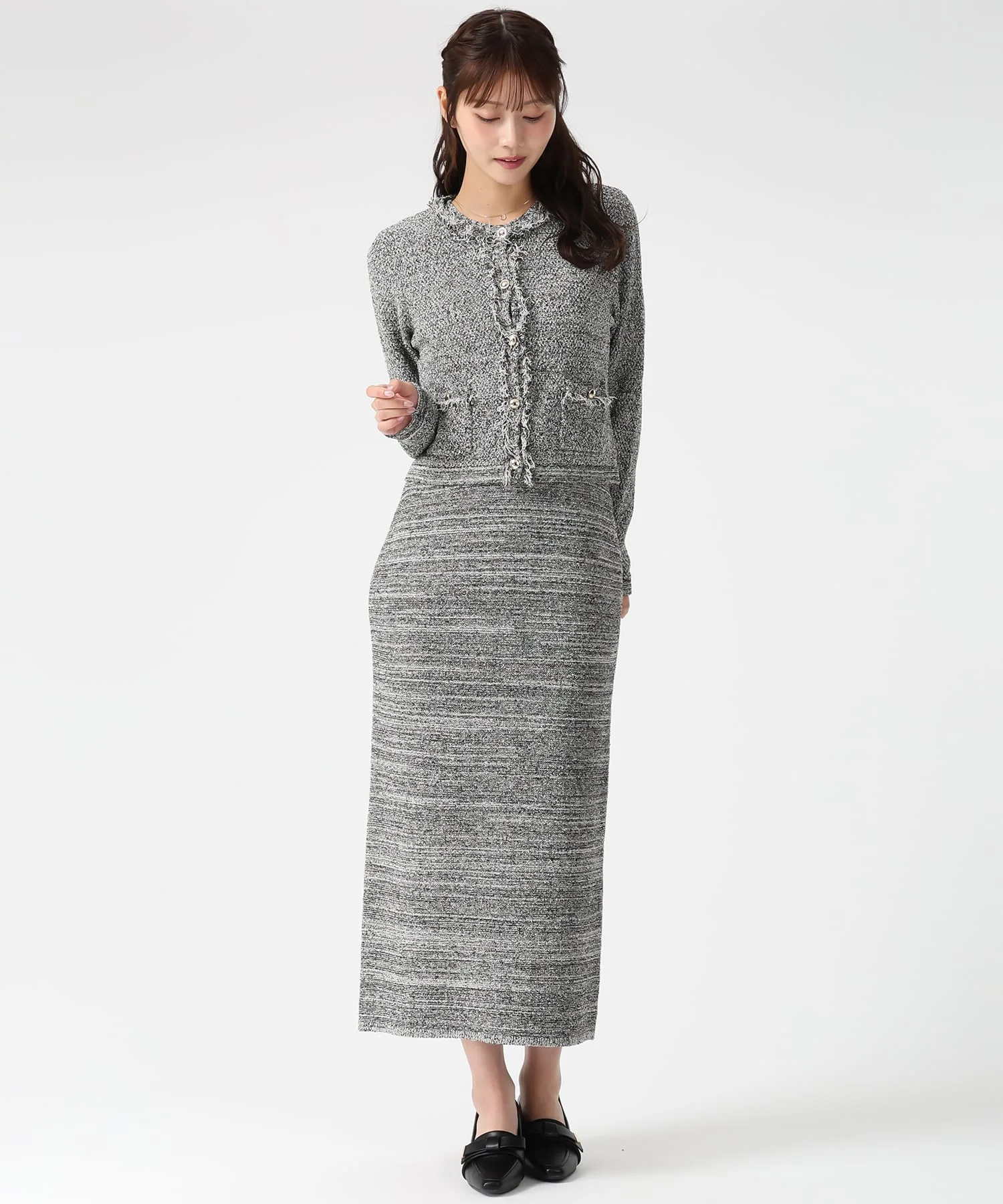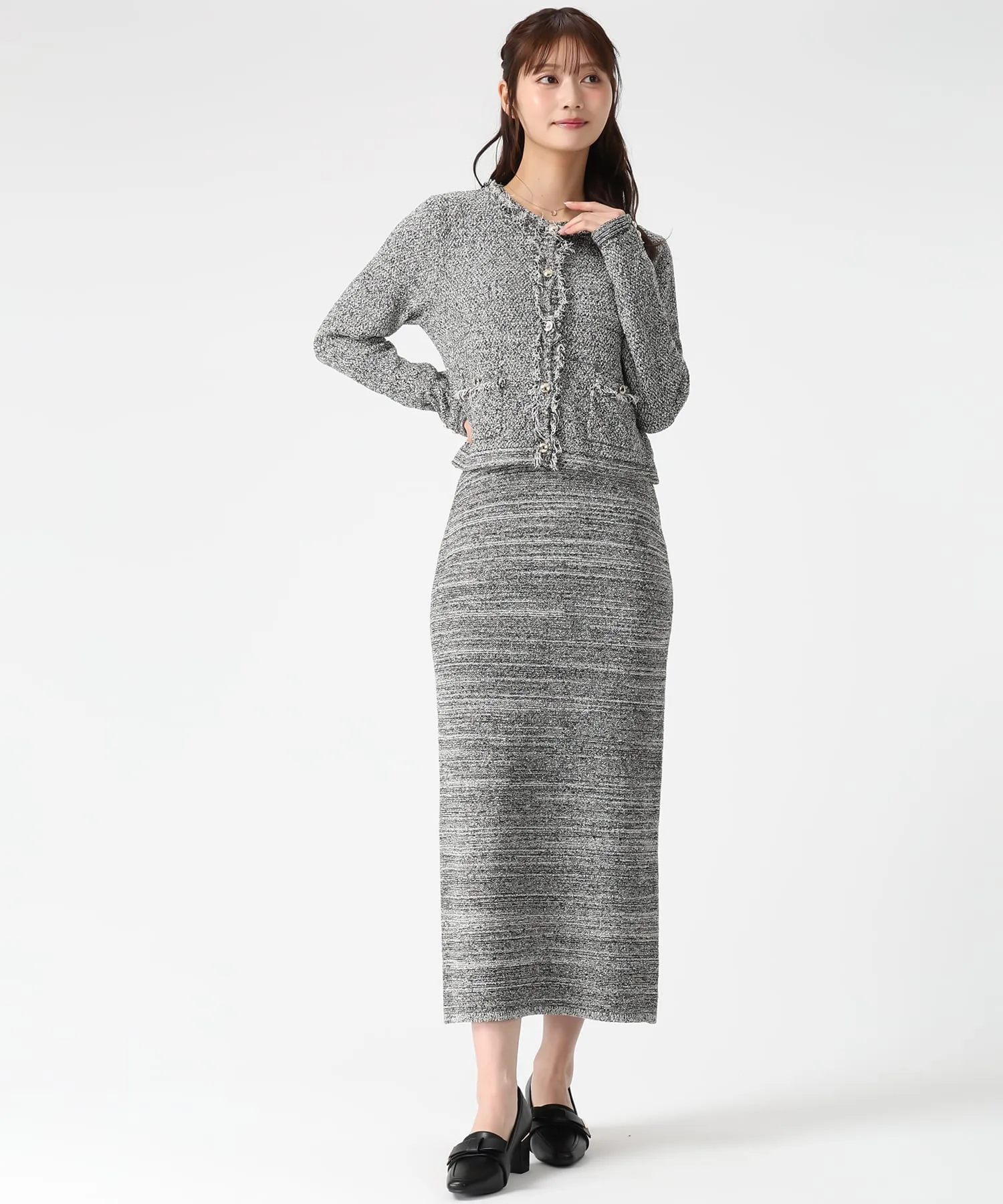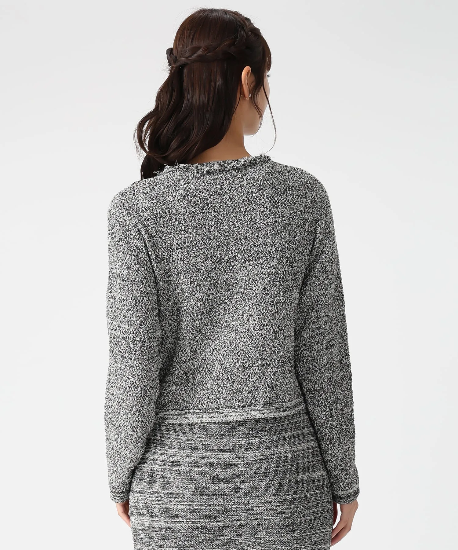 Этот жакет сочетает в себе элегантность и гламур благодаря трикотажной ткани, напоминающей твид, и деталям с бахромой. Мягкая текстура трикотажа делает его удобным в носке, при этом он выглядит стильно. Мы также рекомендуем сочетать его с платьем из того же материала для создания гармоничного образа. Ткань: Прозрачность [Нет]Подкладка [Нет]Эластичность [Да]Толщина ткани [Обычная]
